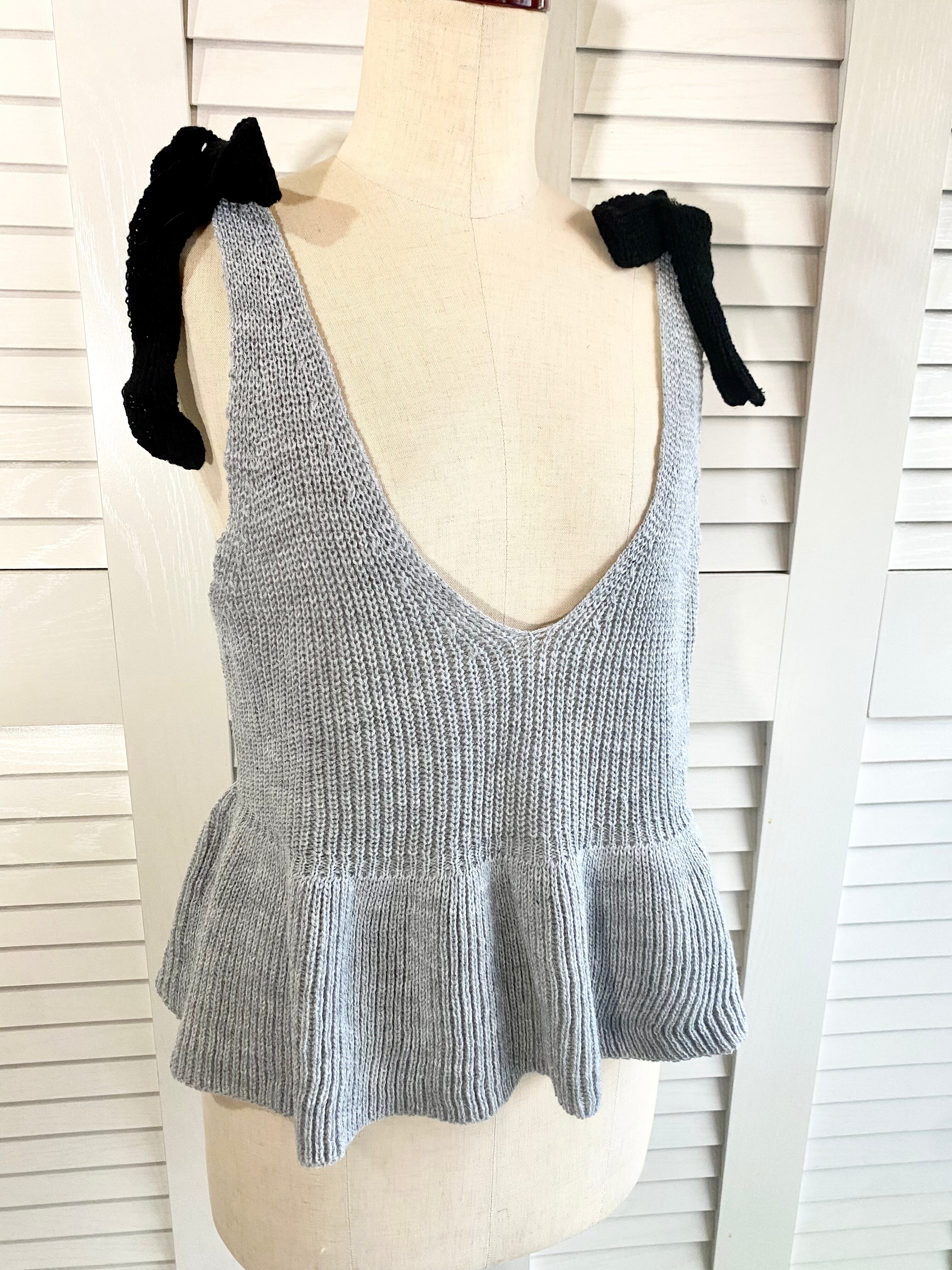 【チョッキ祭り】D.ショルダーリボン ペプラムニットベスト ライトグレー