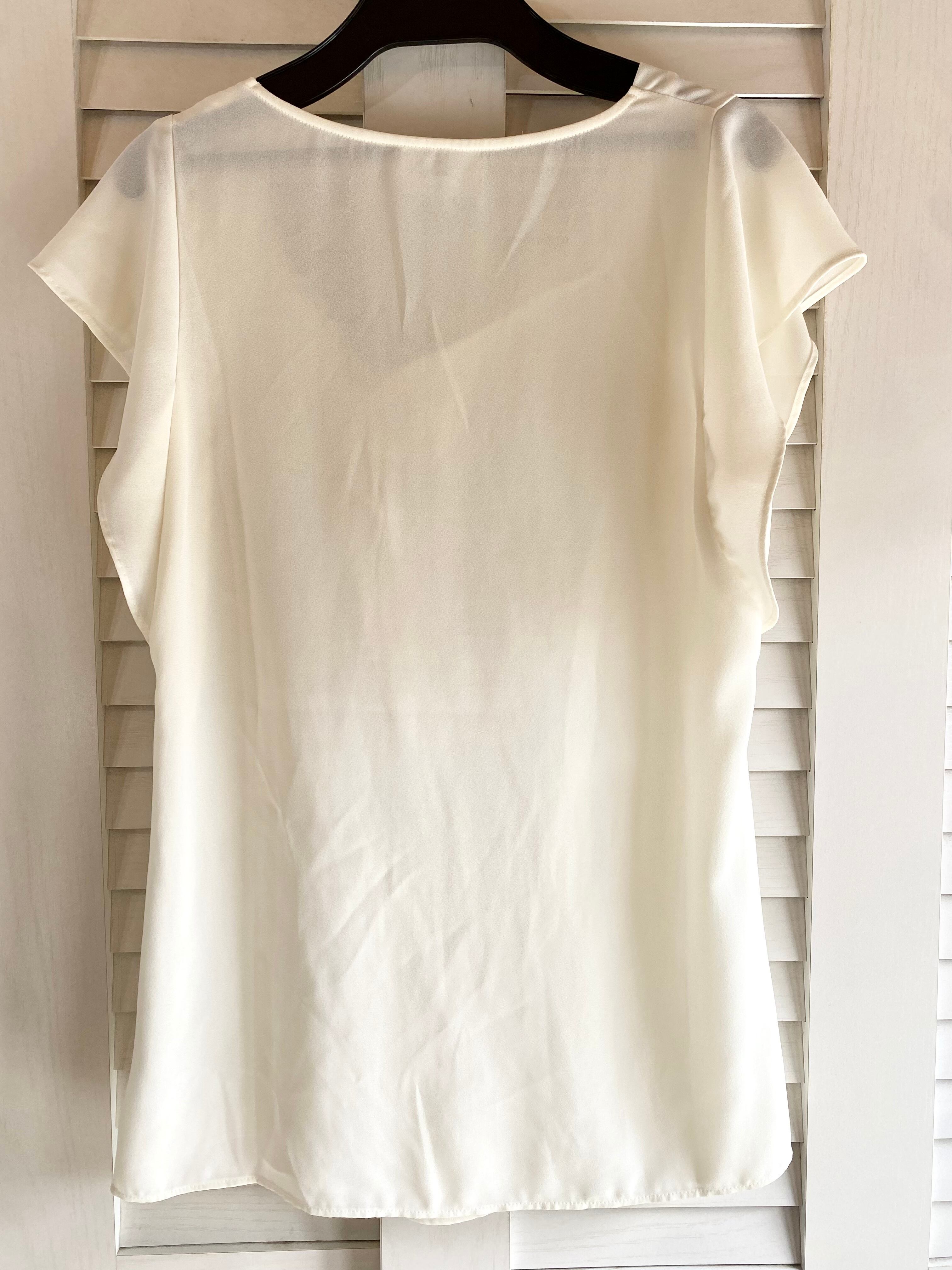 #90 LANVIN 梨地シフォンジョーゼット ノースリーブデザインブラウス アイボリー | お洋服屋さん 『GOKKO』