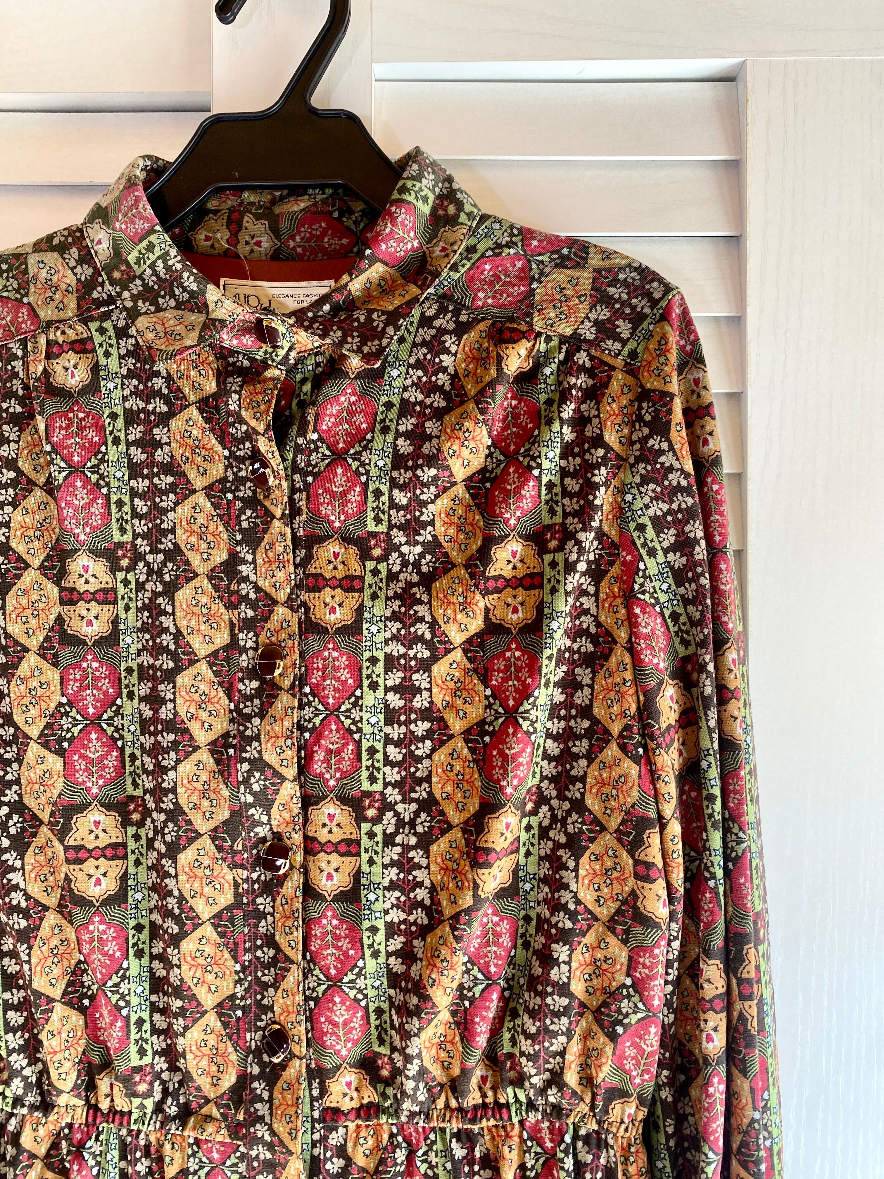 #91【国産古着】70Sヴィンテージ アメリカンパッチワークプリントワンピ オレンジ
