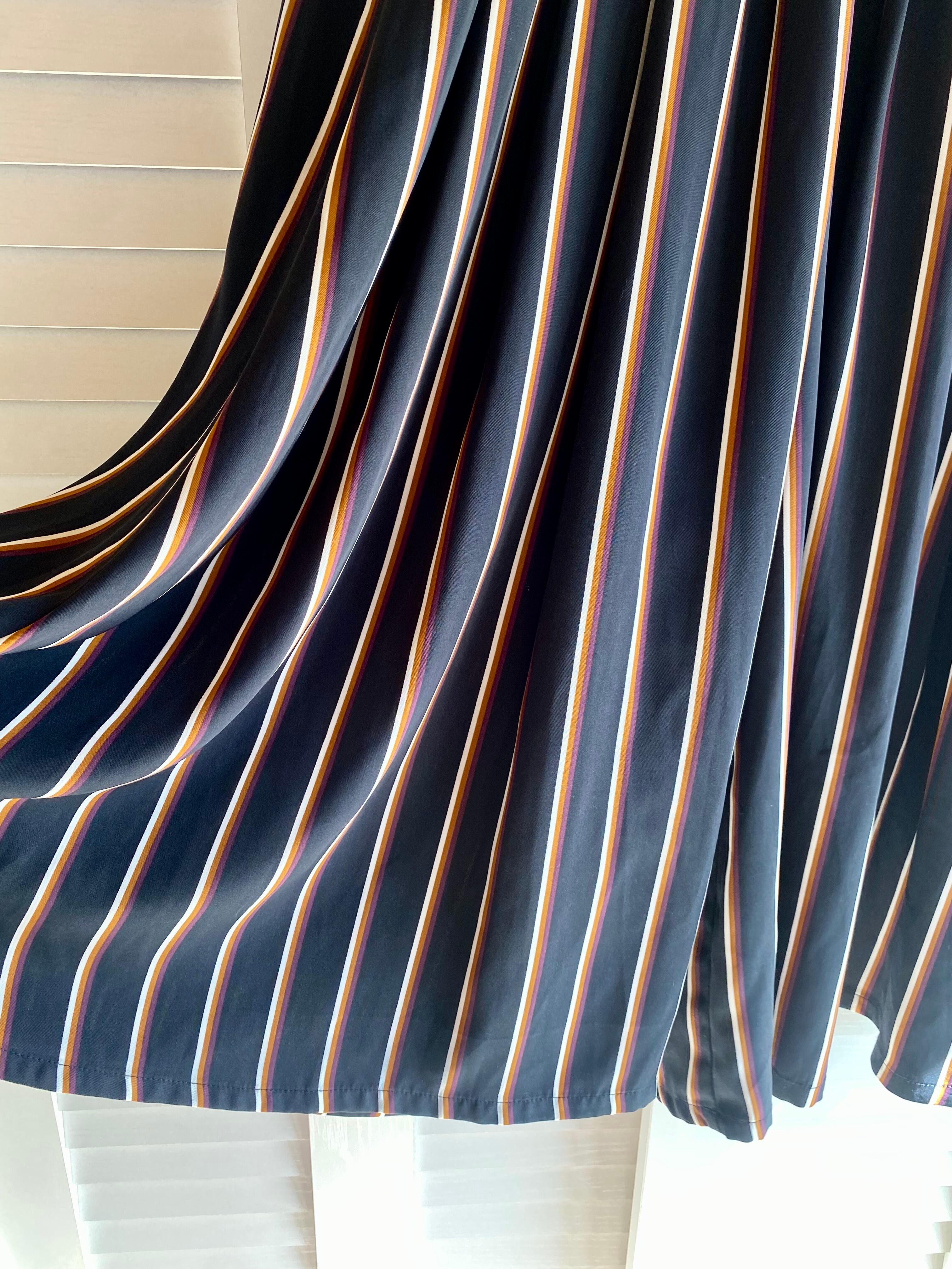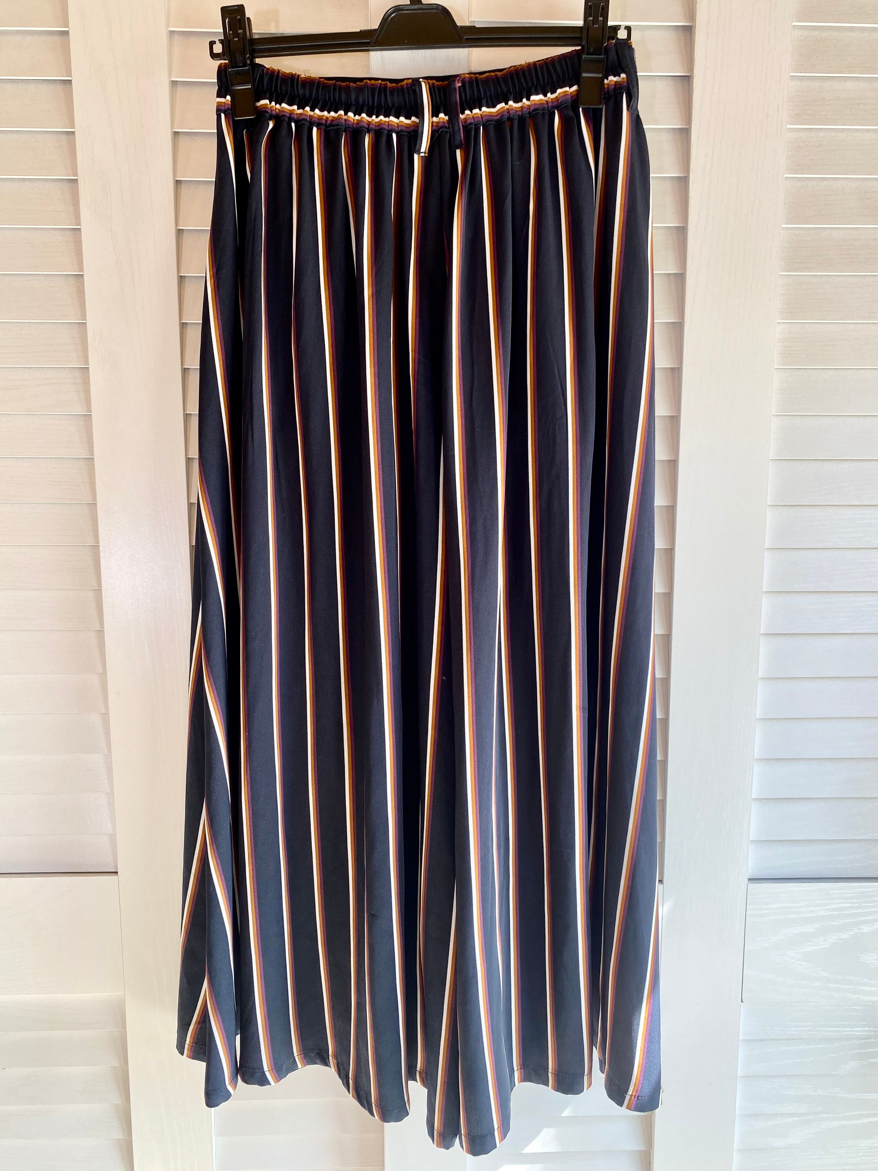 #91 ikka レジメンタルストライプ ジョーゼットワイドパンツ ネイビー