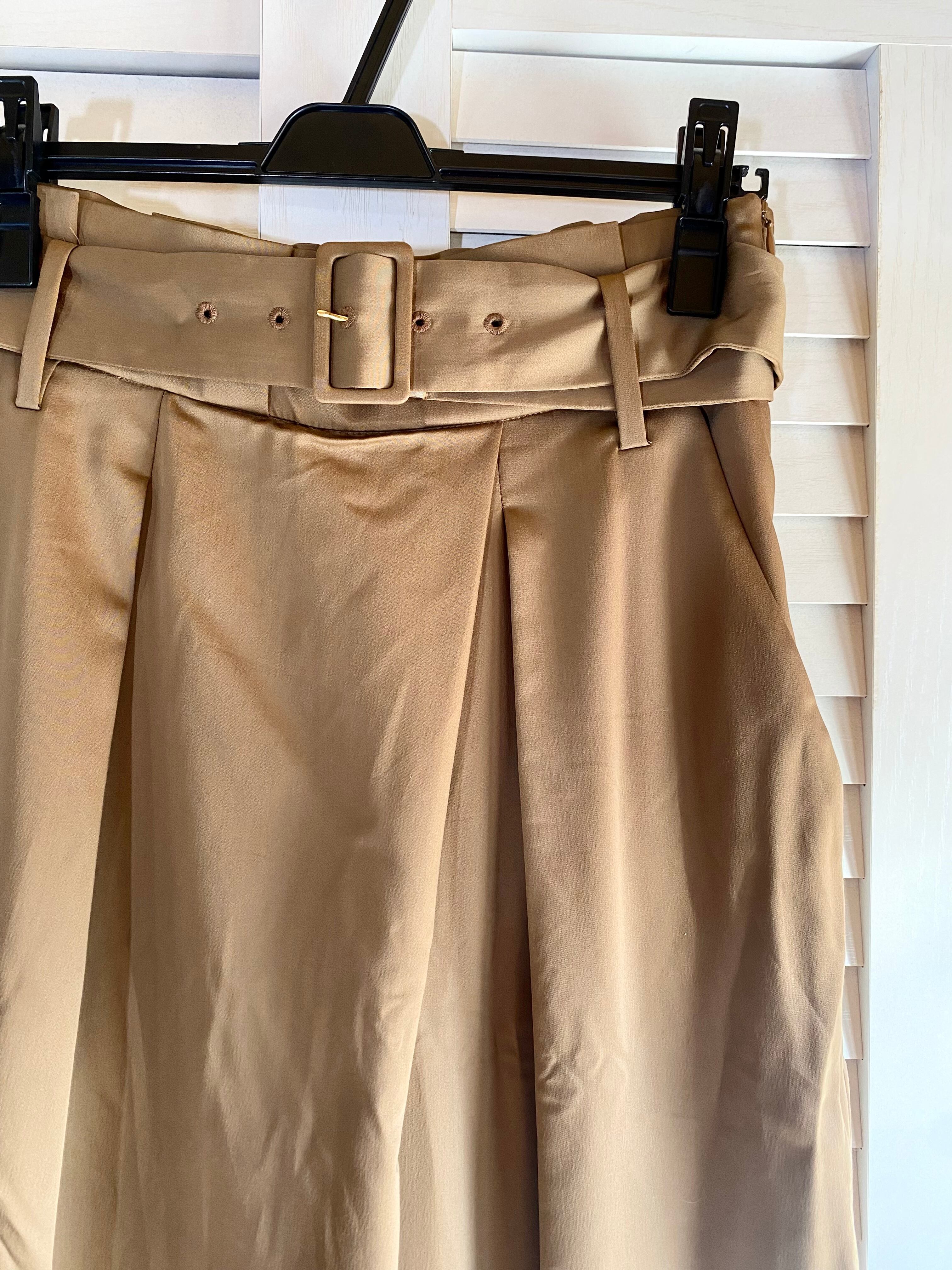 #93 LOUNIE ストレッチサテン ハイウエストタックワイドパンツ モカベージュ