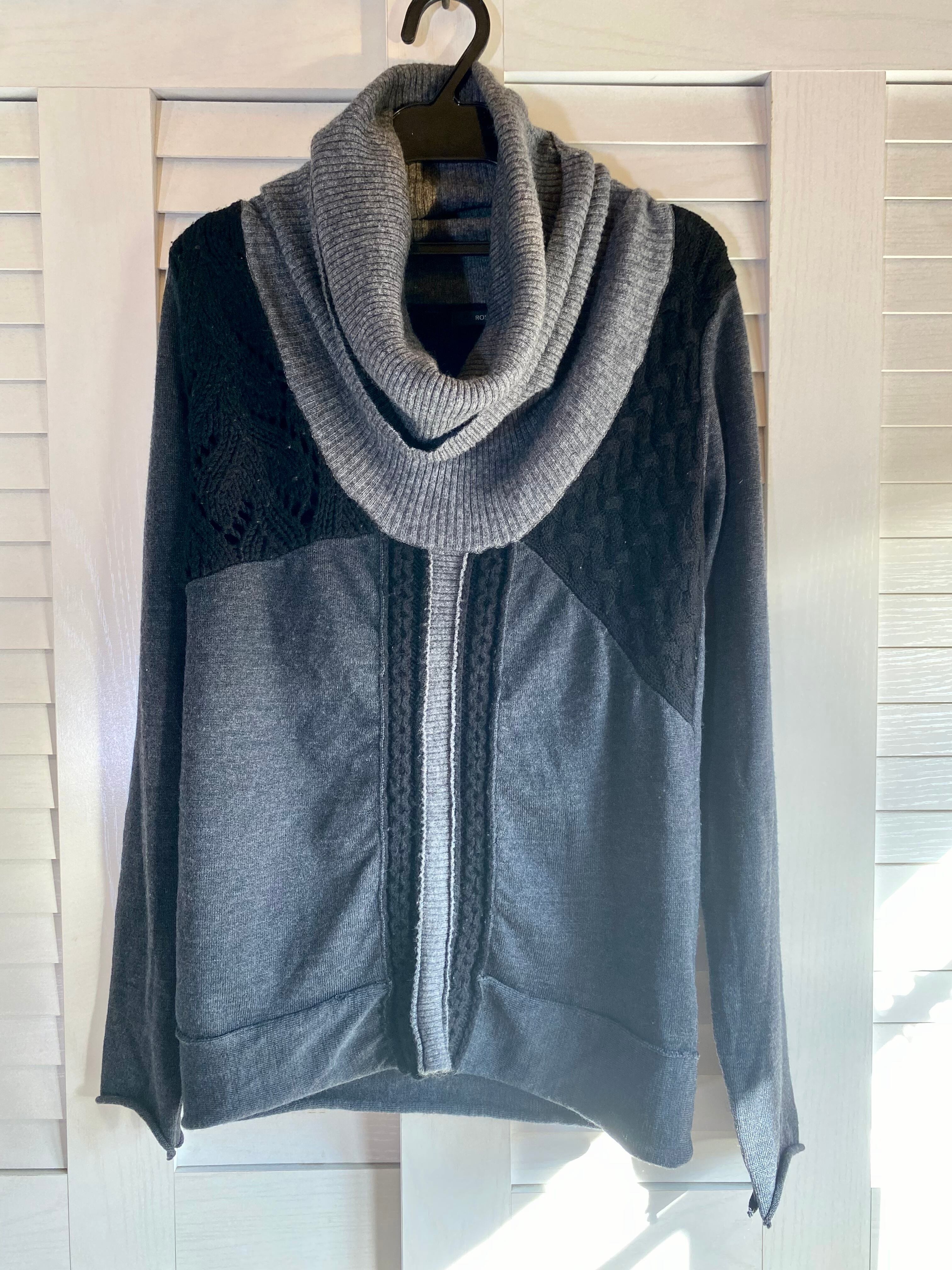 #93 ROSSO ボリュームカラー 切替パッチワークデザインニット チャコールグレー