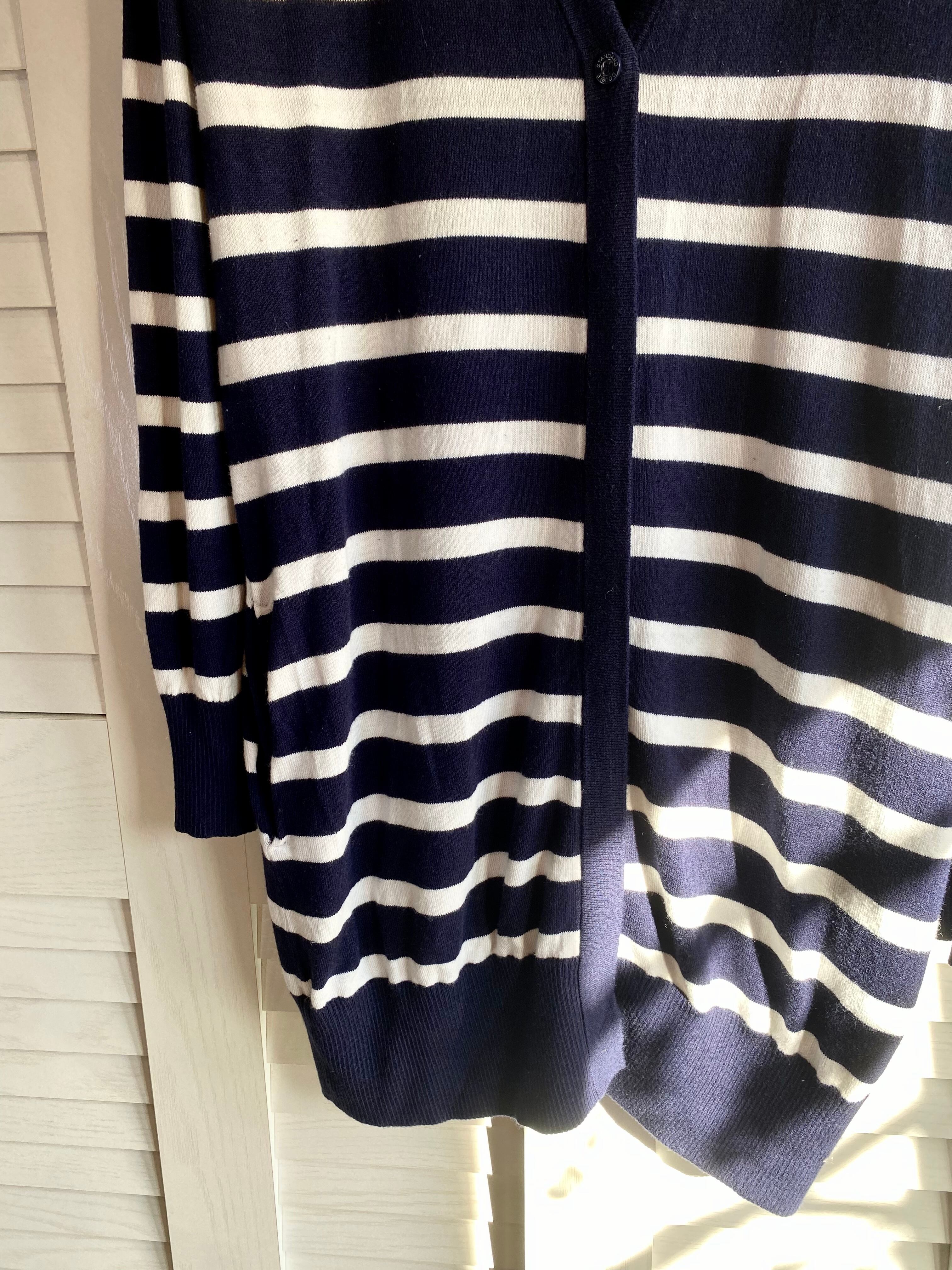#93 DOUBLE STANDARD CLOTHING ビジューエンブレム Vネックボーダーロングニットカーデ ネイビー