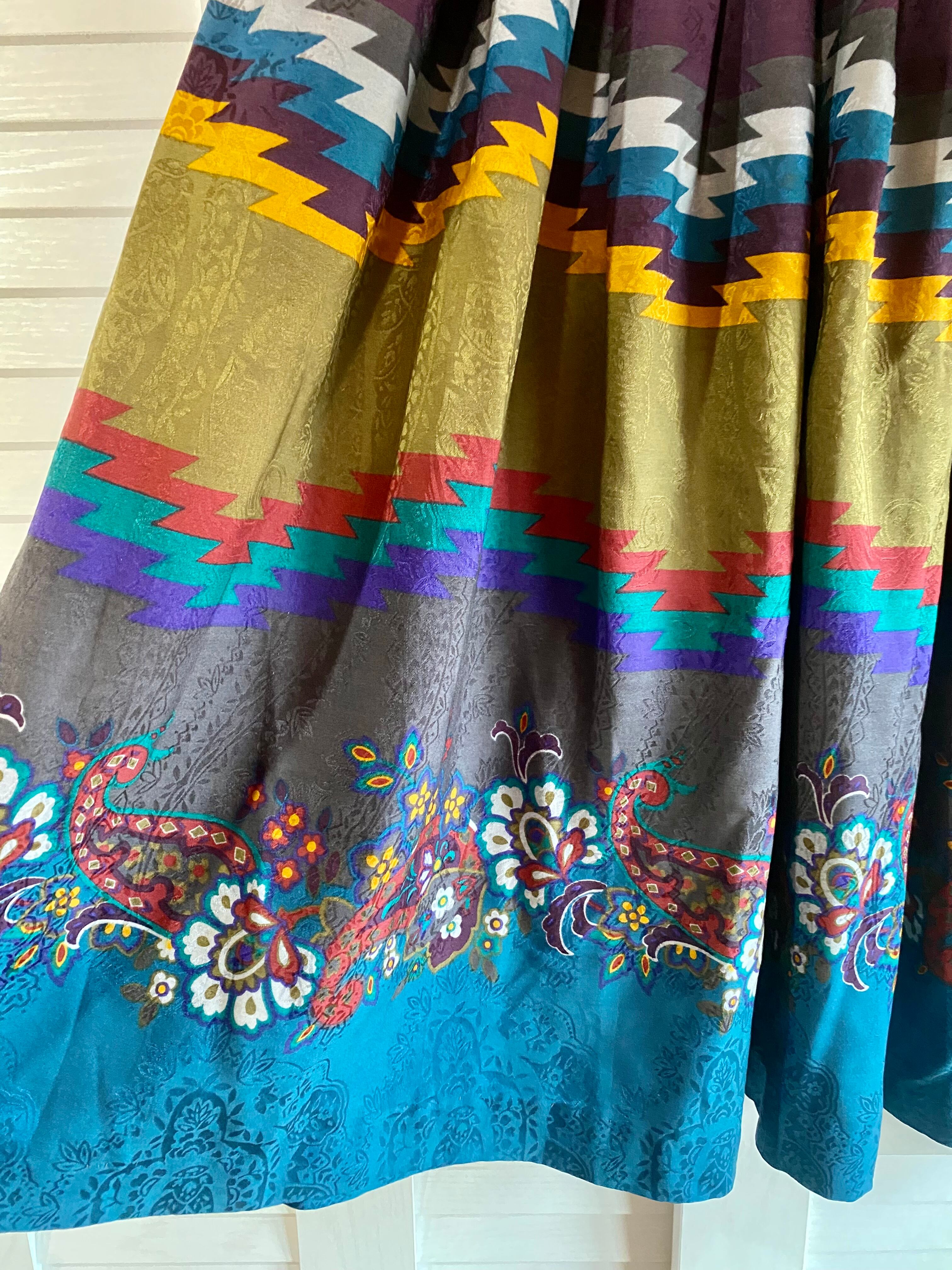 #94【古着屋購入】US古着 ヴィヴィッドモロッコ柄ペイズリー織 タックフレアスカート マルチカラー