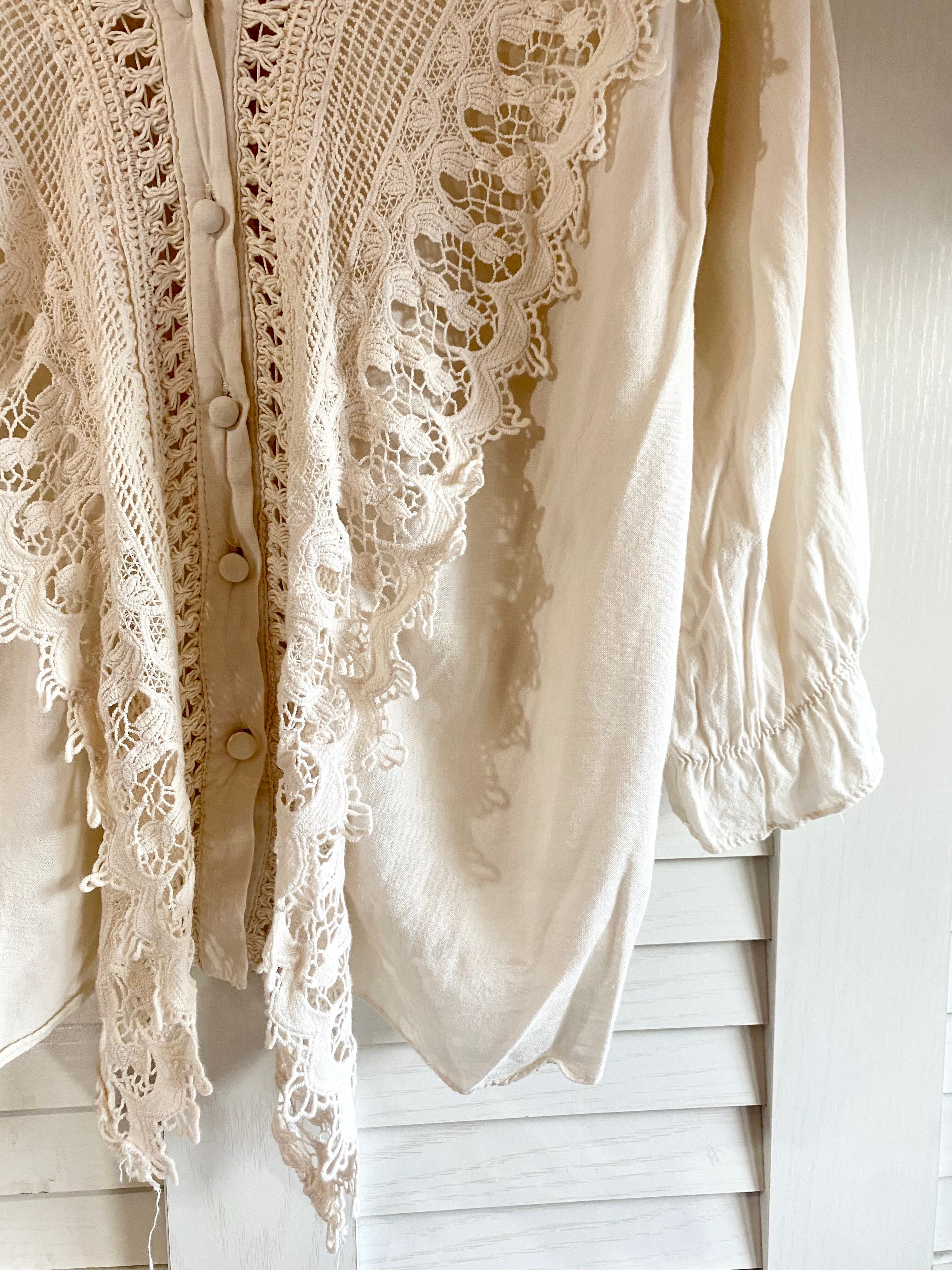 #94 CRISP コットンリネンレースモチーフブラウス アイボリー