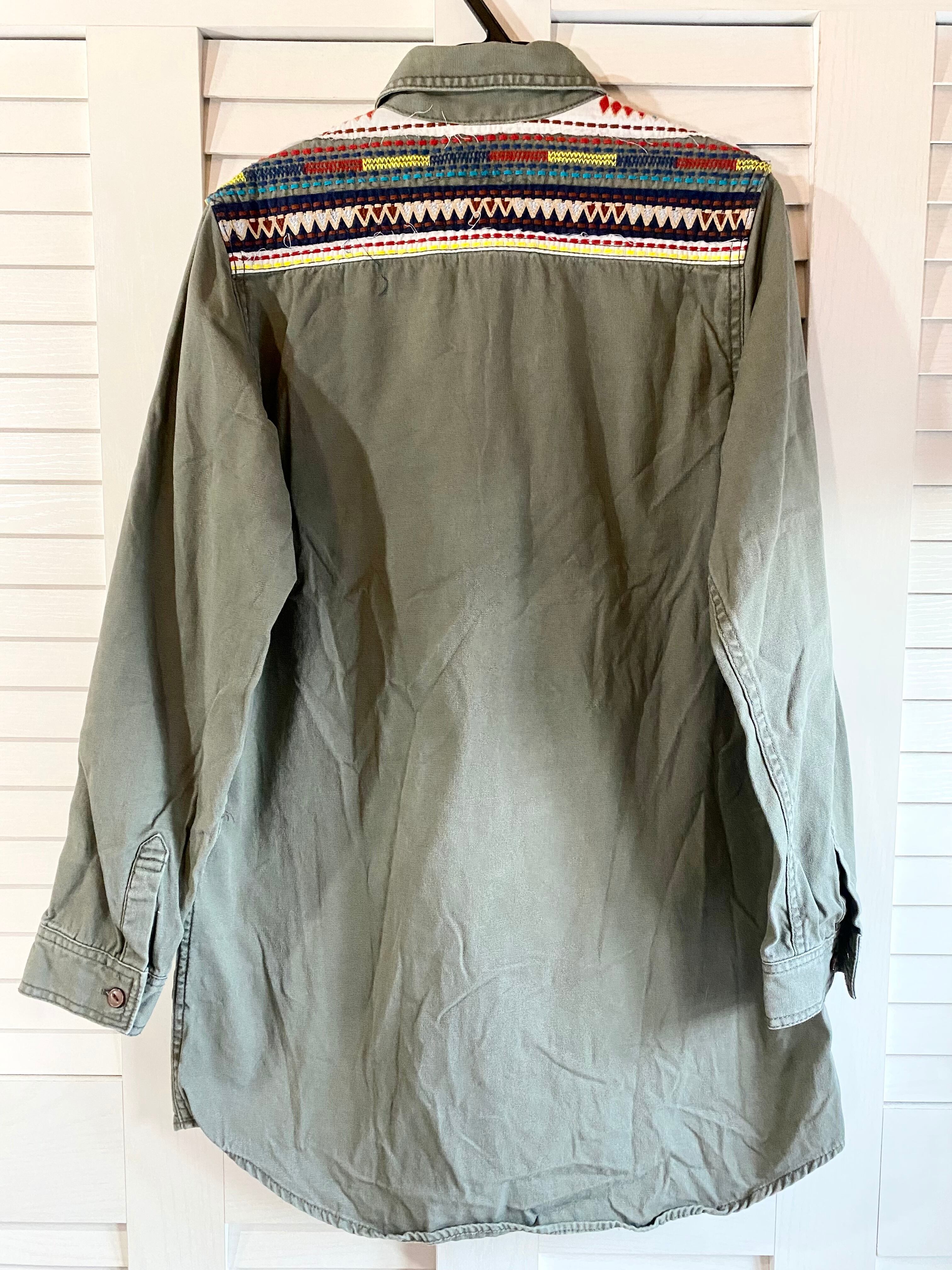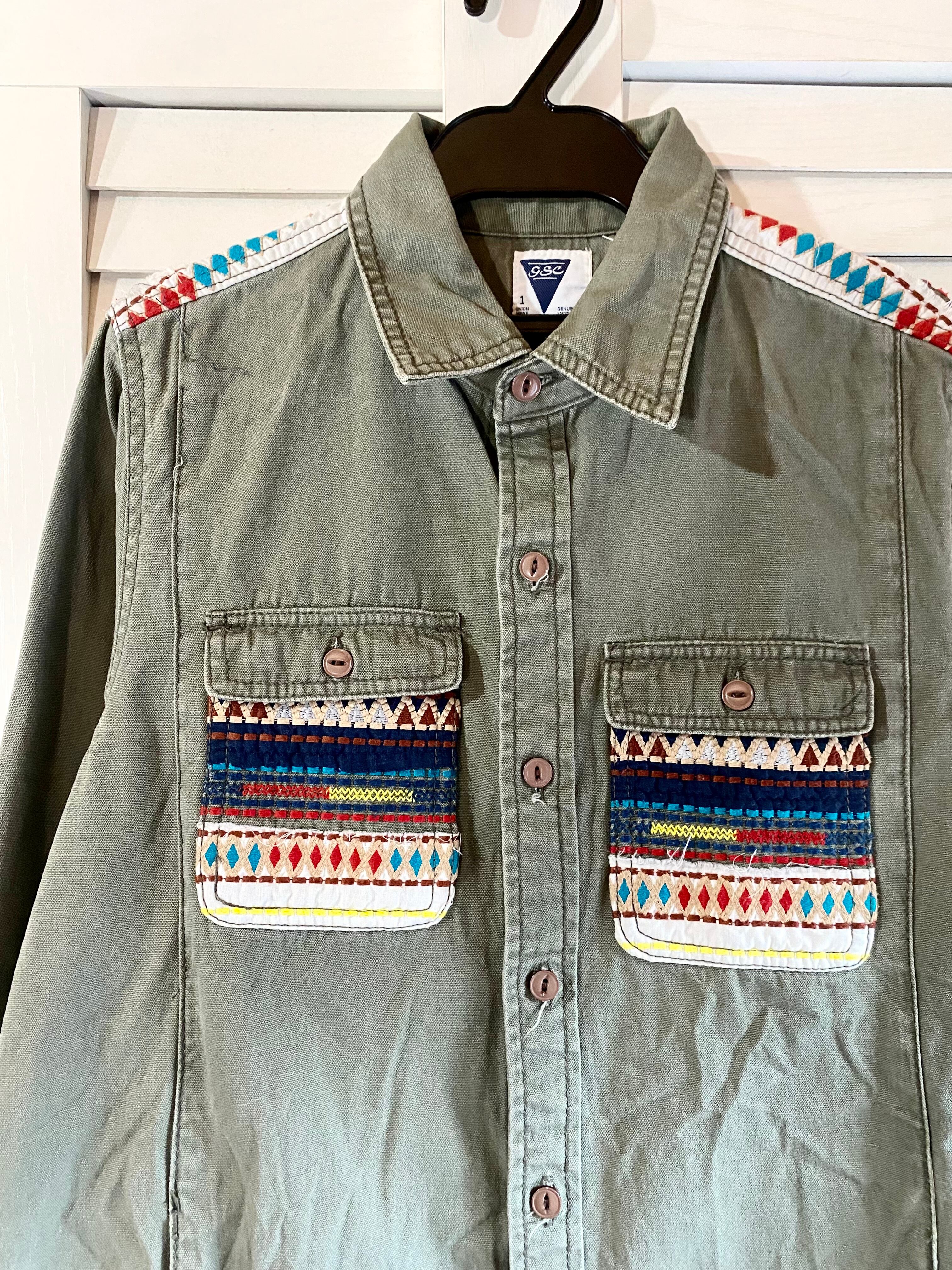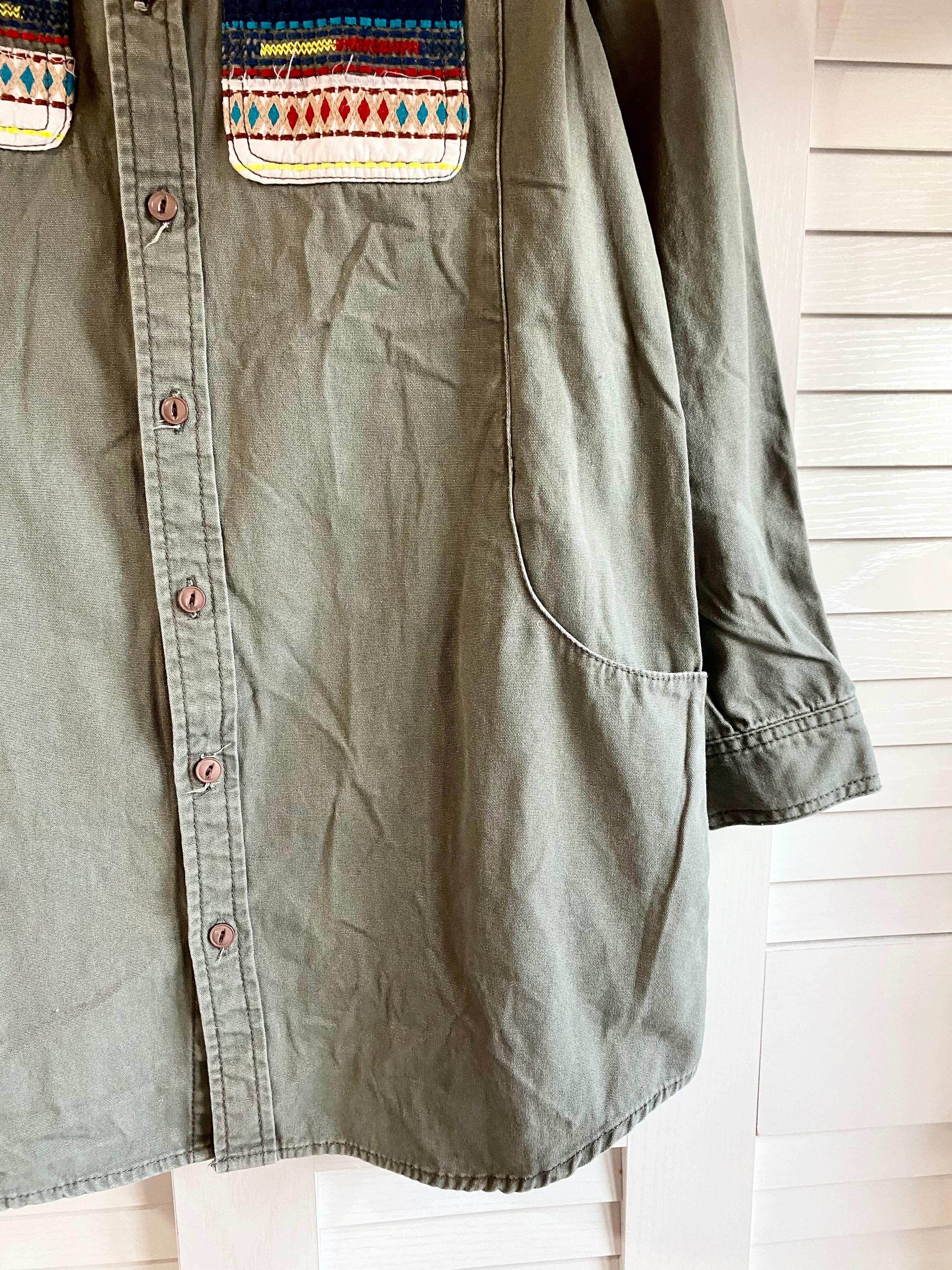 #94 GSC 刺繍パッチワーク ミリタリーシャツワンピ カーキ