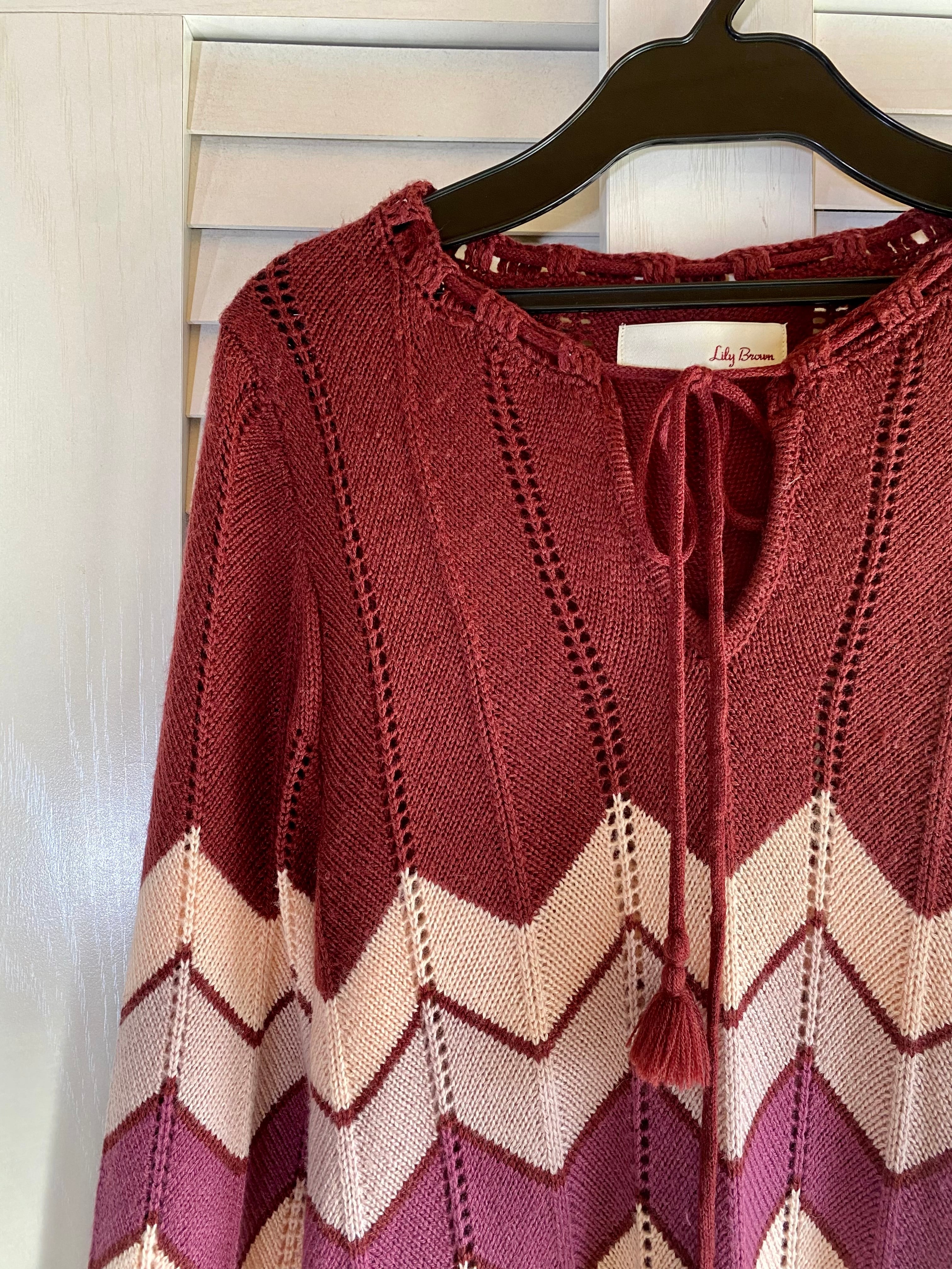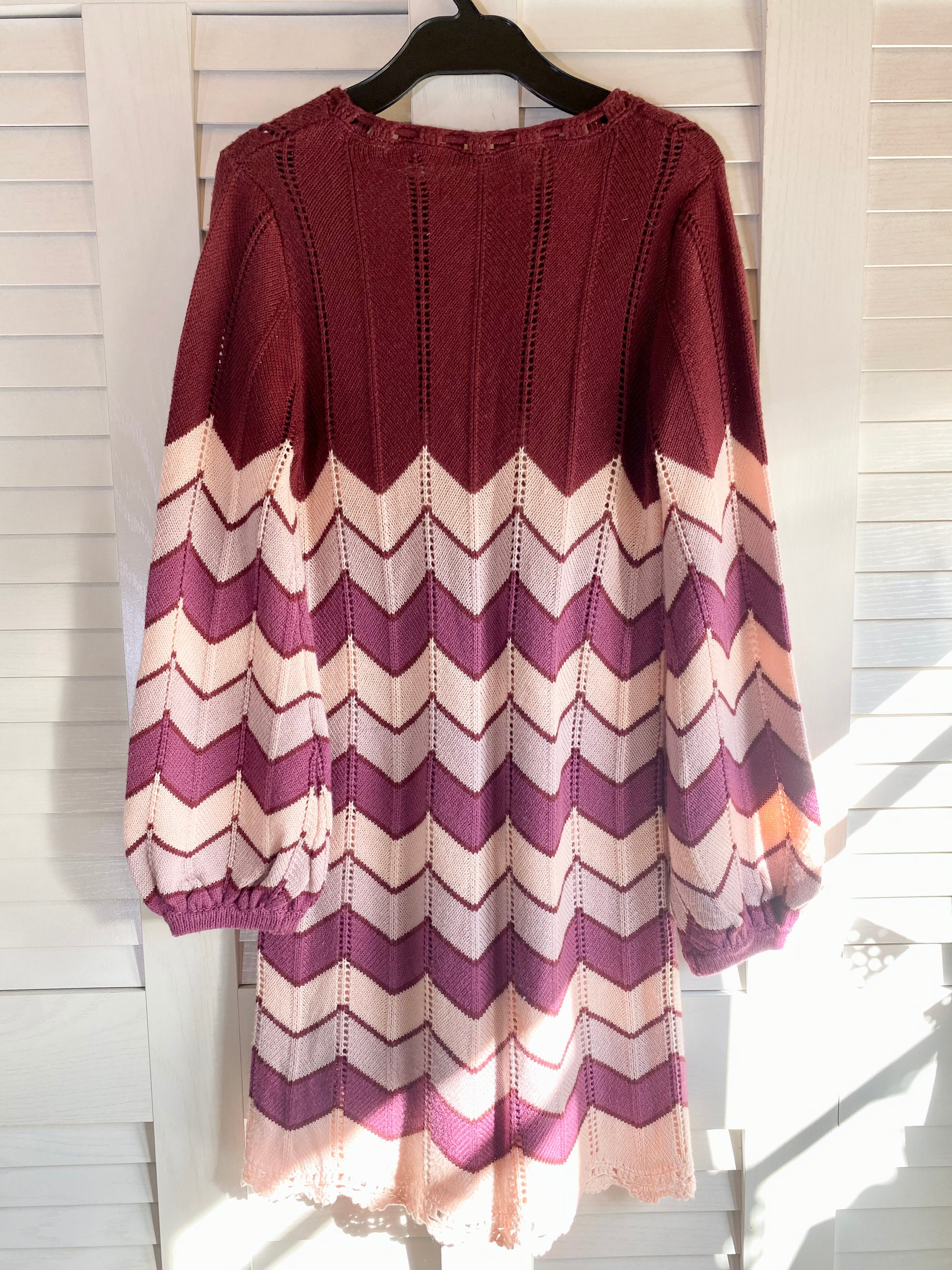 #95 Lily Brown バルーンスリーブ ジグザグ針抜きニットワンピ ボルドー
