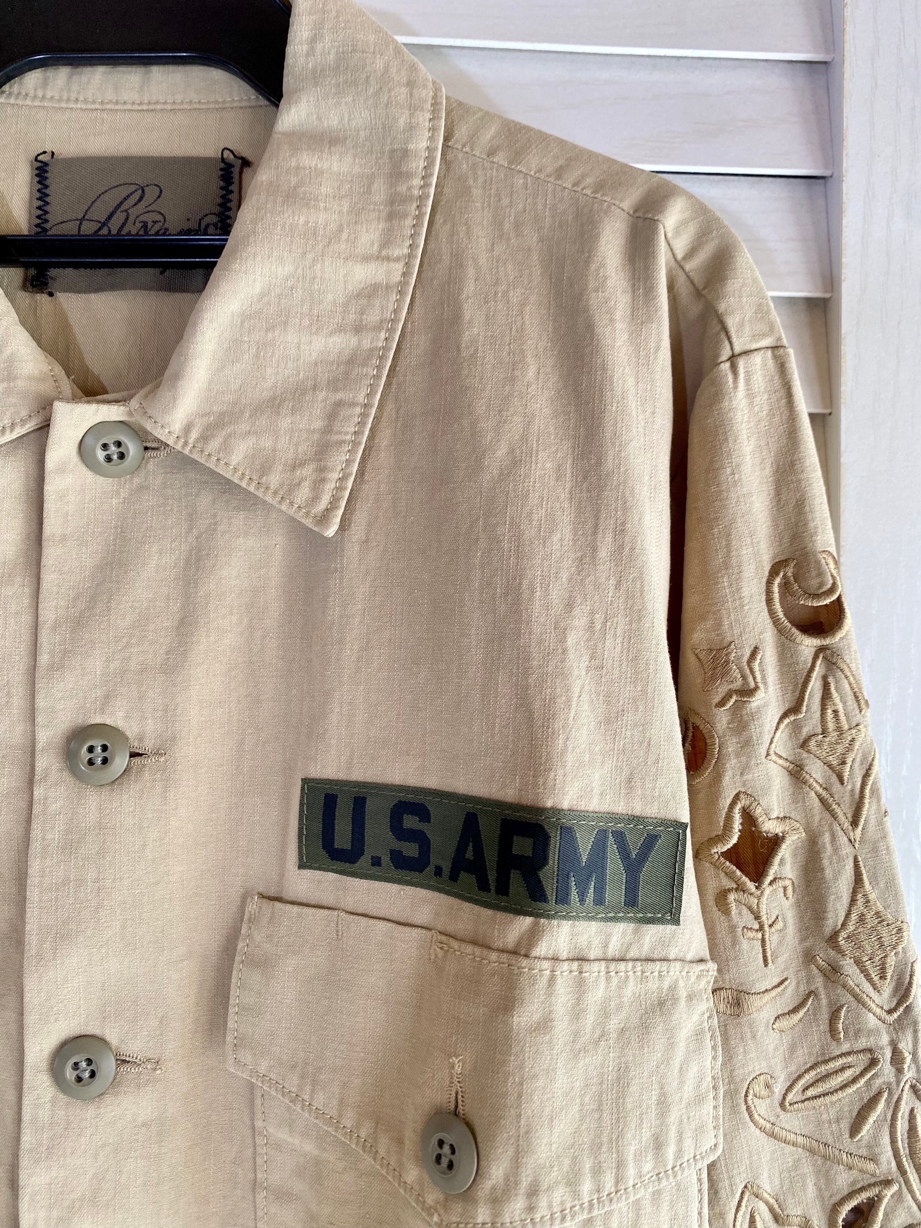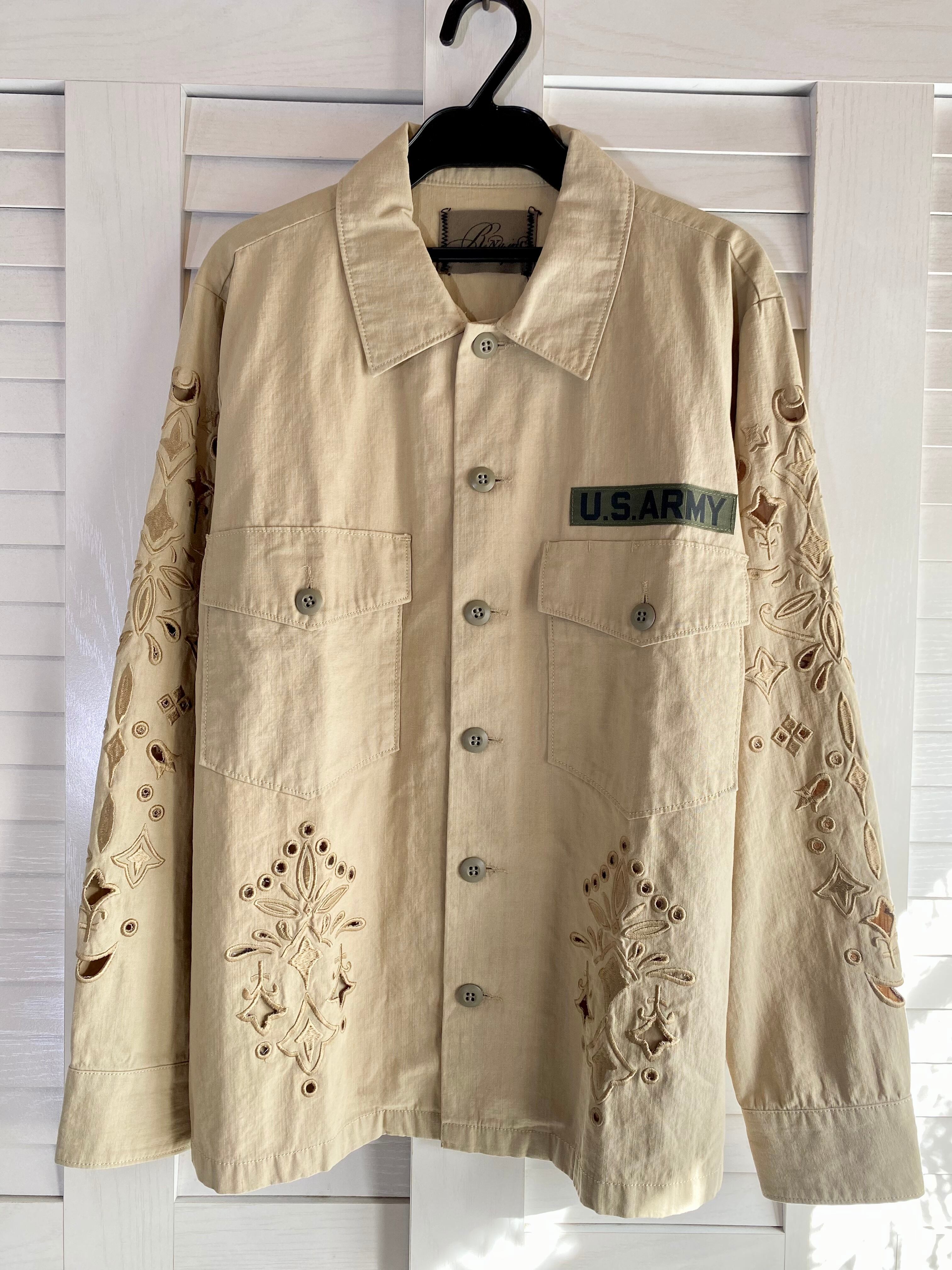 #95 RNA カッティングレース刺繍 ミリタリーシャツブルゾン カーキベージュ
