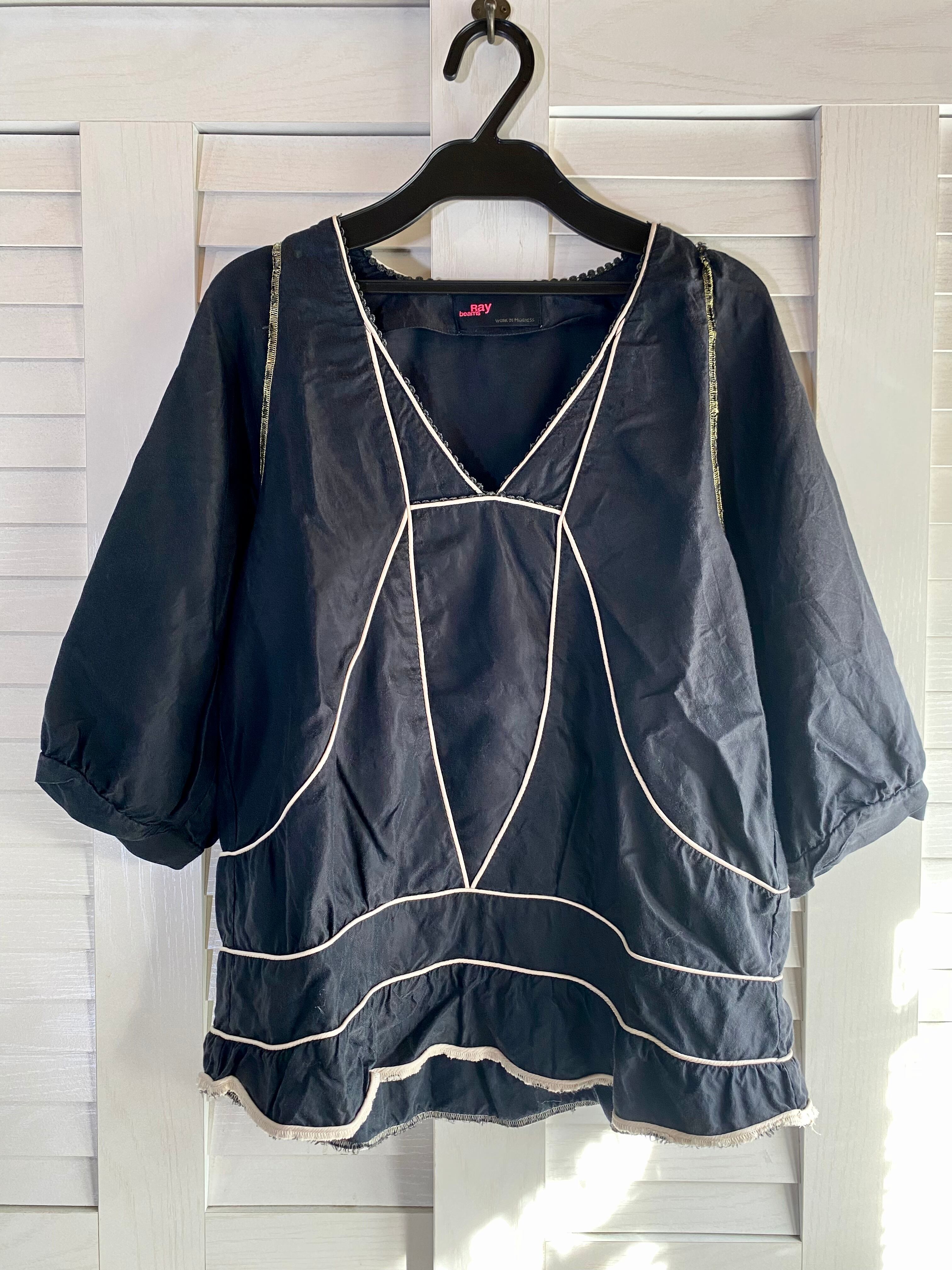 #95 Ray BEAMS パイピング切り替えデザインプルオーバーブラウス ブラック