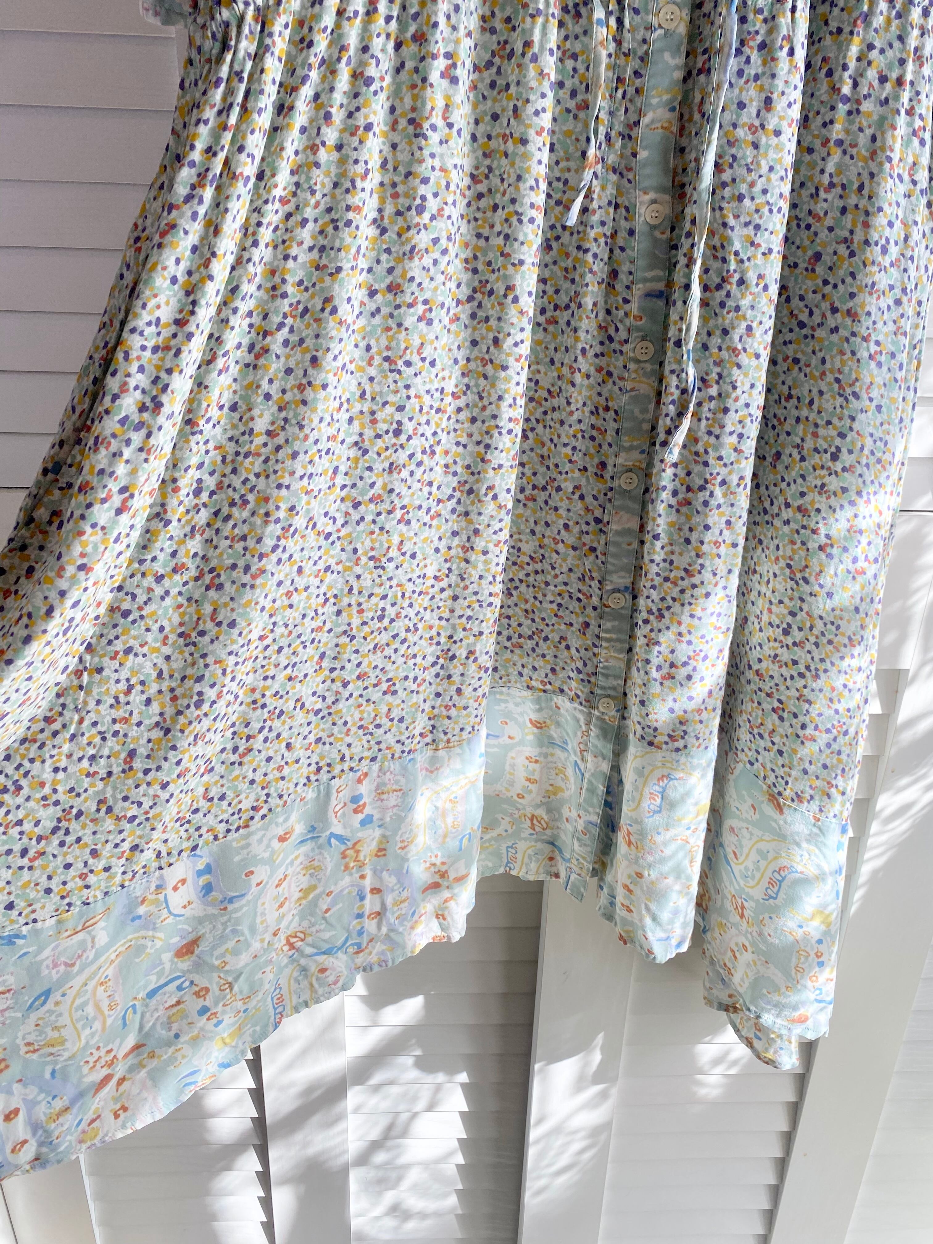 #97 AS KNOW AS 水彩タッチプリント イレギュラーヘム レーヨンボリューシャツワンピ ミントグリーン