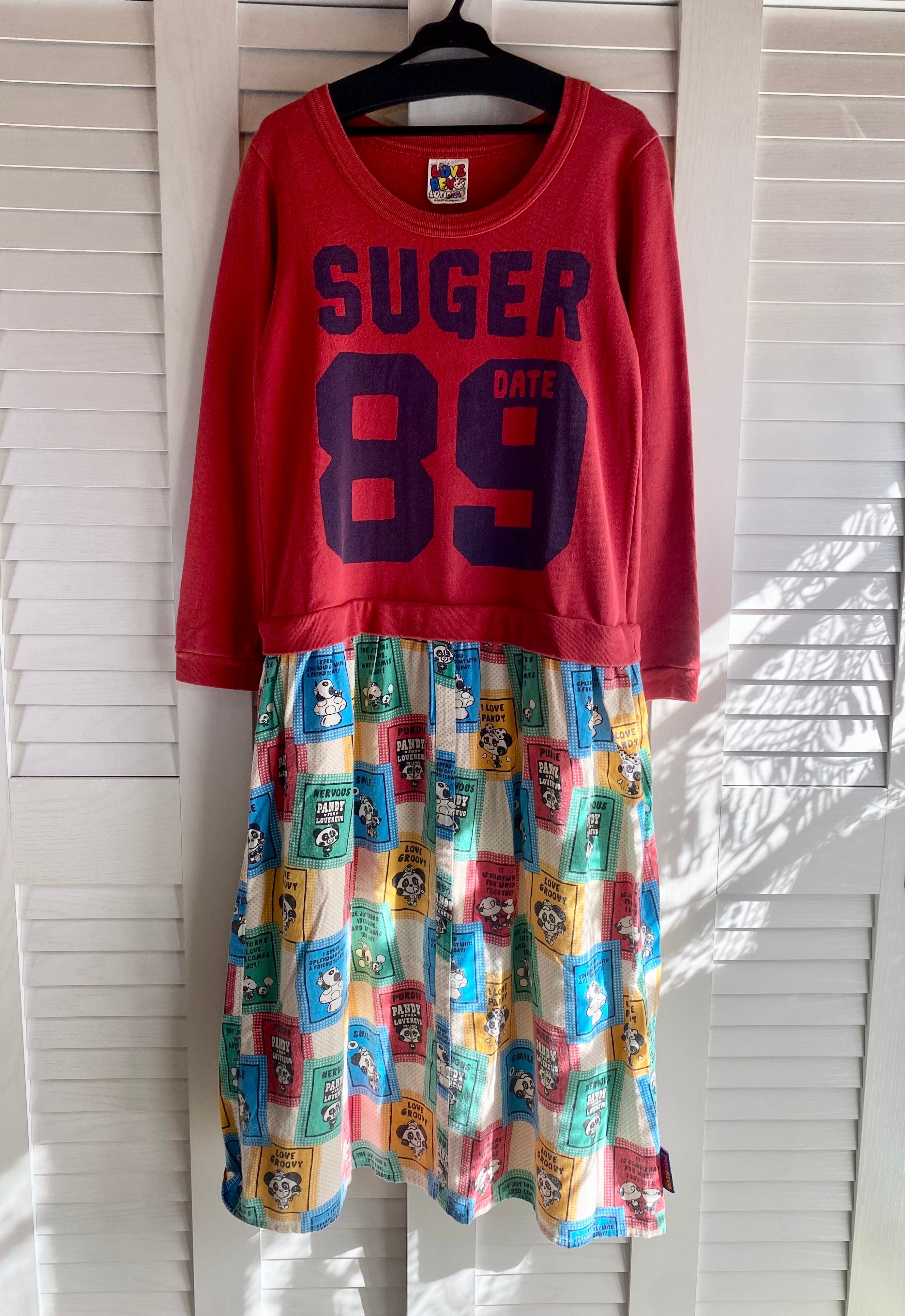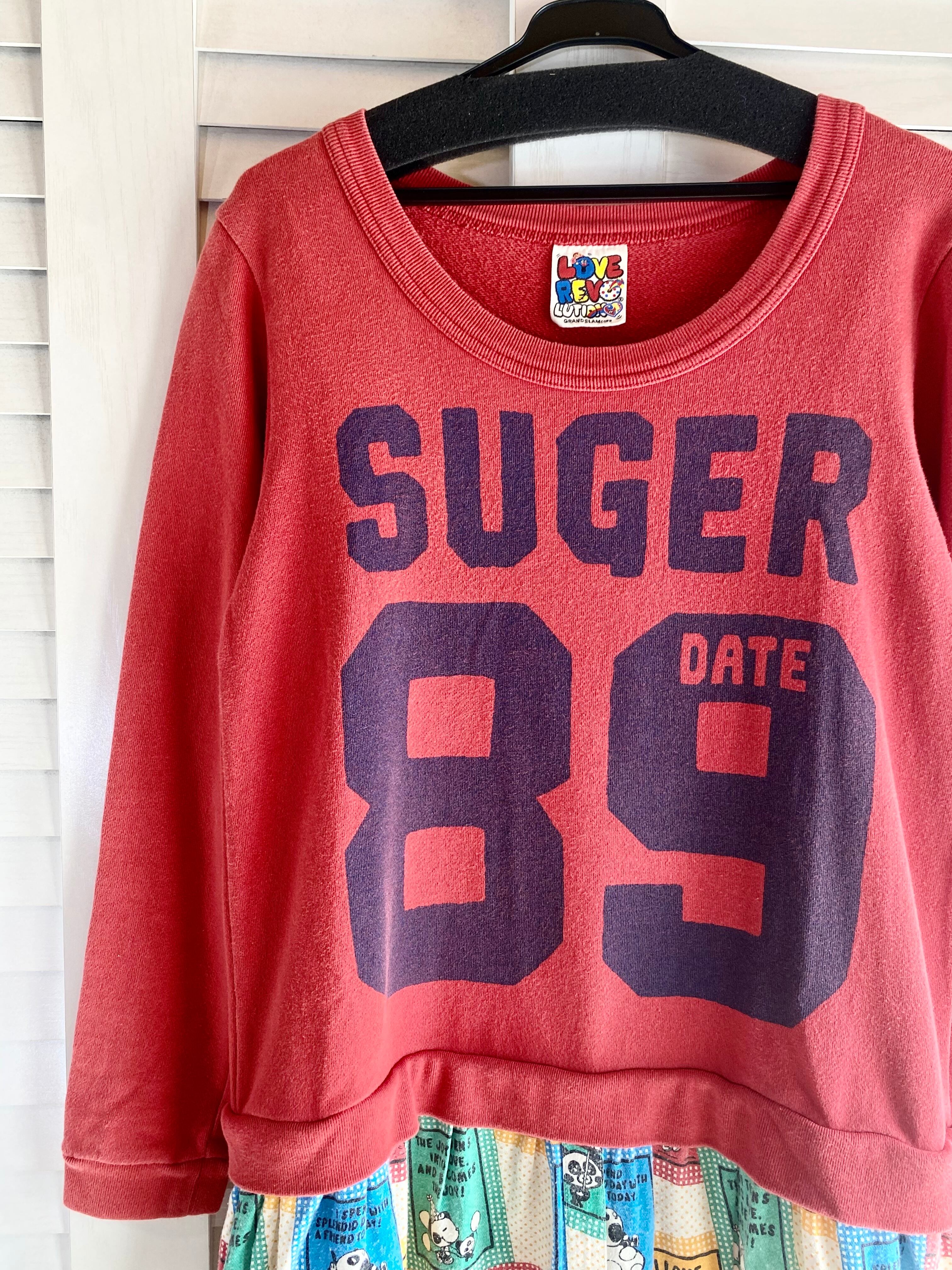#97 LOVE REVOLUTION 古着リメイク風 スウェットドッキングワンピ レッド