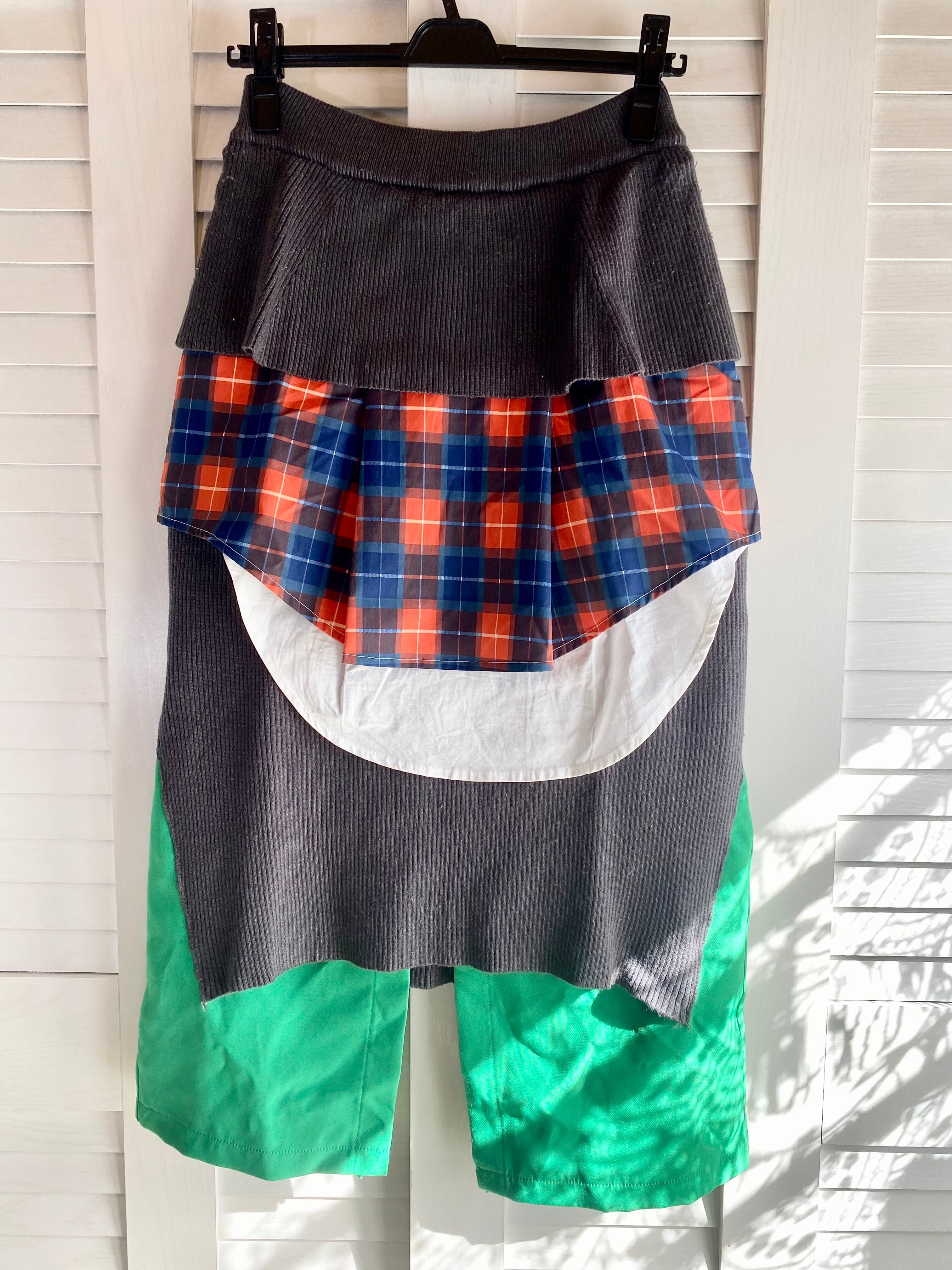 #97 SANSeLF レイヤードレイヤード デザインスカート チャコールグレー×グリーン