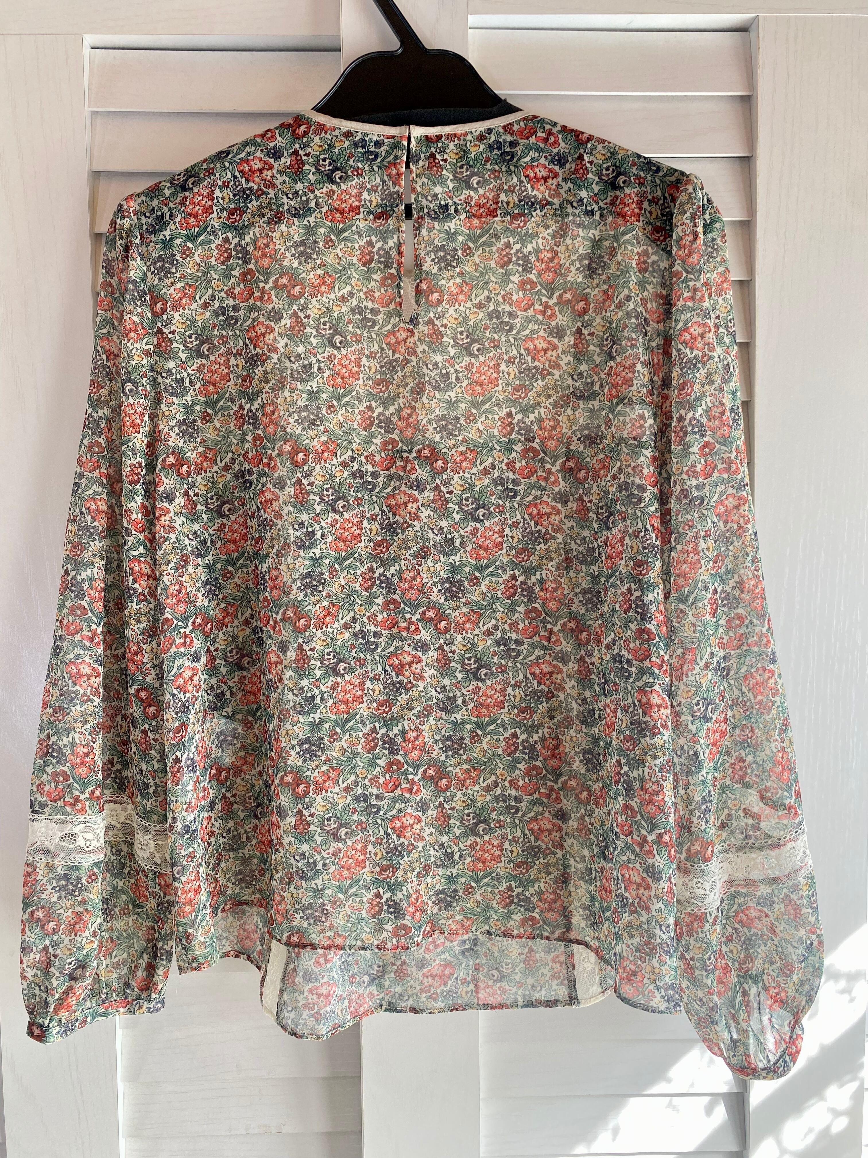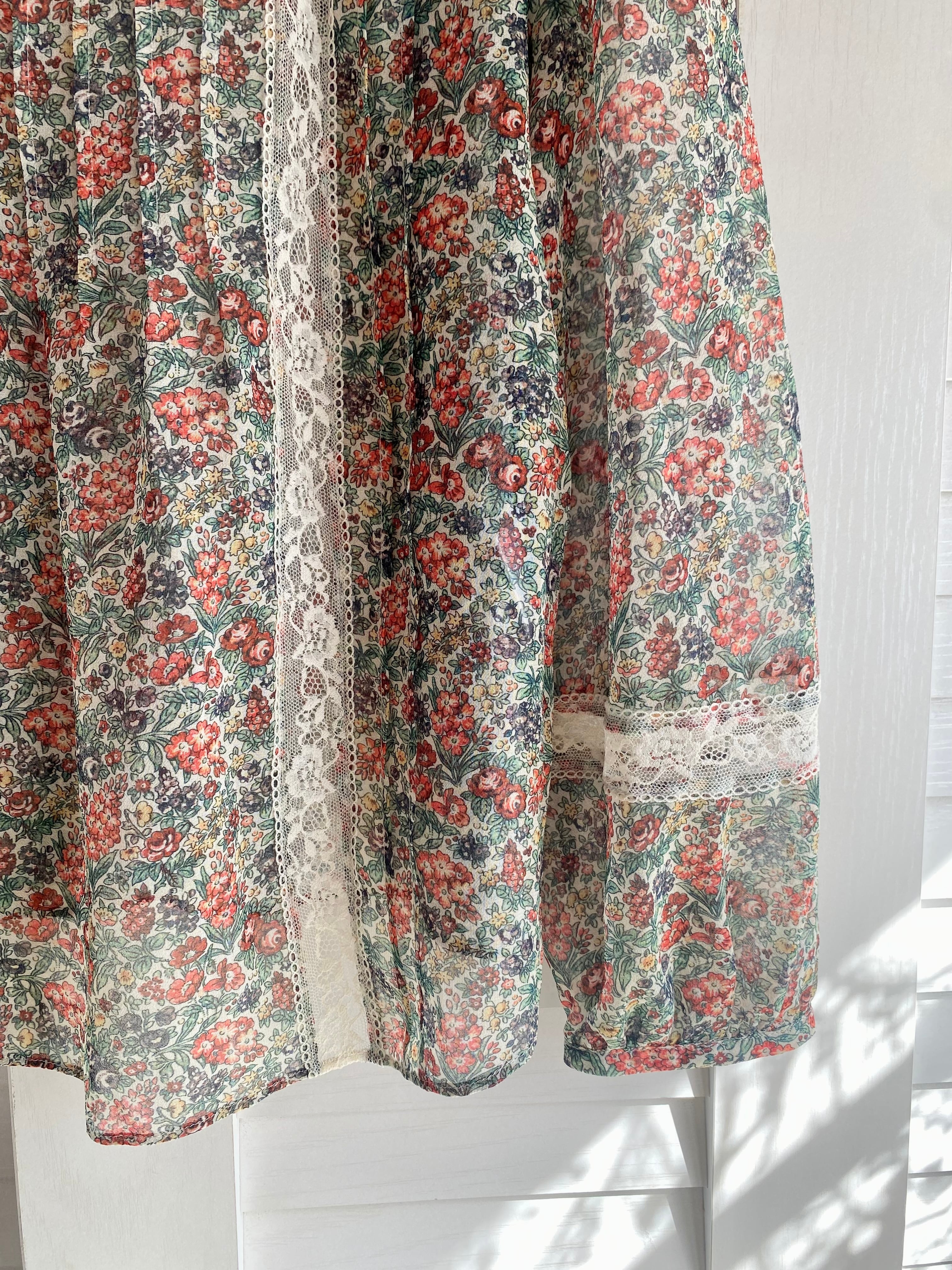 #98 JILL STUART 小花柄シアージョーゼット ボリュームスリーブ レースヨークプルオーバーブラウス ベージュ