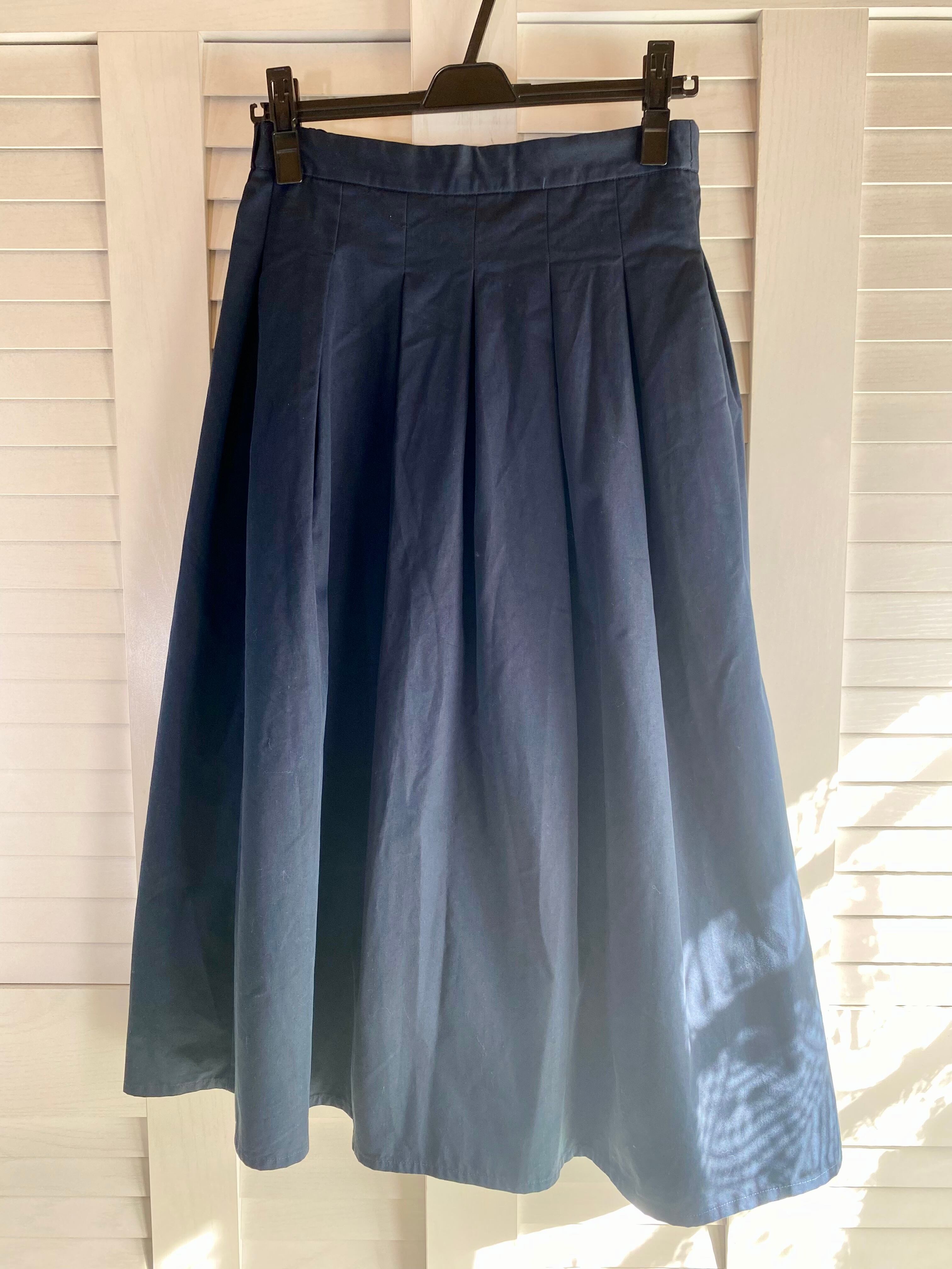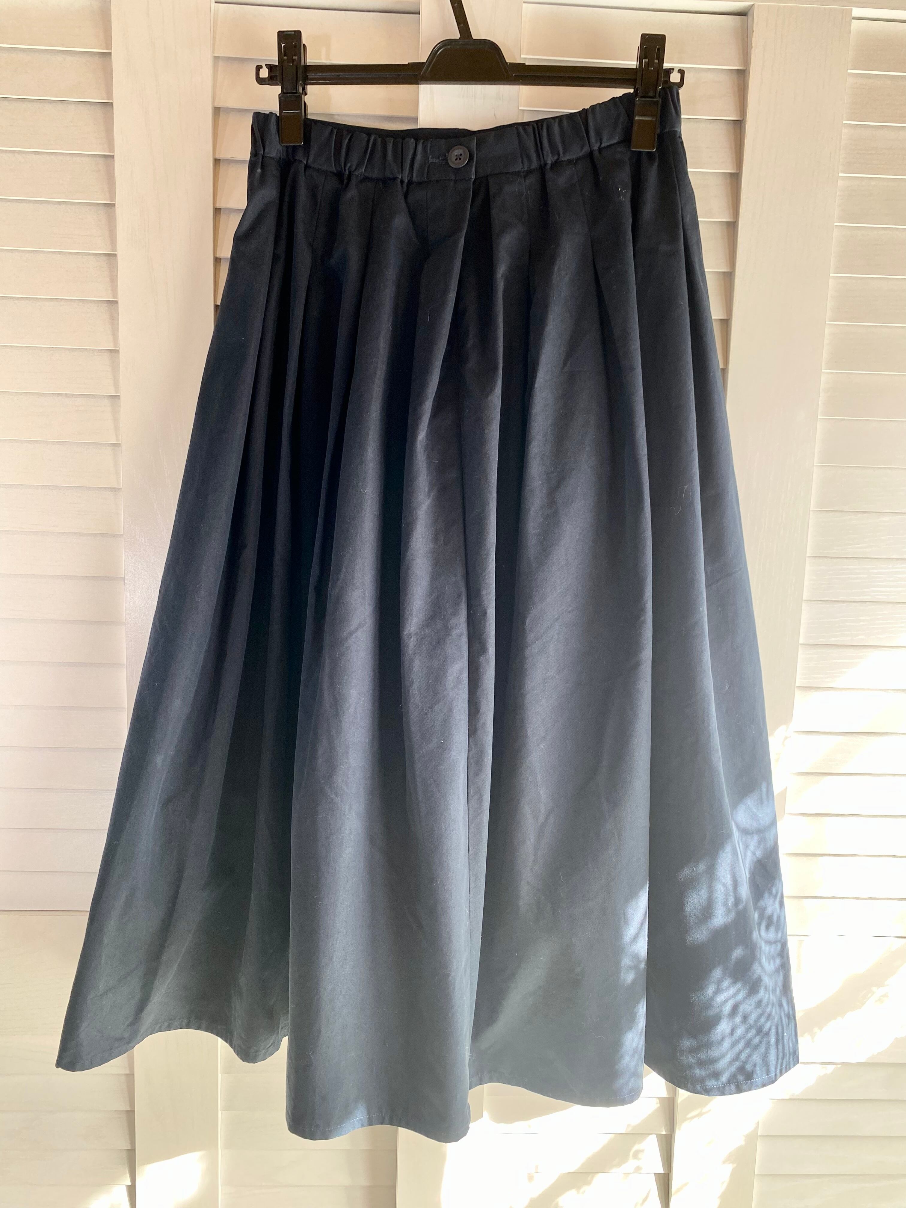 #98 FORK & SPOON コットンタフタ タックプリーツフレアースカート ネイビー