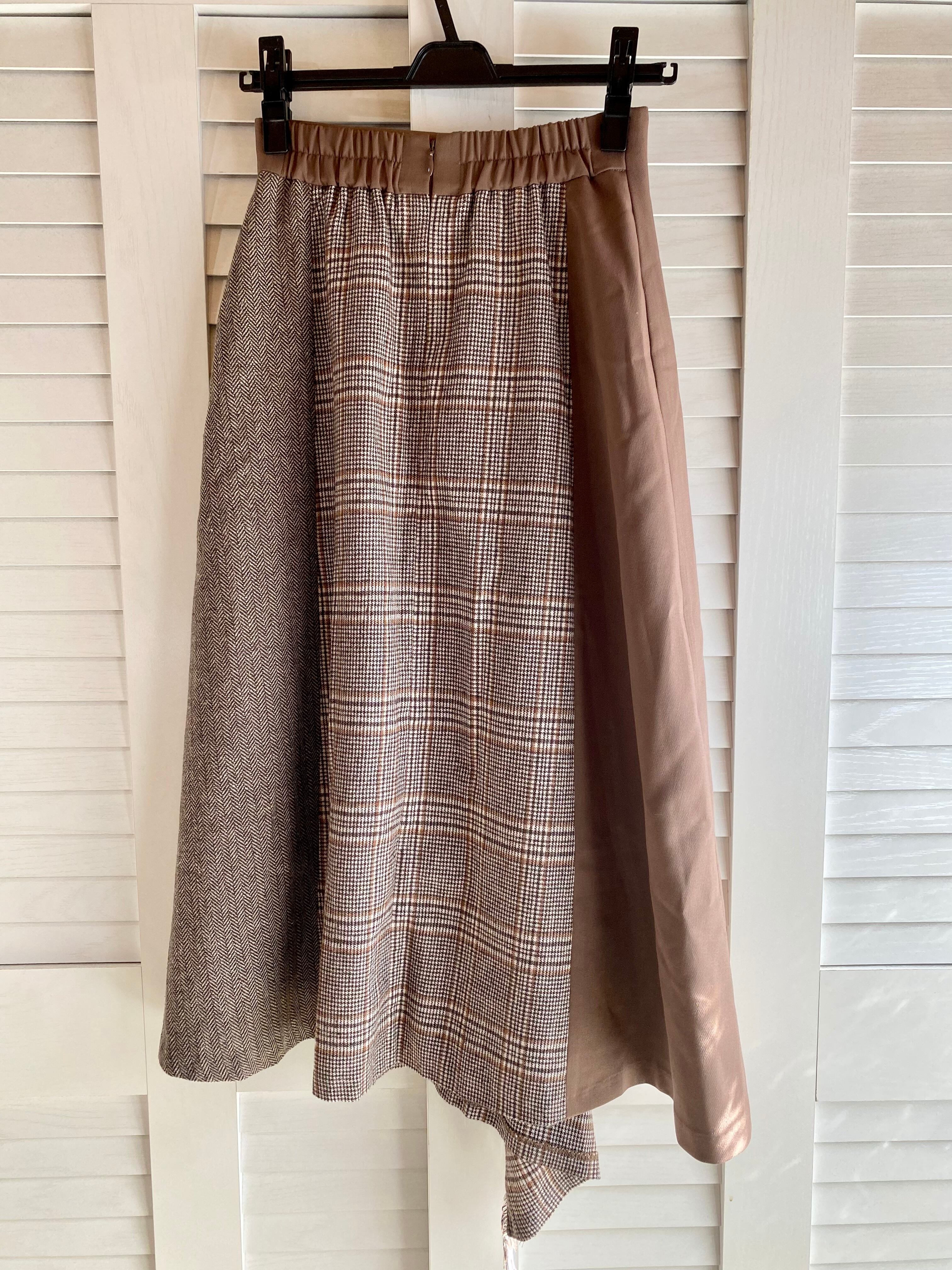 #99 MURUA グレンチェック&ヘリンボーン キルト風フレアースカート モカベージュ