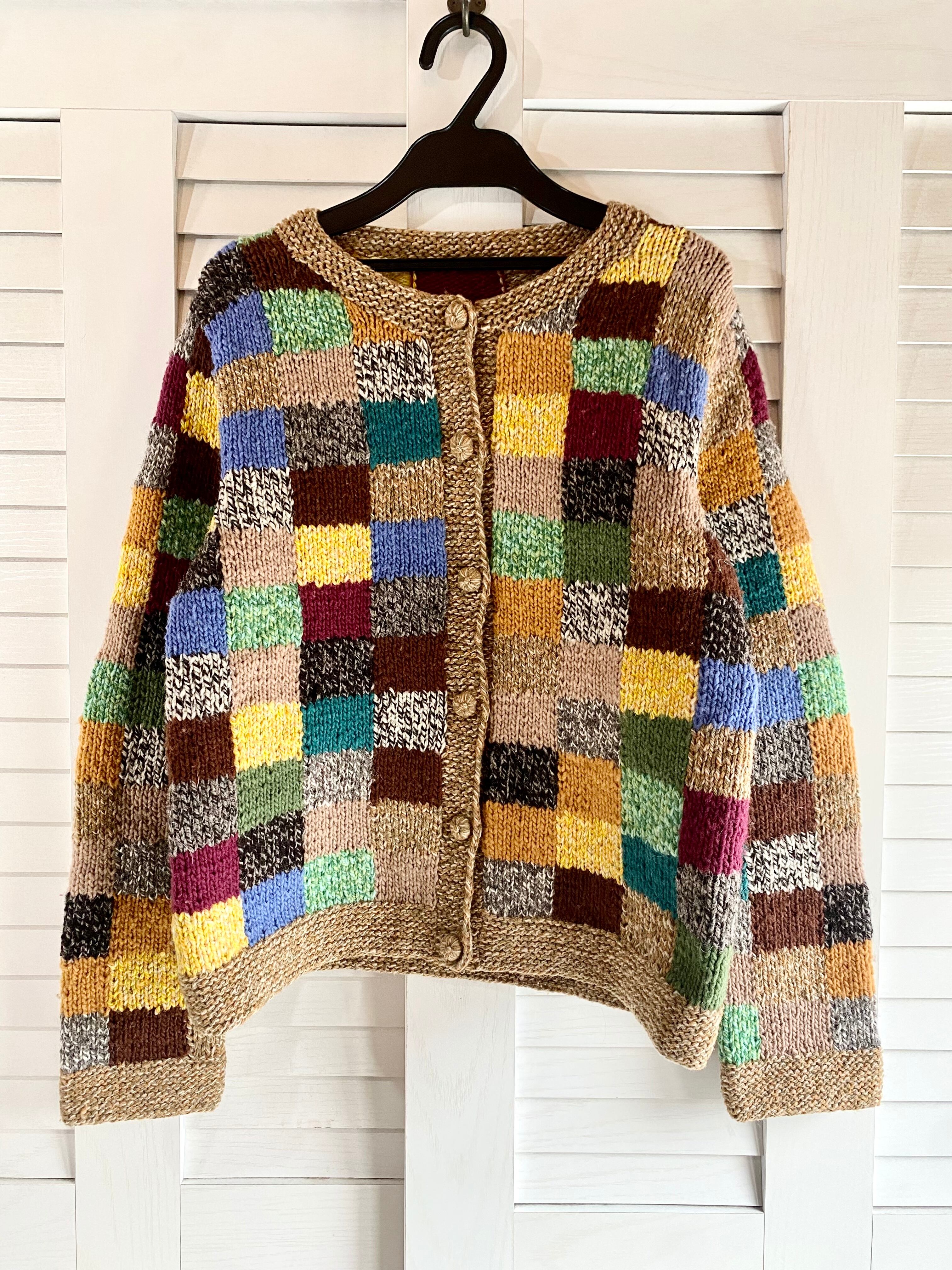 #100【古着屋購入】70Sヴィンテージ パッチワークニットカーデ マルチカラー | お洋服屋さん 『GOKKO』
