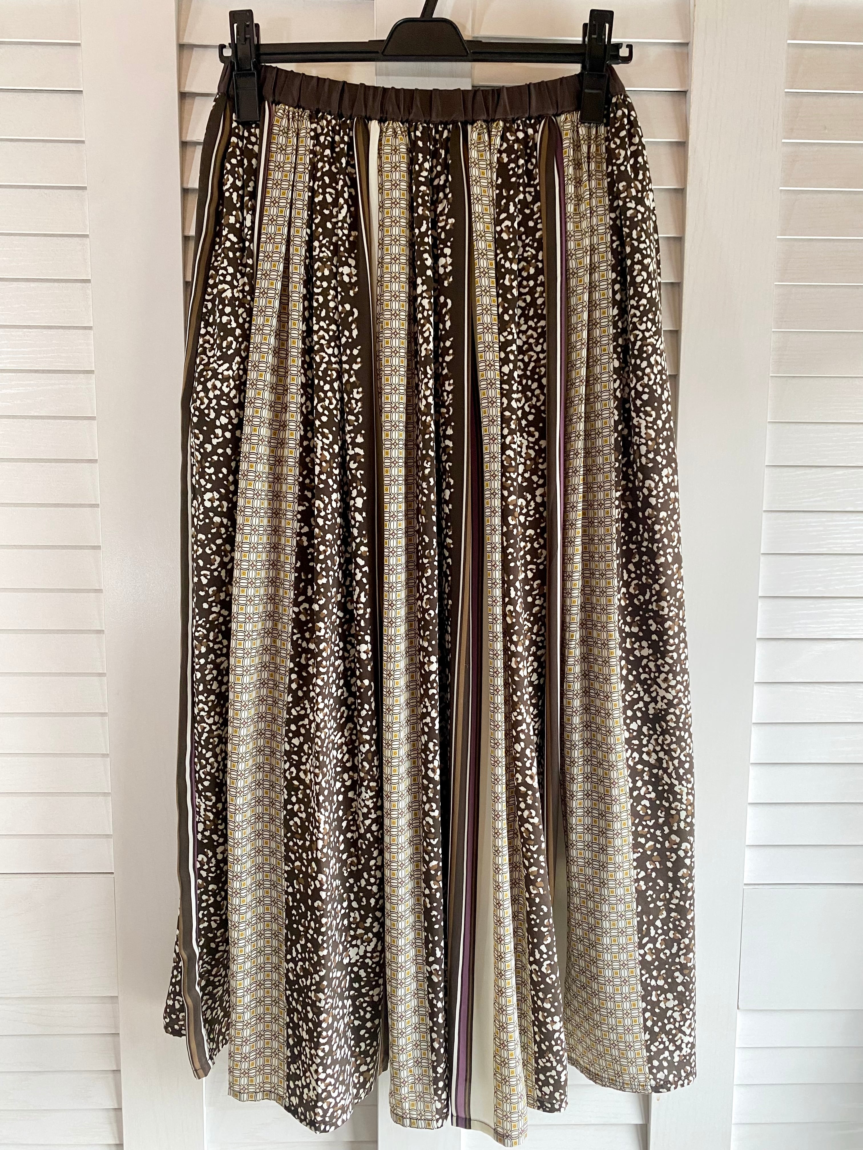 #100 HUNCH マットサテンアニマルMIXパネルプリントロングスカート モカブラウン
