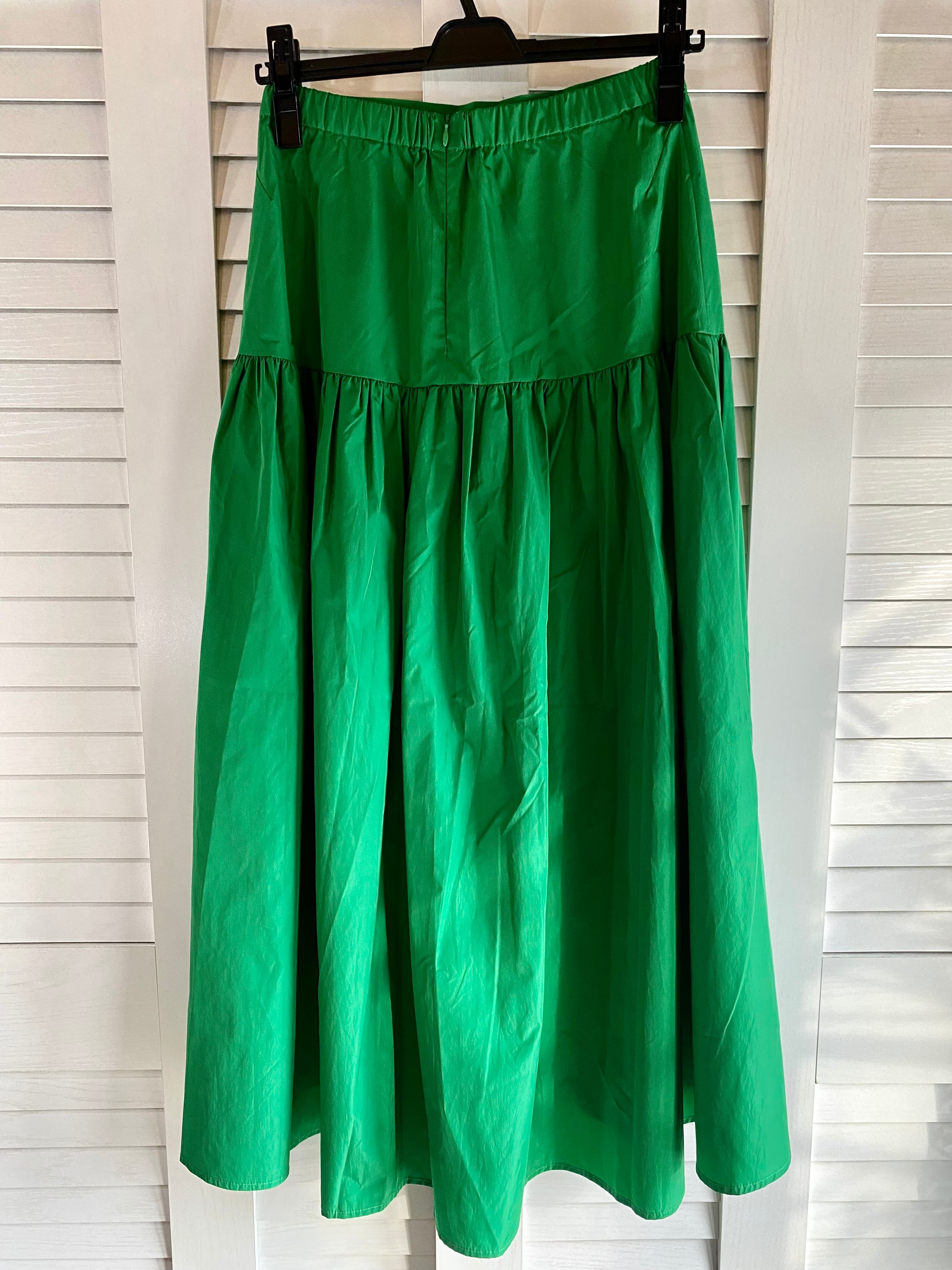 #100 ELFRANK ポリエステルタフタ ヴィヴィッドティアードスカート グリーン