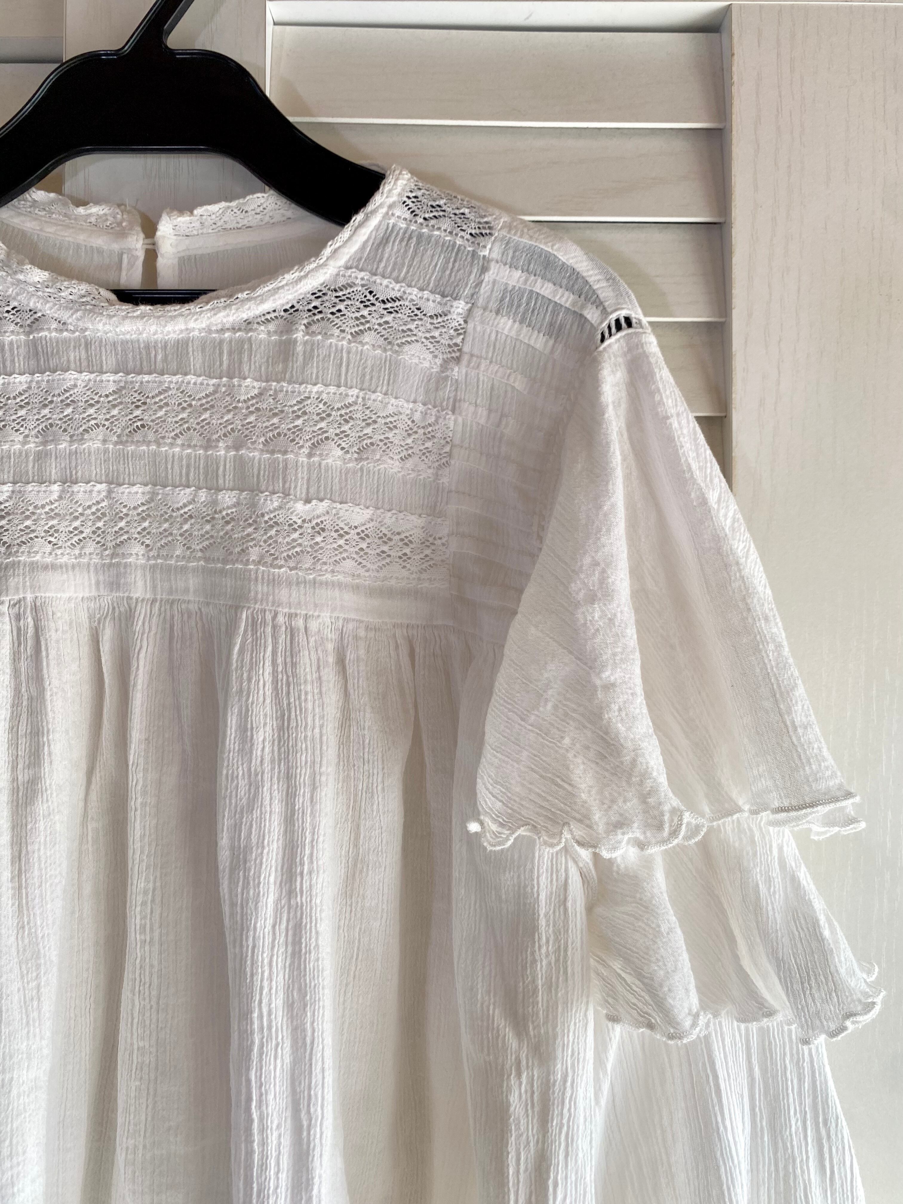 #101 Ungrid コットン楊柳 レース&フリル ボリュームスリーブチュニックブラウス オフホワイト