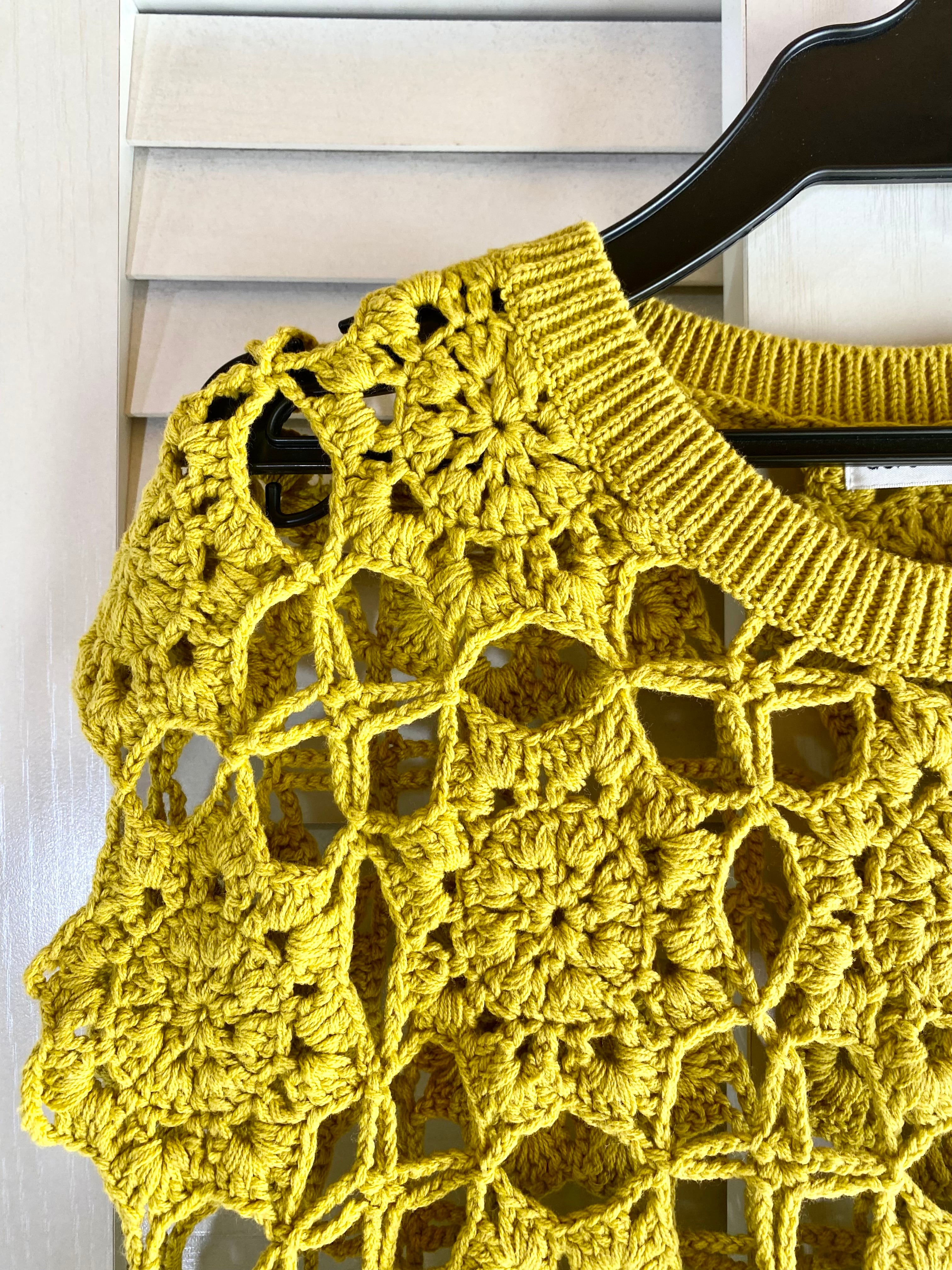 #101 acro カギ編みモチーフ コットンアクリル ニットミニセーター マスタード