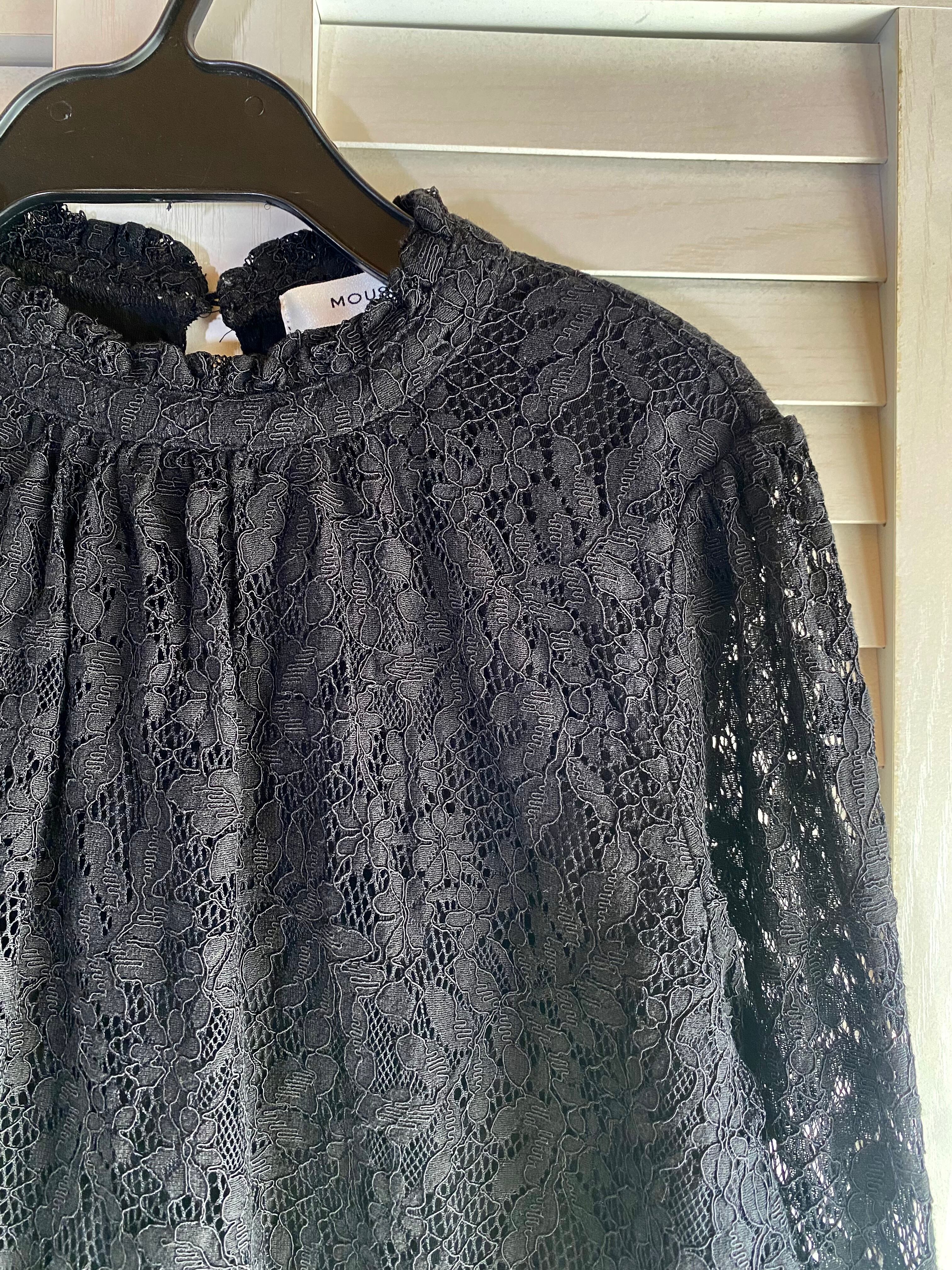 #101 moussy 総レース ベルスリーブブラウス ブラック