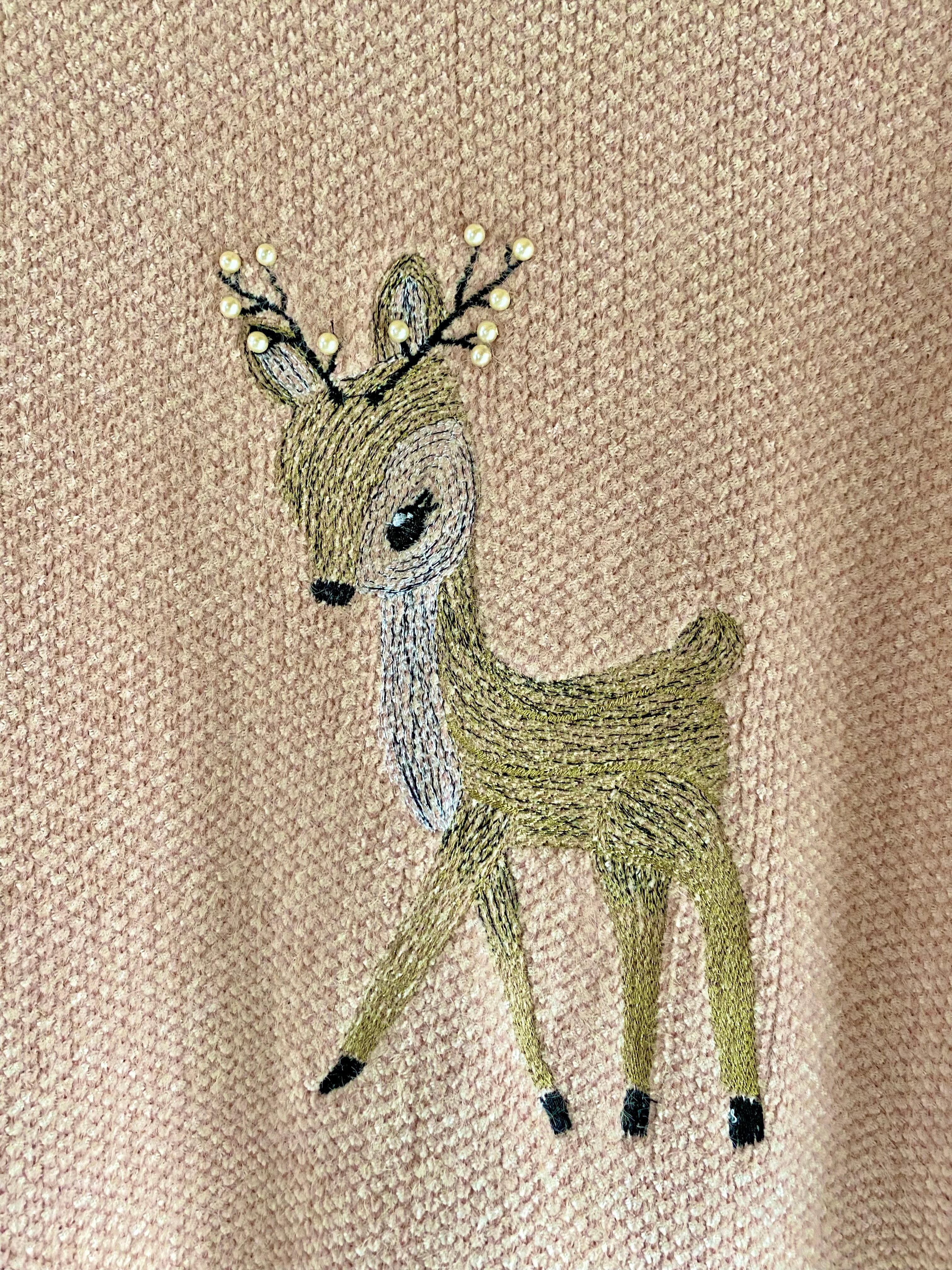 #102 titty & Co. バンビ刺繍 アッシュカノコニットセーター スモーキーピンク