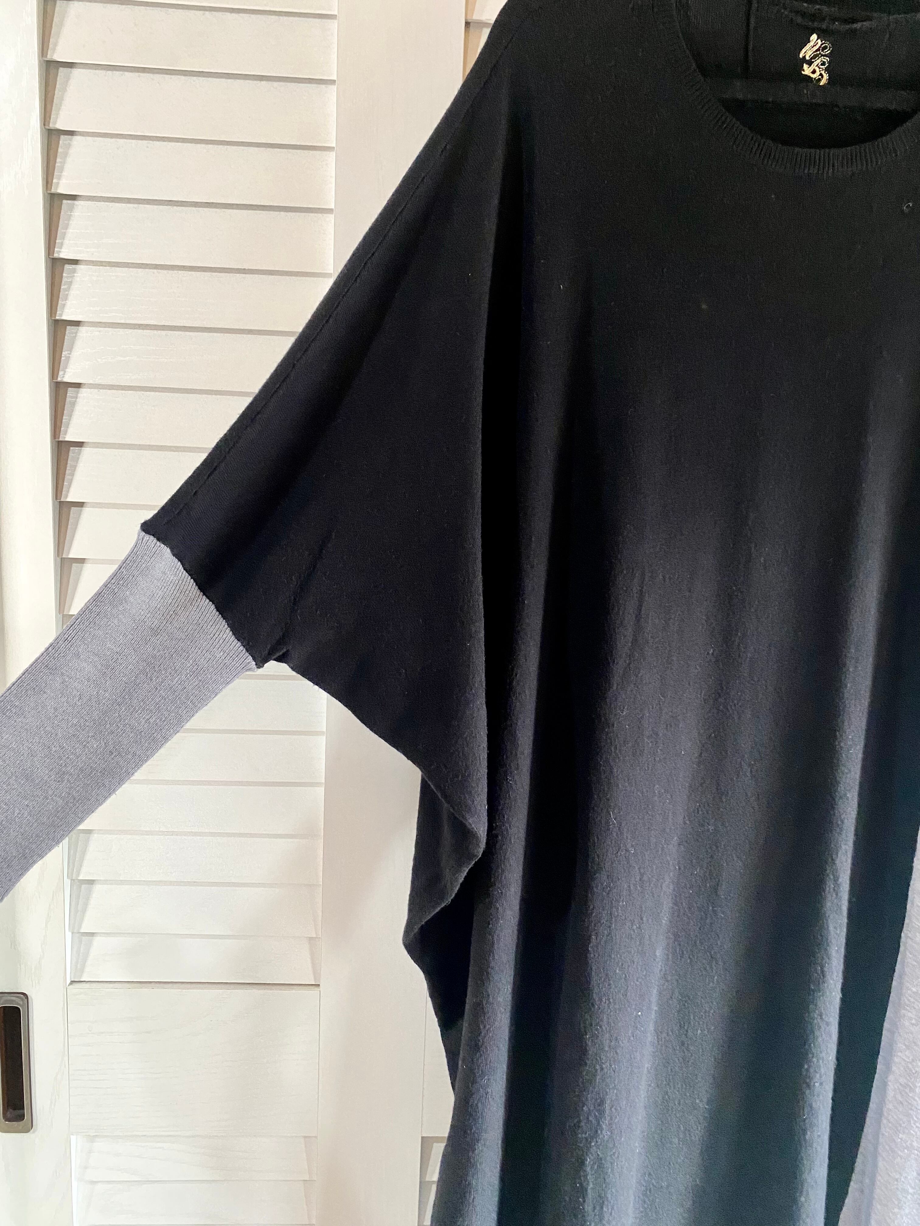#102 OSMOSIS バイカラー アシメデザインニットワンピ ブラック×ライトグレー