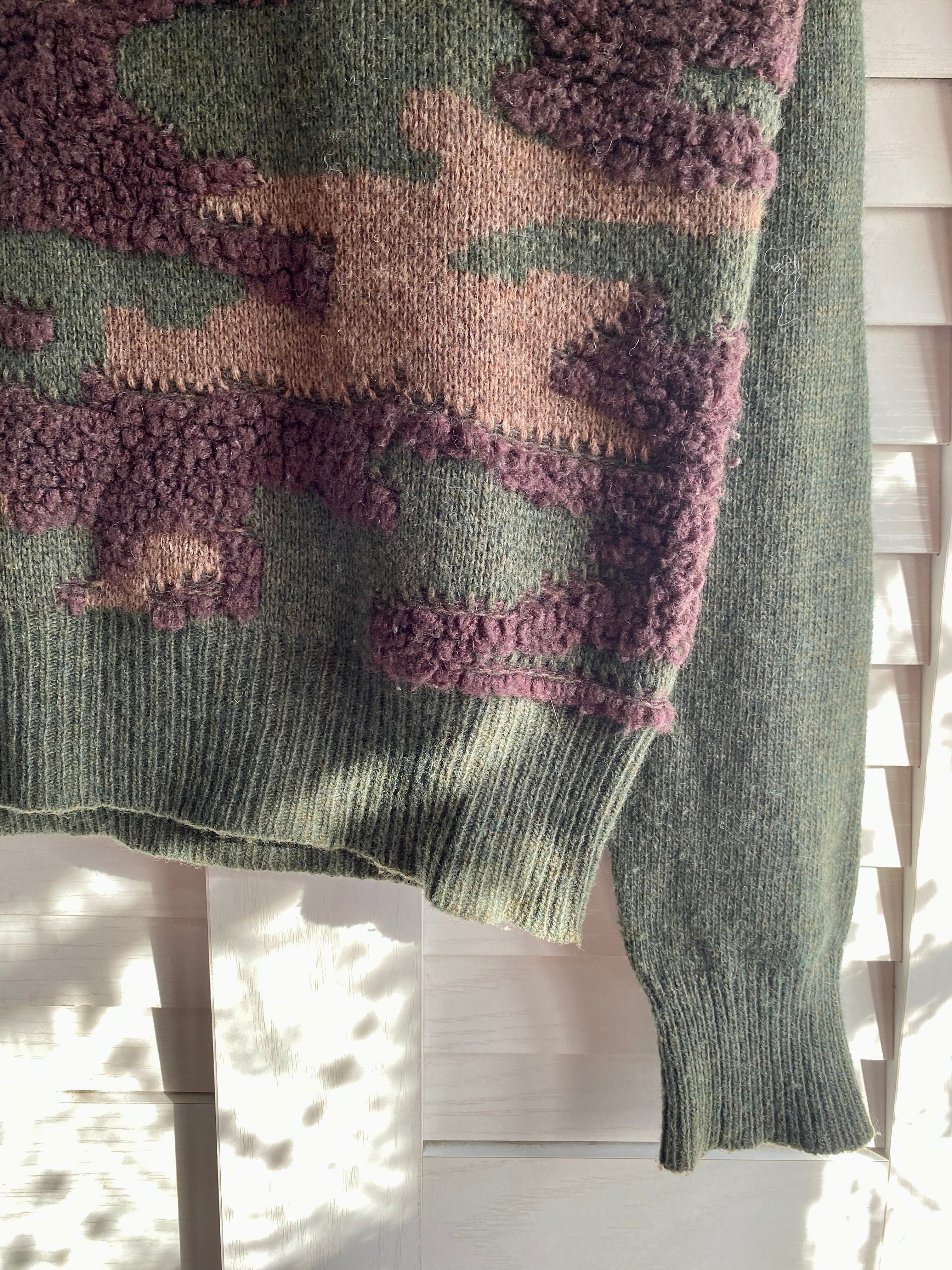 #103 BEAMS ウール&ボア迷彩デザインニット カーキ