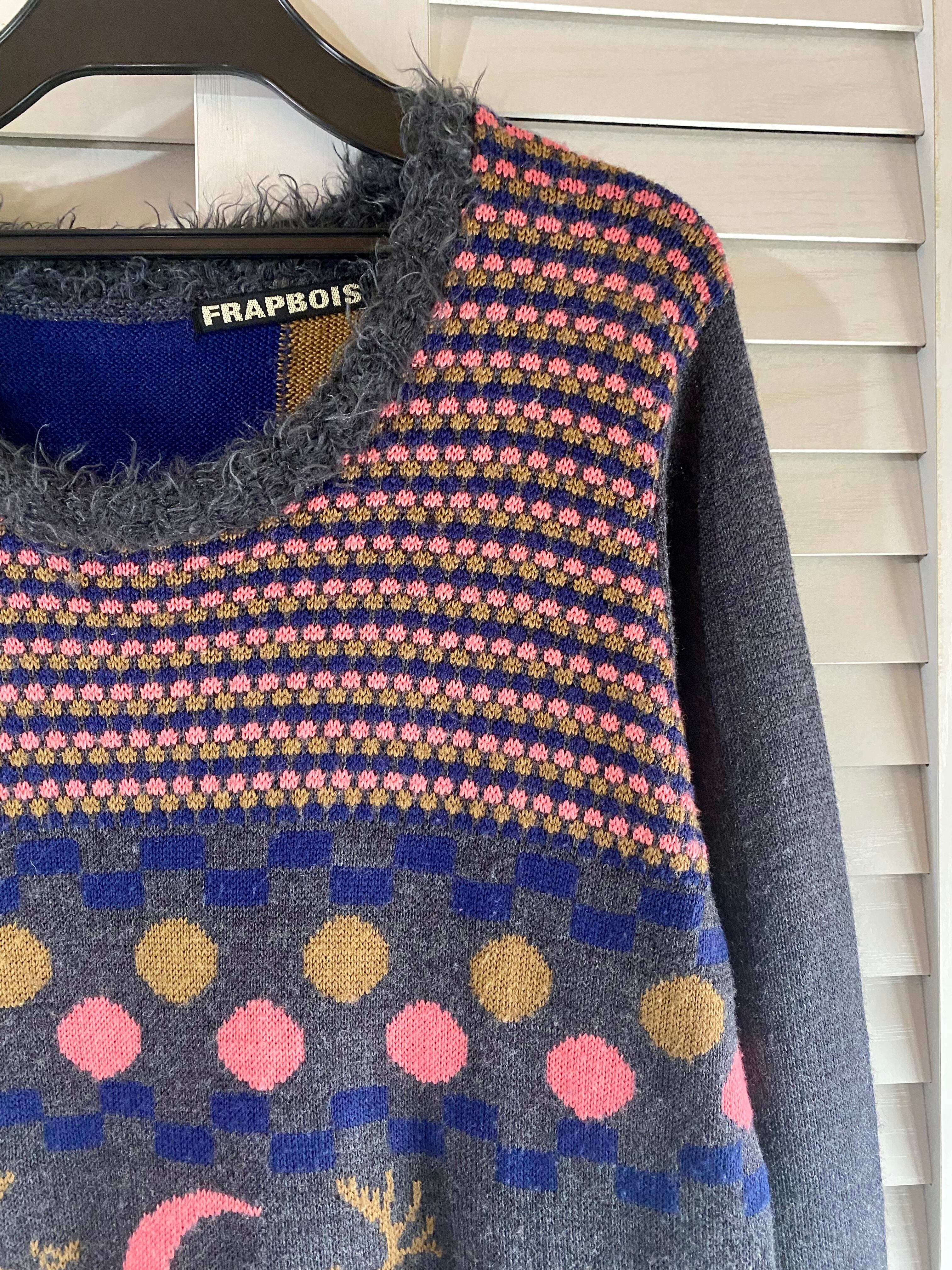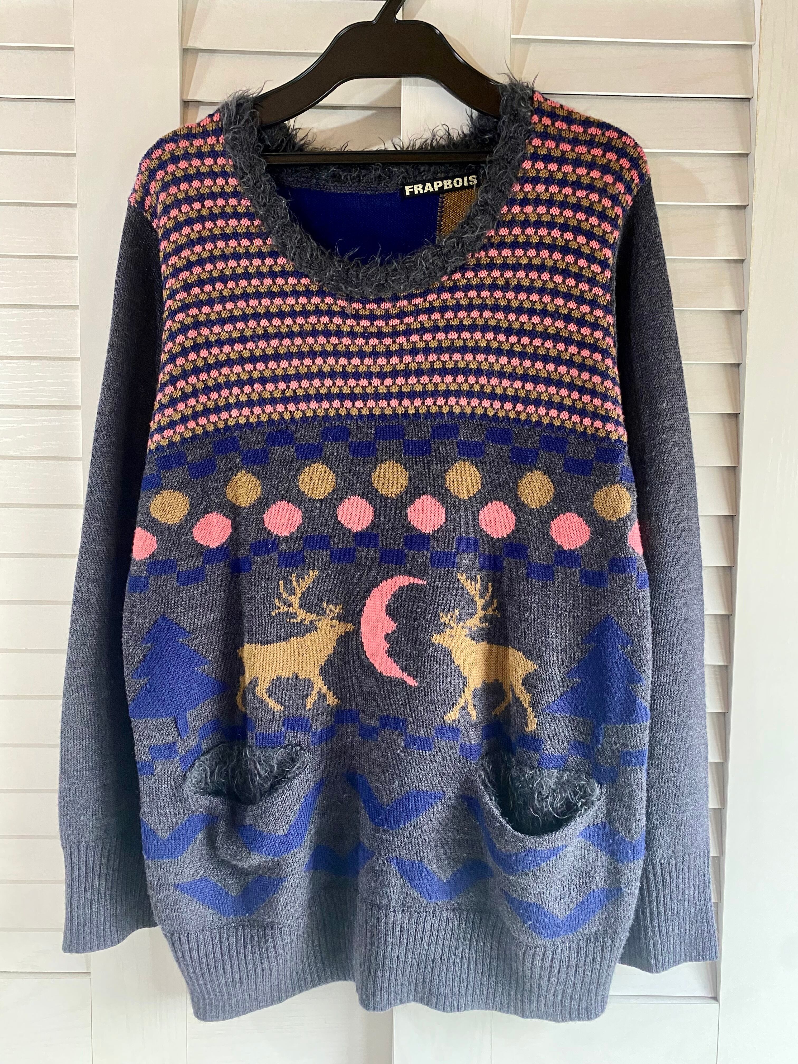 #104 FRAPBOIS エゾシカジャガードデザインニット チャコールグレー | お洋服屋さん 『GOKKO』