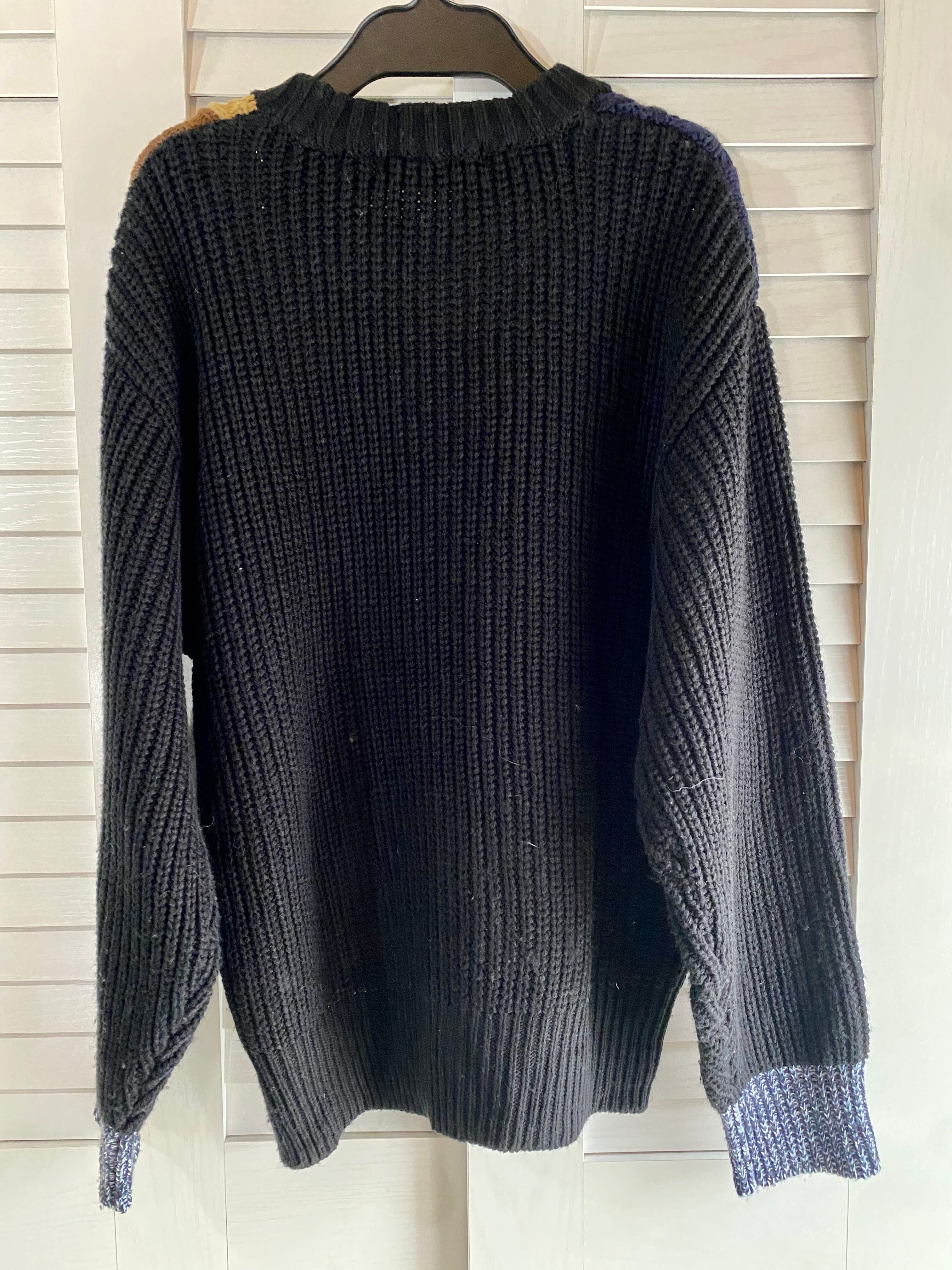 #107 EMODA クレイジーパターン パッチワークデザインニット ブラック×ネイビー
