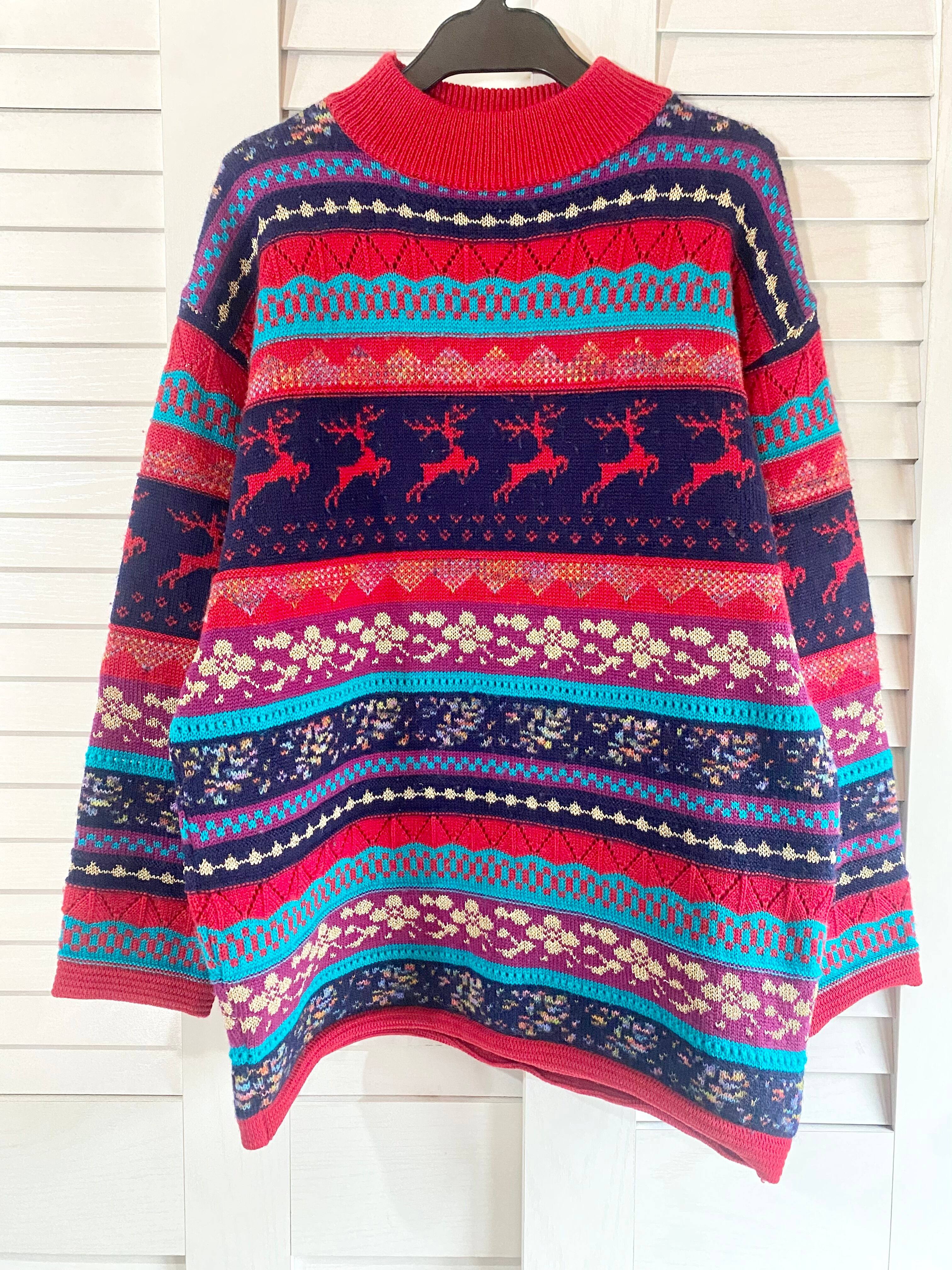 #108【国産古着】70Sヴィンテージ 北欧ボーダーニット レッド