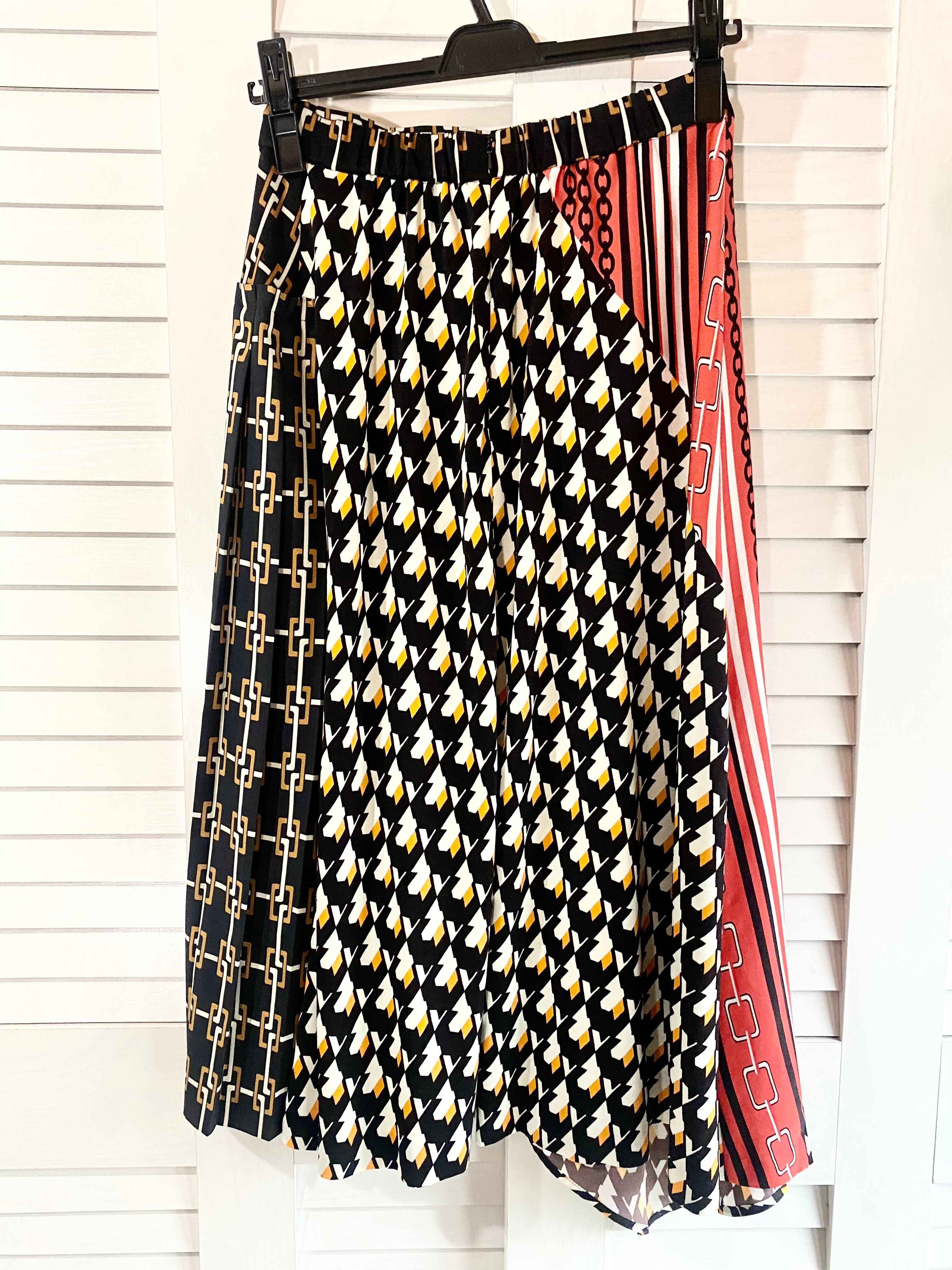 #108 CAST レトロパターン イレギュラーパッチフレアースカート ブラック