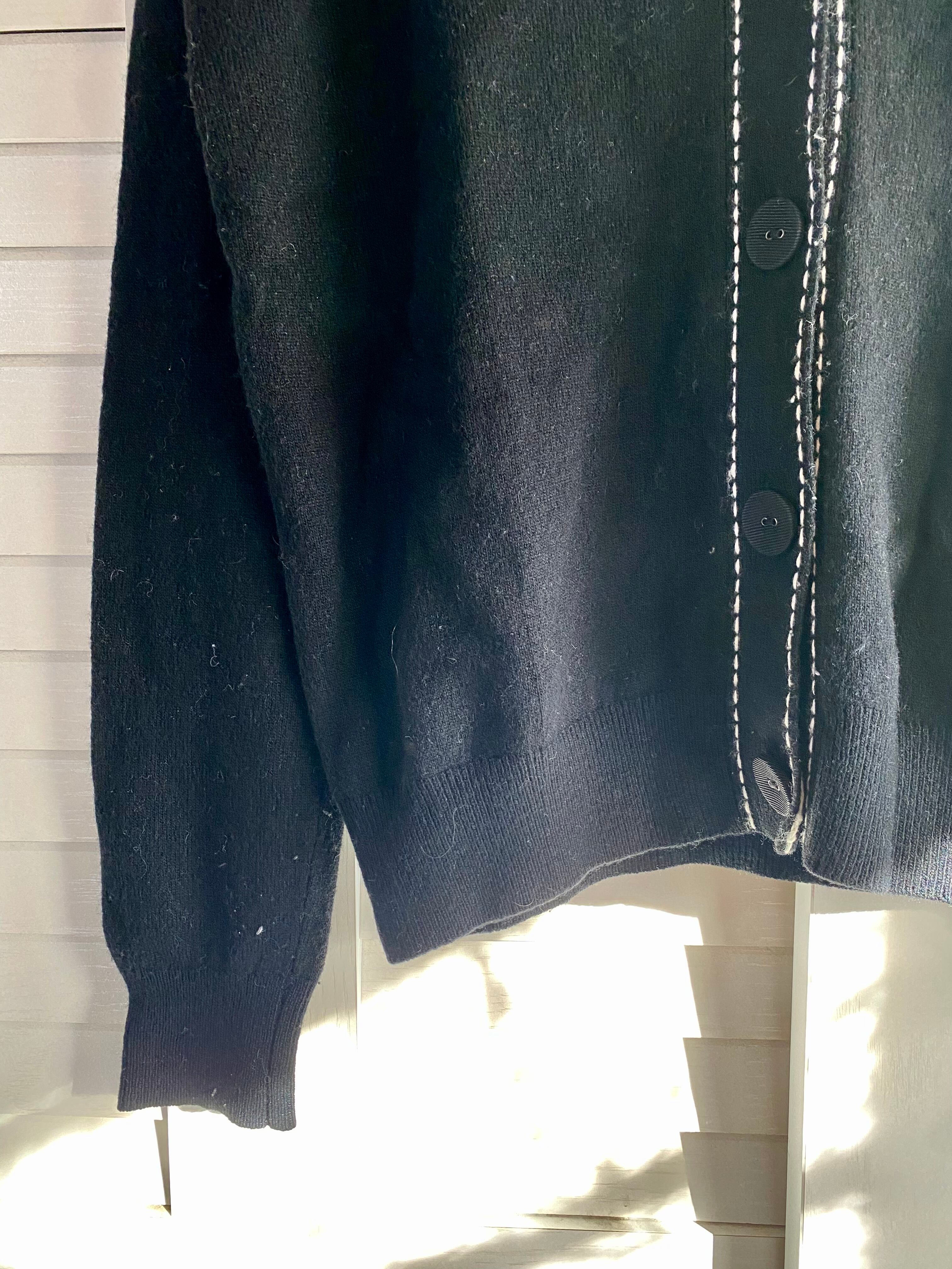 #110 LANVIN ハンドステッチ Vネックウールニットカーデ ブラック | お洋服屋さん 『GOKKO』