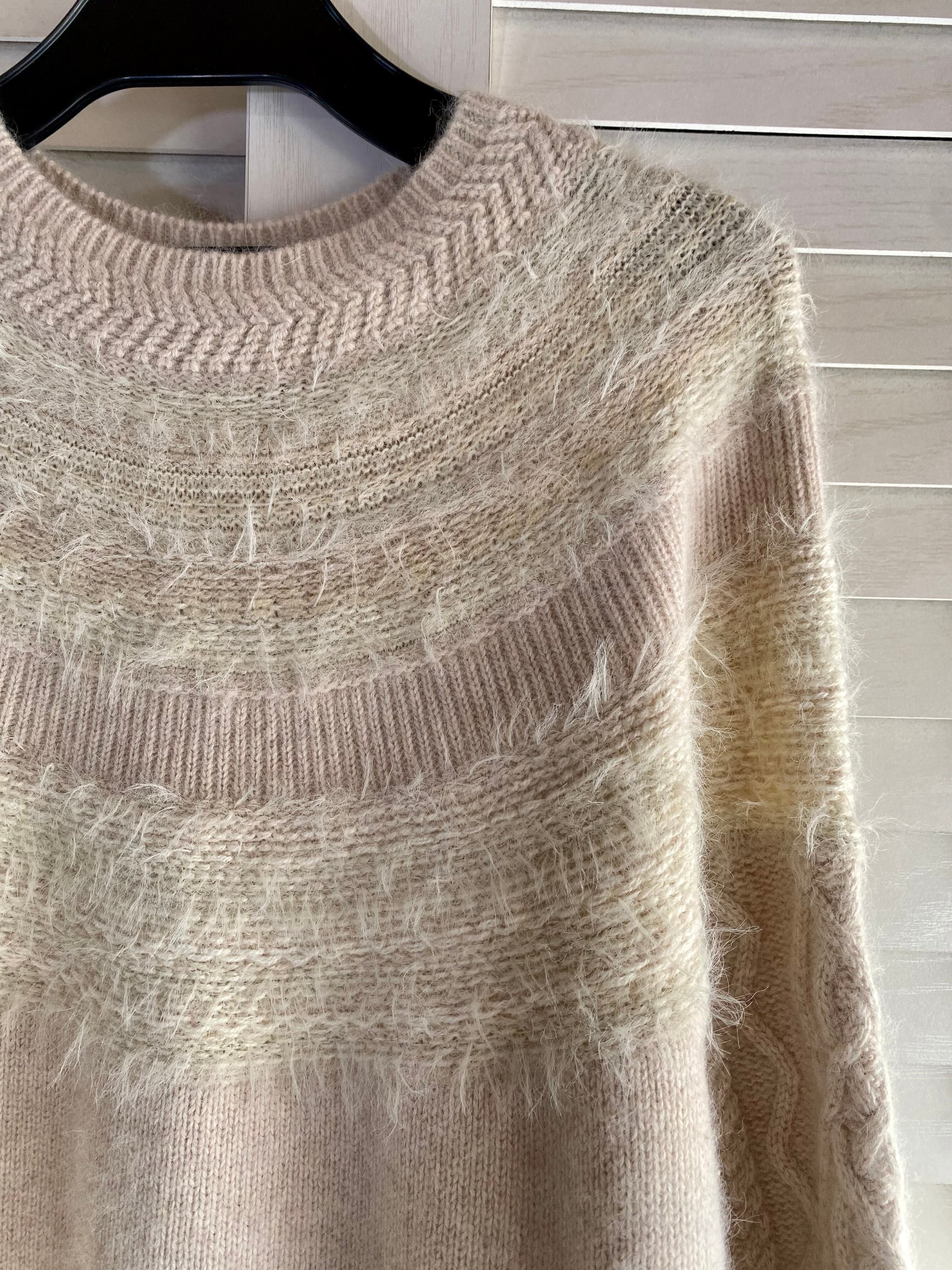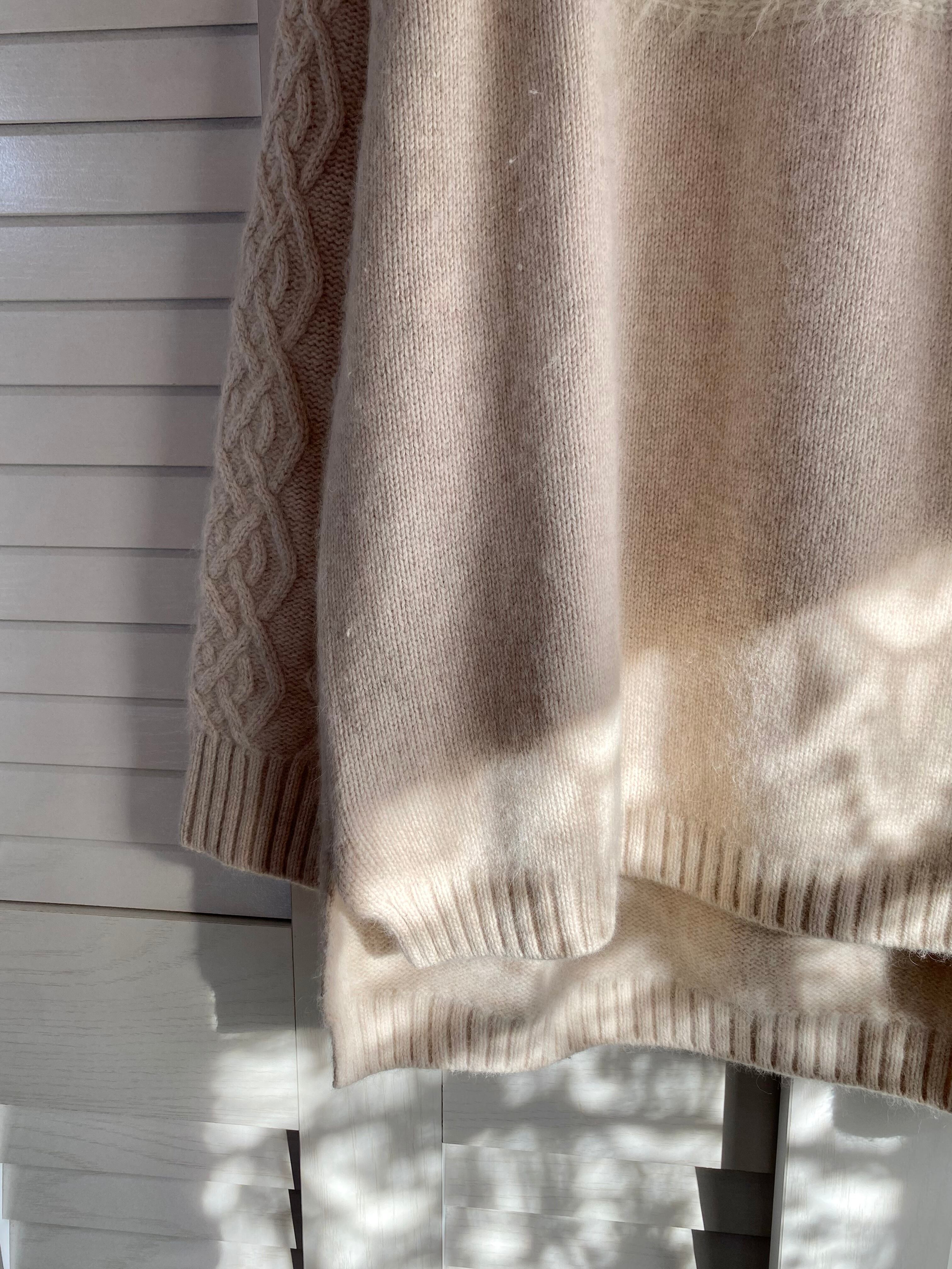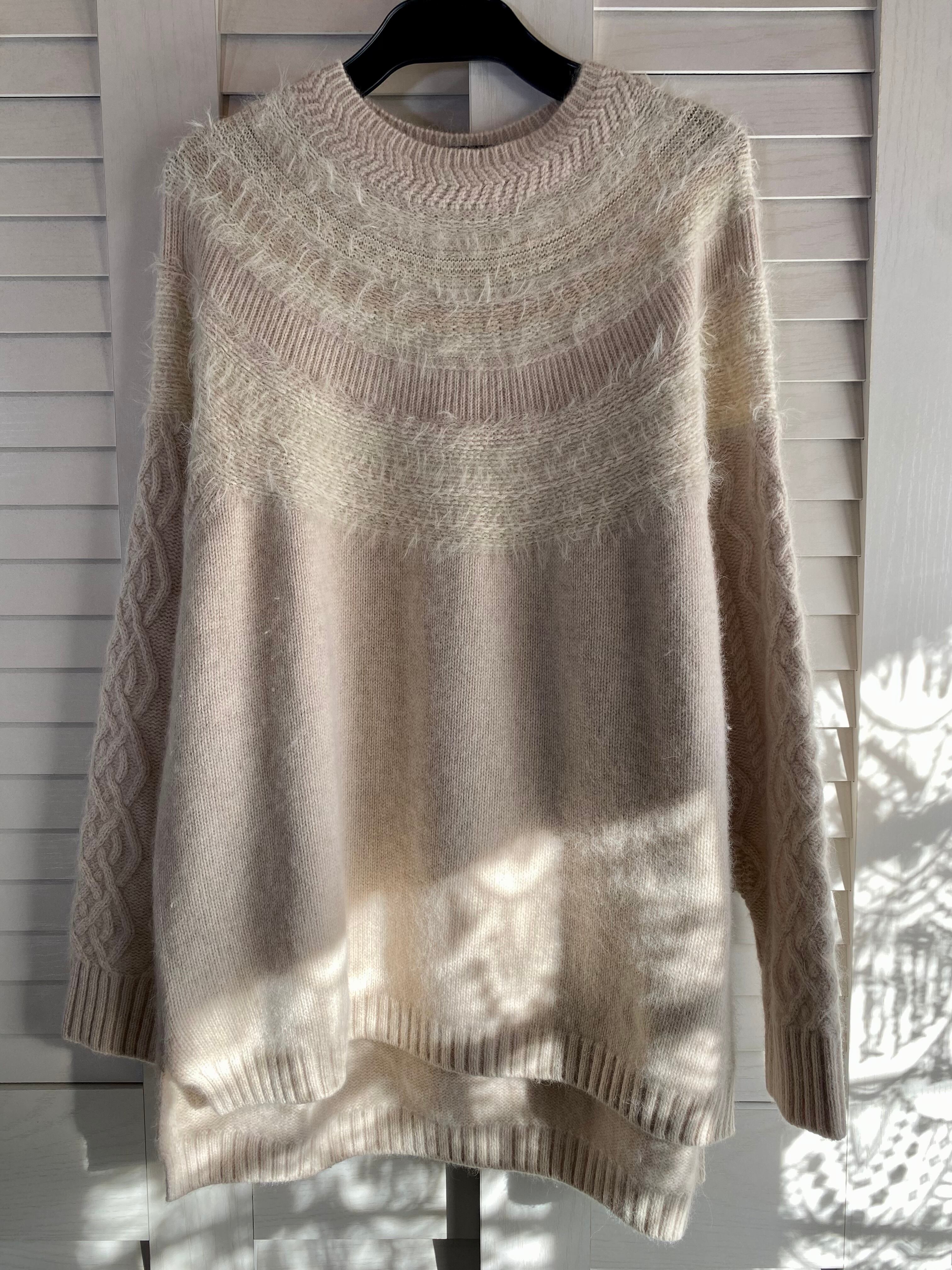 #110 UN CARNET アンゴラウール ラウンドヨーク アランニットスリーブセーター ライトベージュ