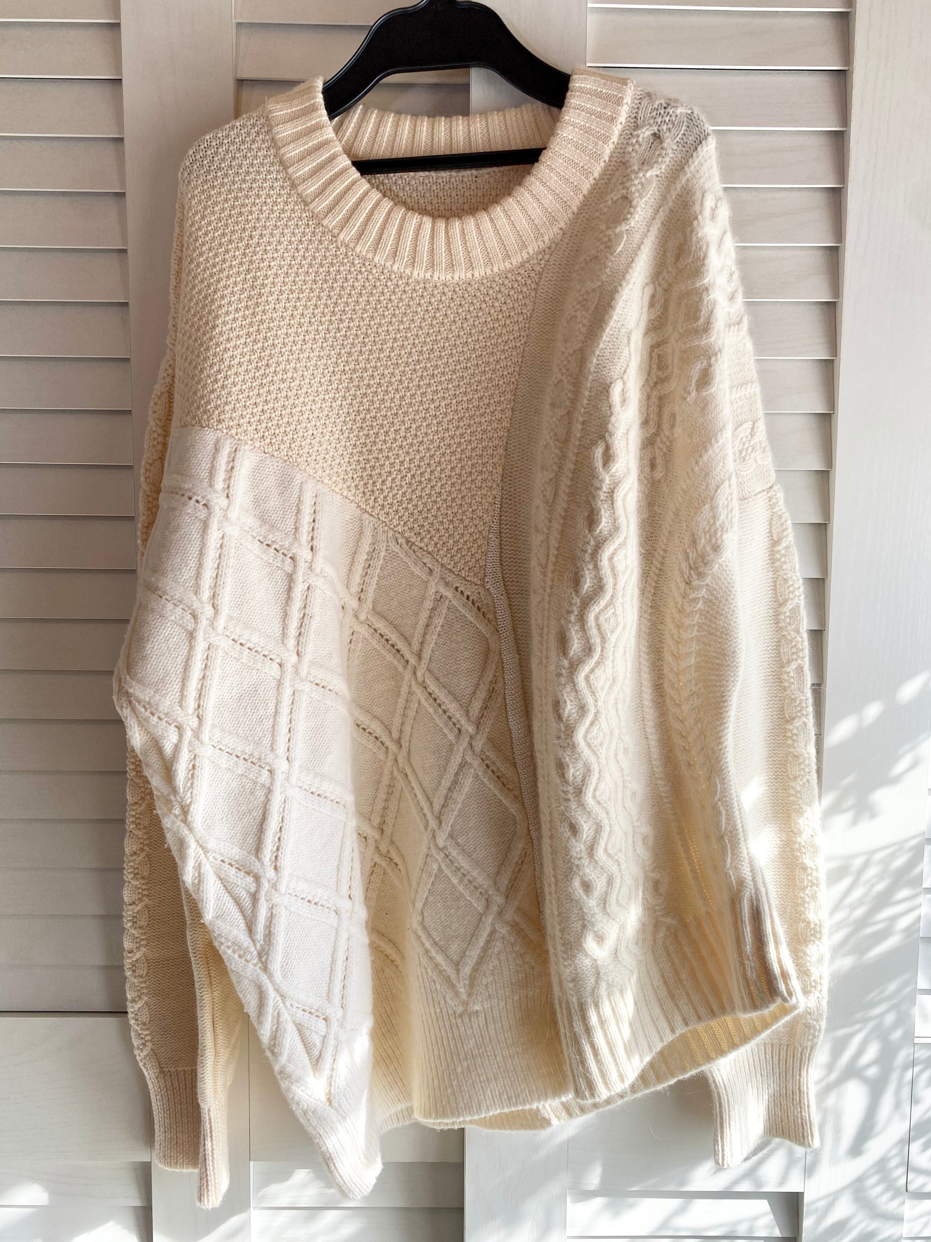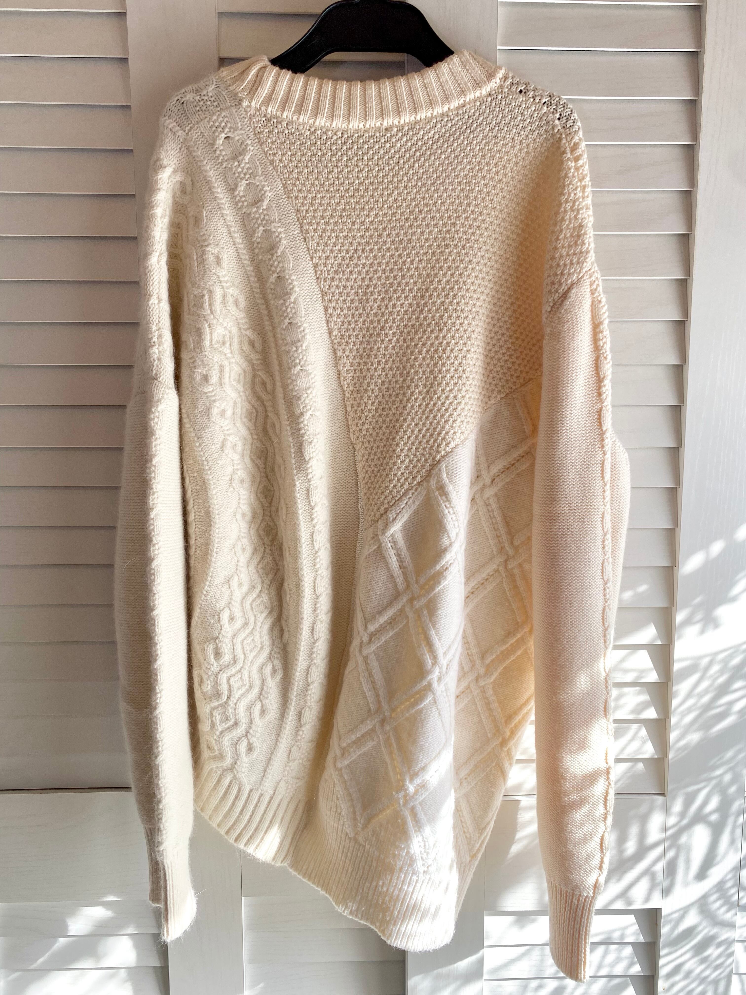 #111【タグなし】アランパッチワークオーバーサイズ変形ニット アイボリー | お洋服屋さん 『GOKKO』