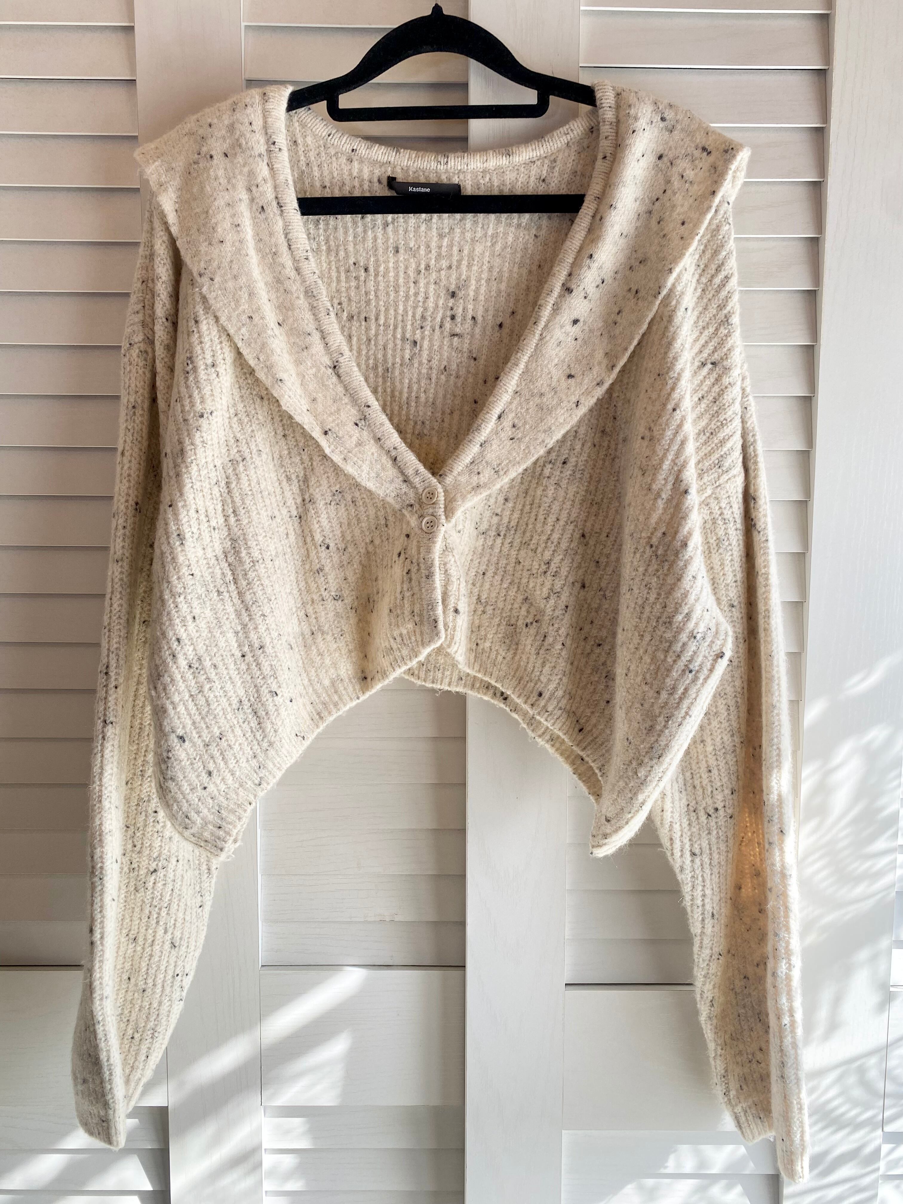 #112 kastane ネップ入りアクリルニット セーラーカラーオーバーサイズショート丈カーデ アイボリー