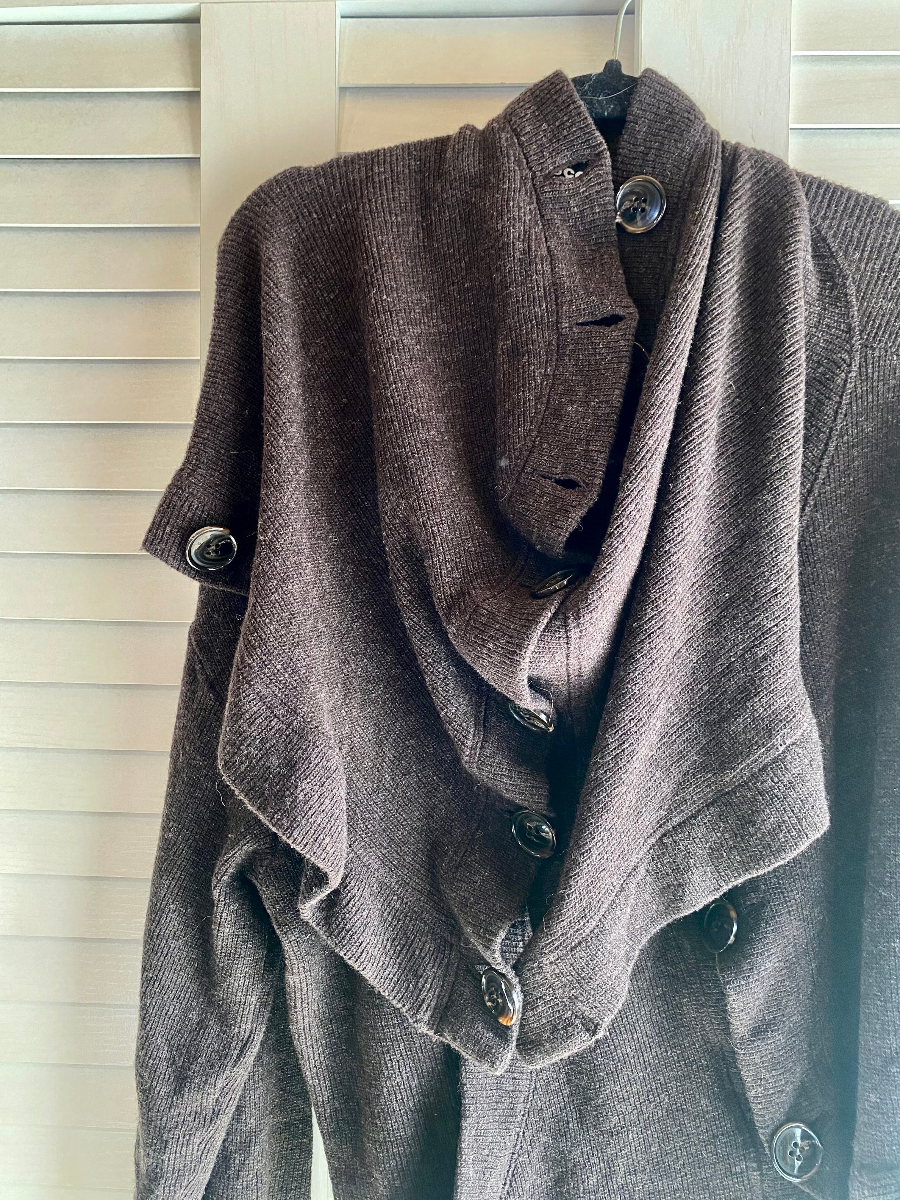 #112 ZUCCa 変形デザイン ボタンウールカーデ ブラウン