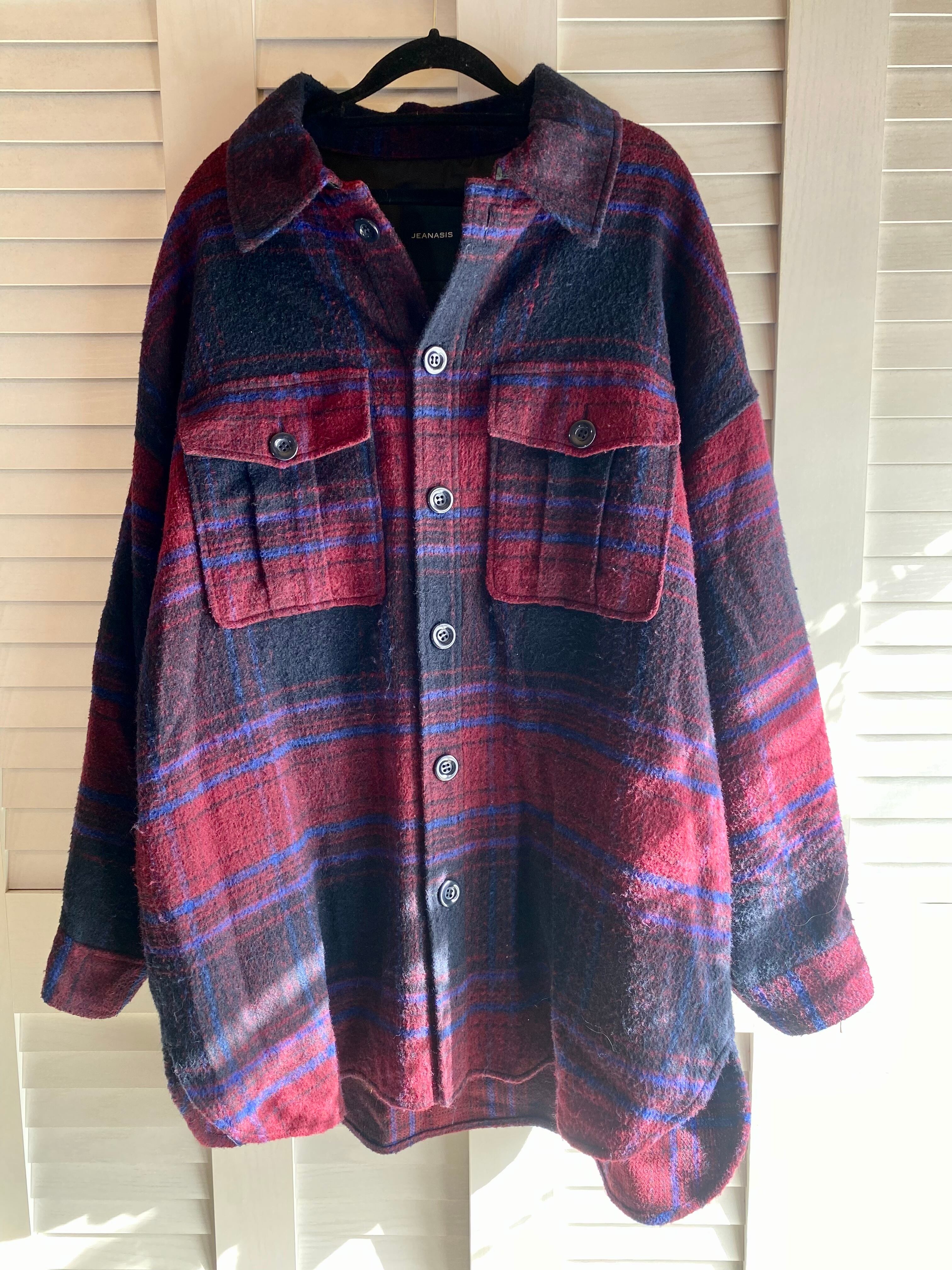 #112 JEANASIS シャギーウール オーバーサイズチェックシャツコート エンジ