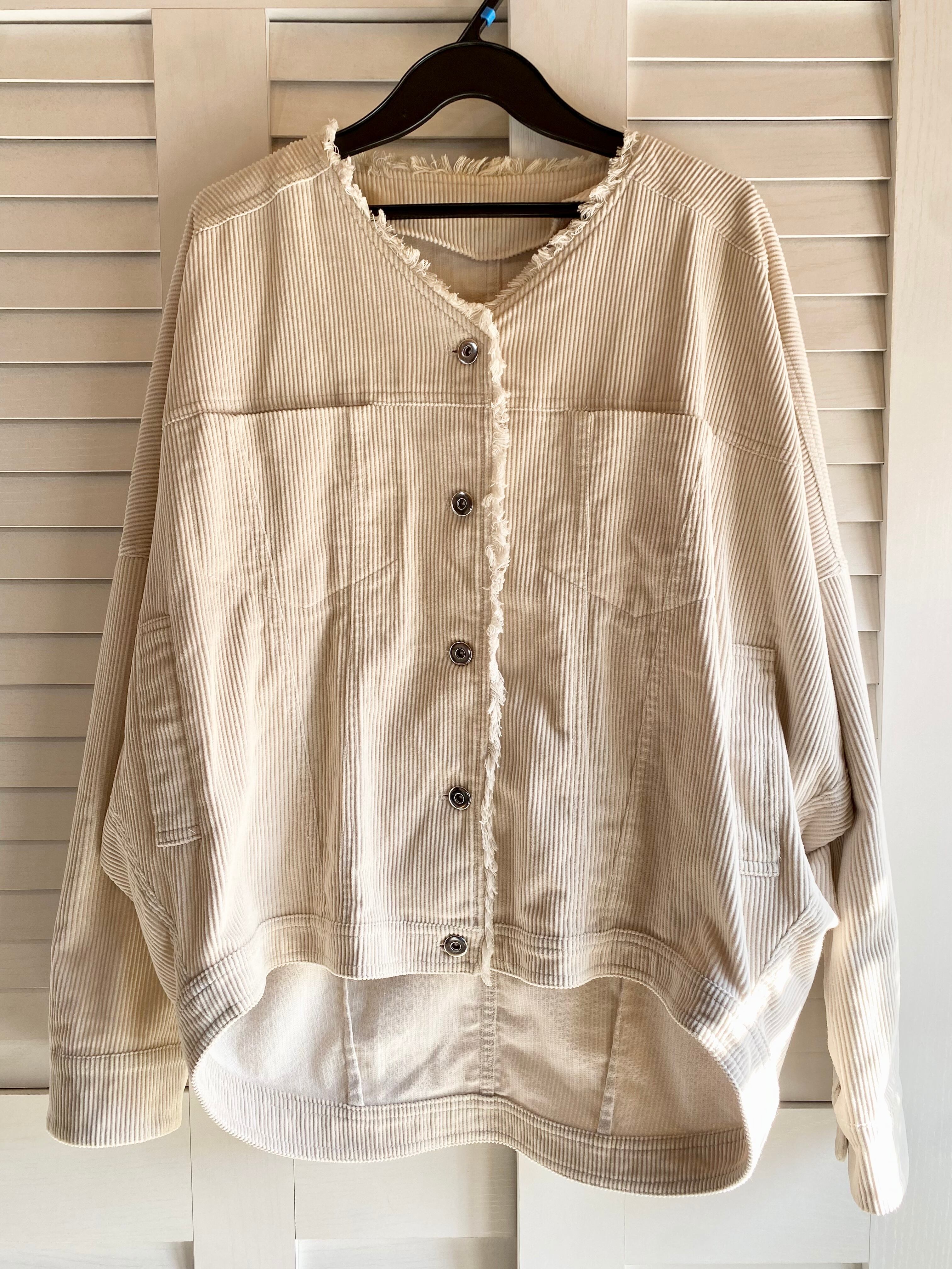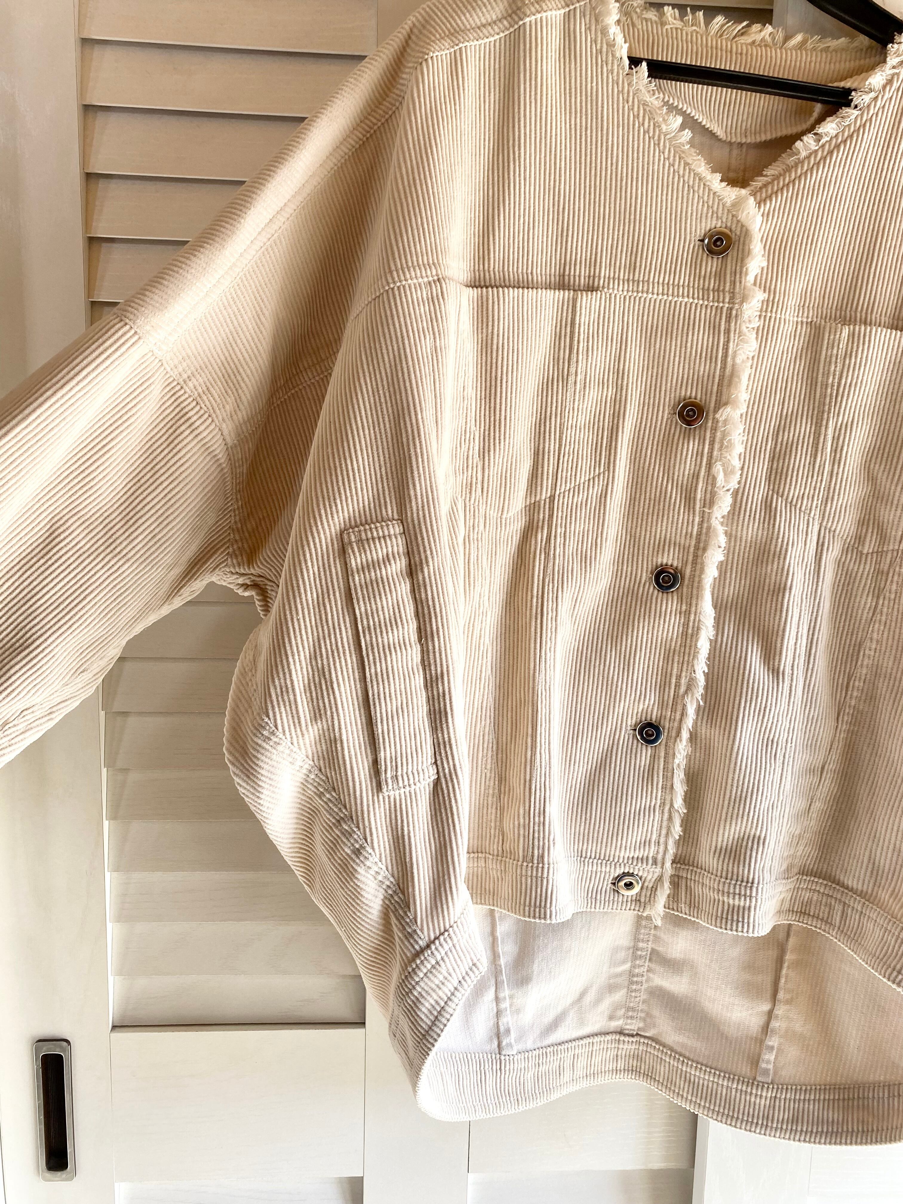 #113 SENSE OF PLACE ノーカラー コーデュロイ ドルマンスリーブ デザインブルゾン アイボリー
