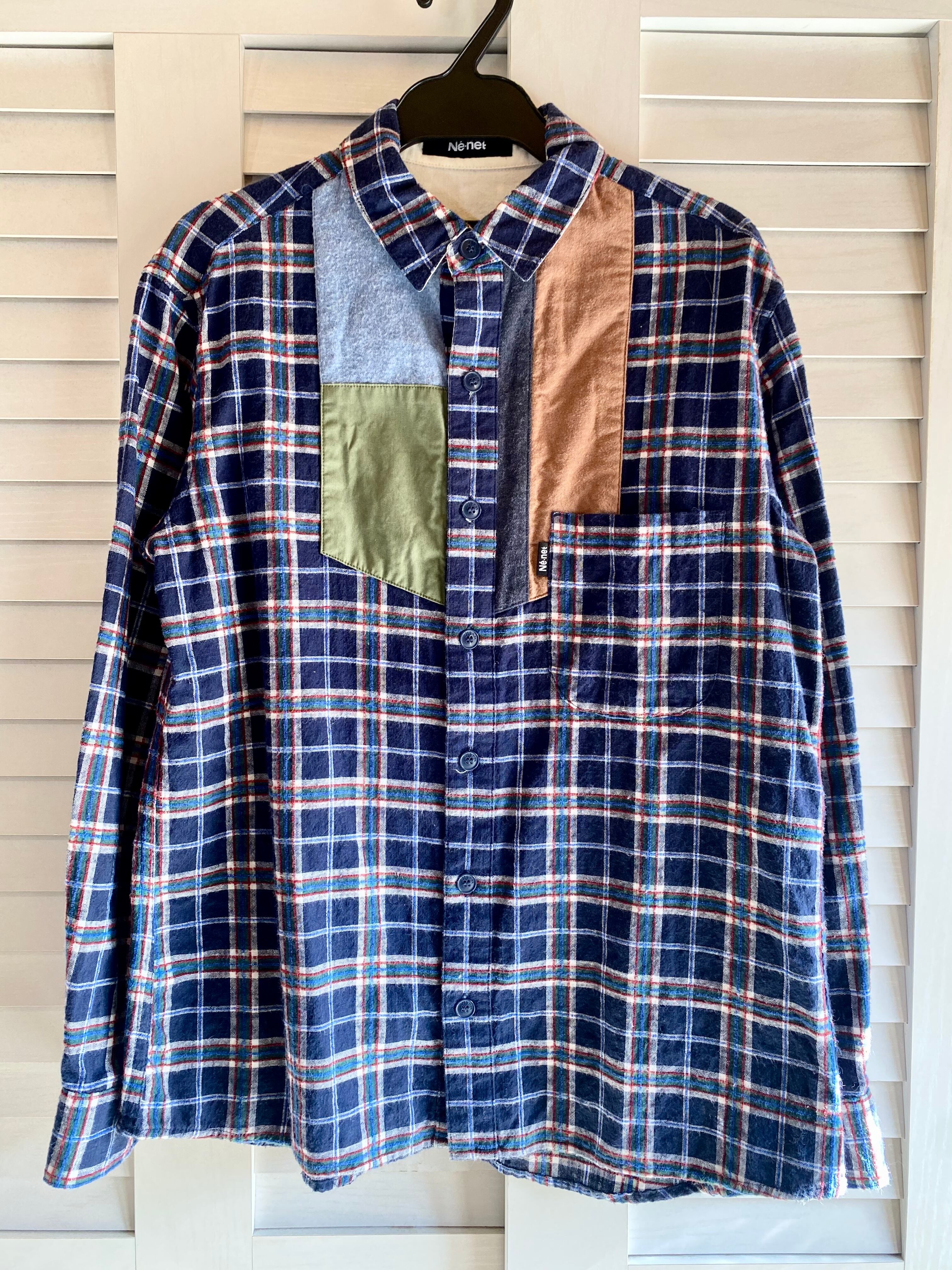 #113 Ne-net フランネルパッチワーク 先染め立体チェックシャツ ネイビー | お洋服屋さん 『GOKKO』