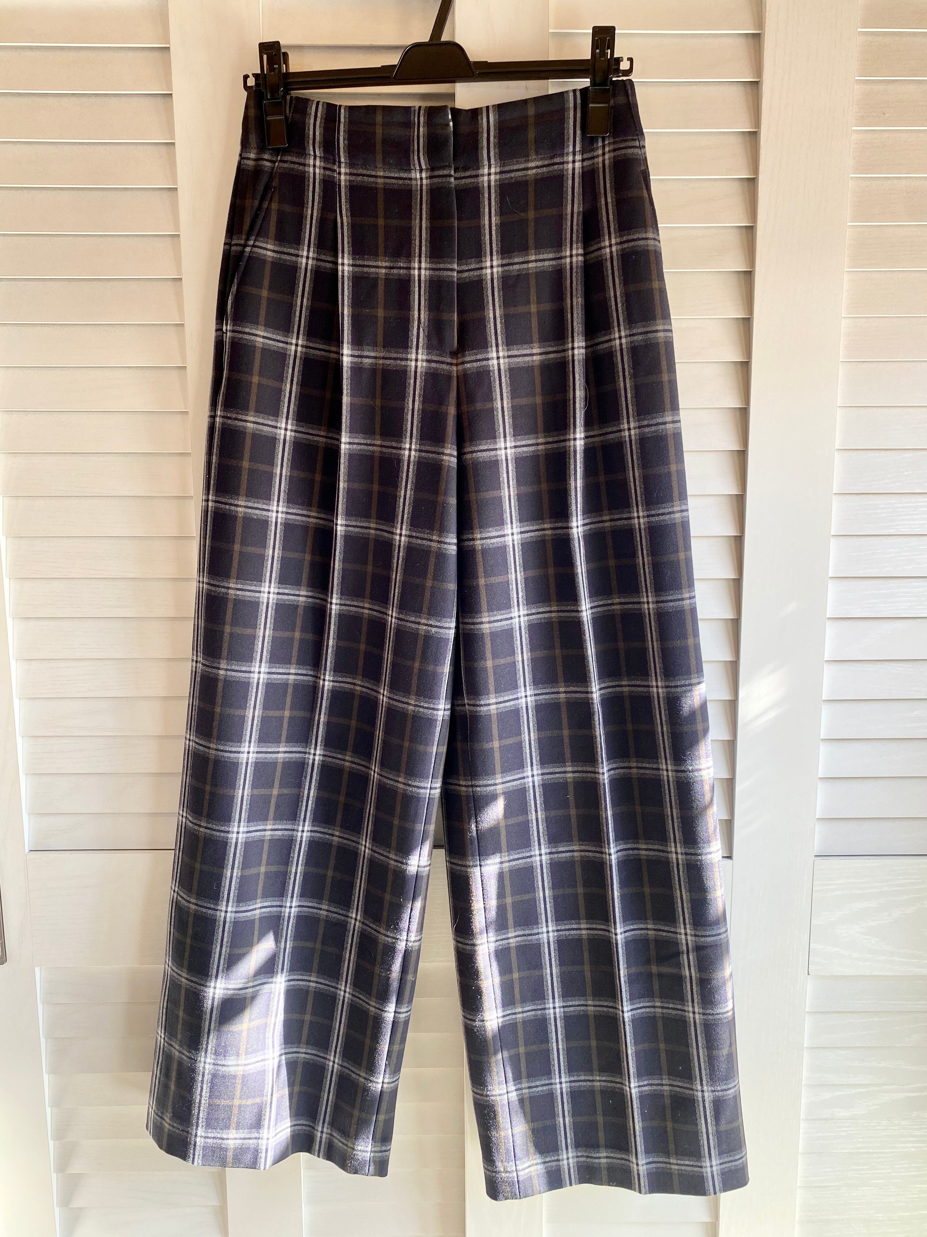 #113 PLST ハイウエスト チェックワイドストレッチパンツ ネイビー