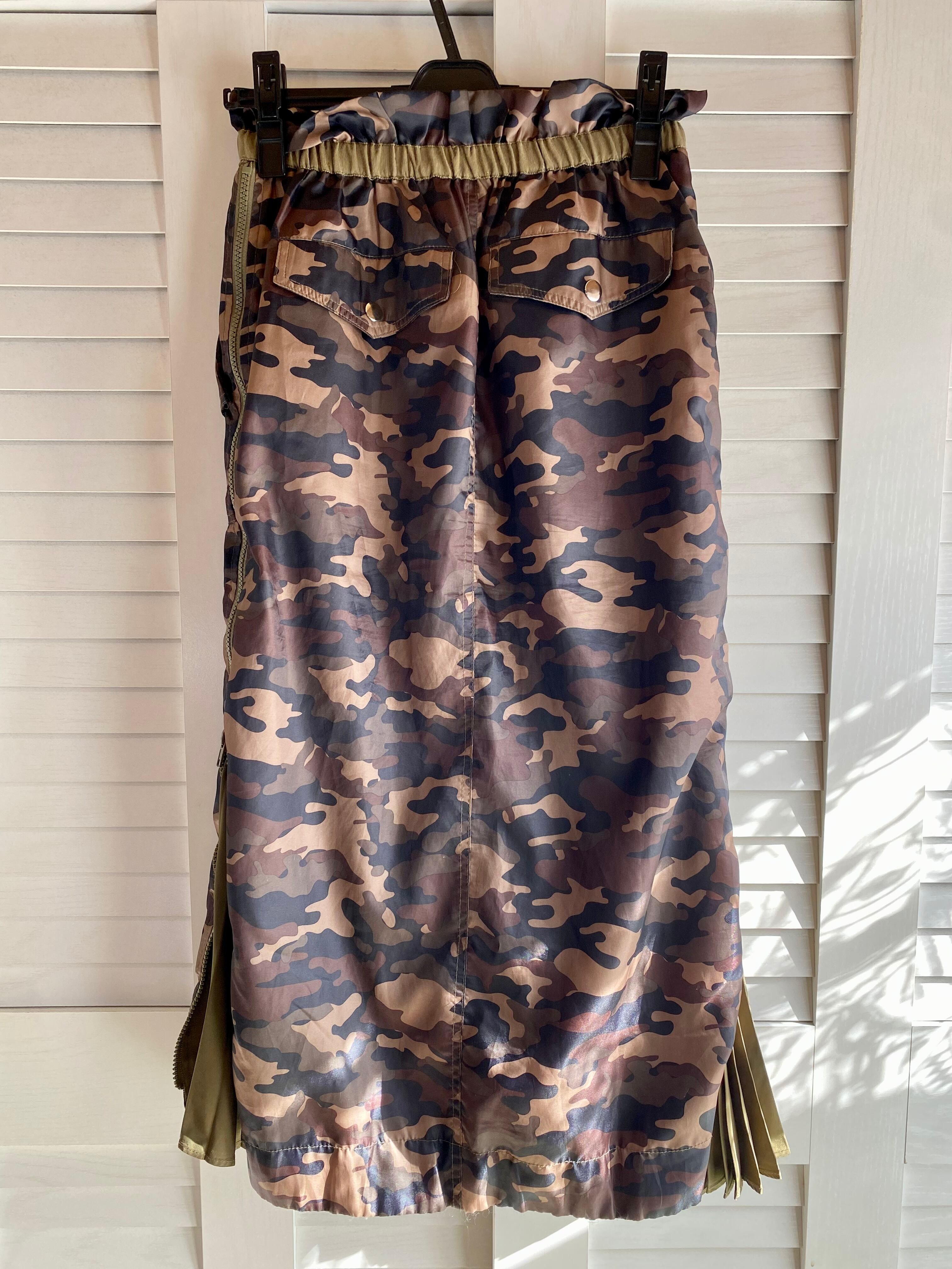 #114 Bou Jeloud ジッププリーツコンビ 迷彩ナロースカート カーキ