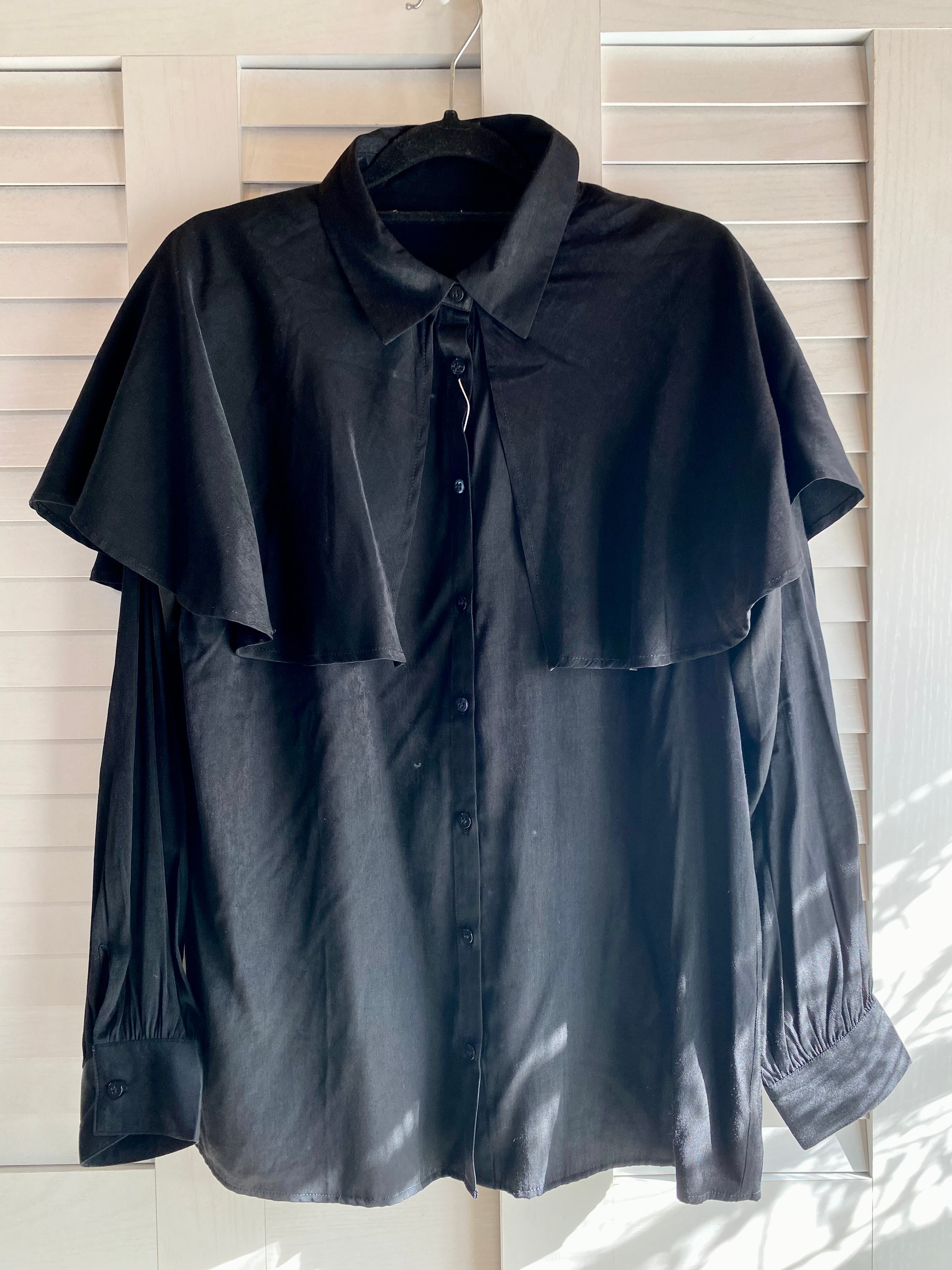 #114 terrace ヴィンテージサテン ケープデザインオーバーサイズブラウス ブラック
