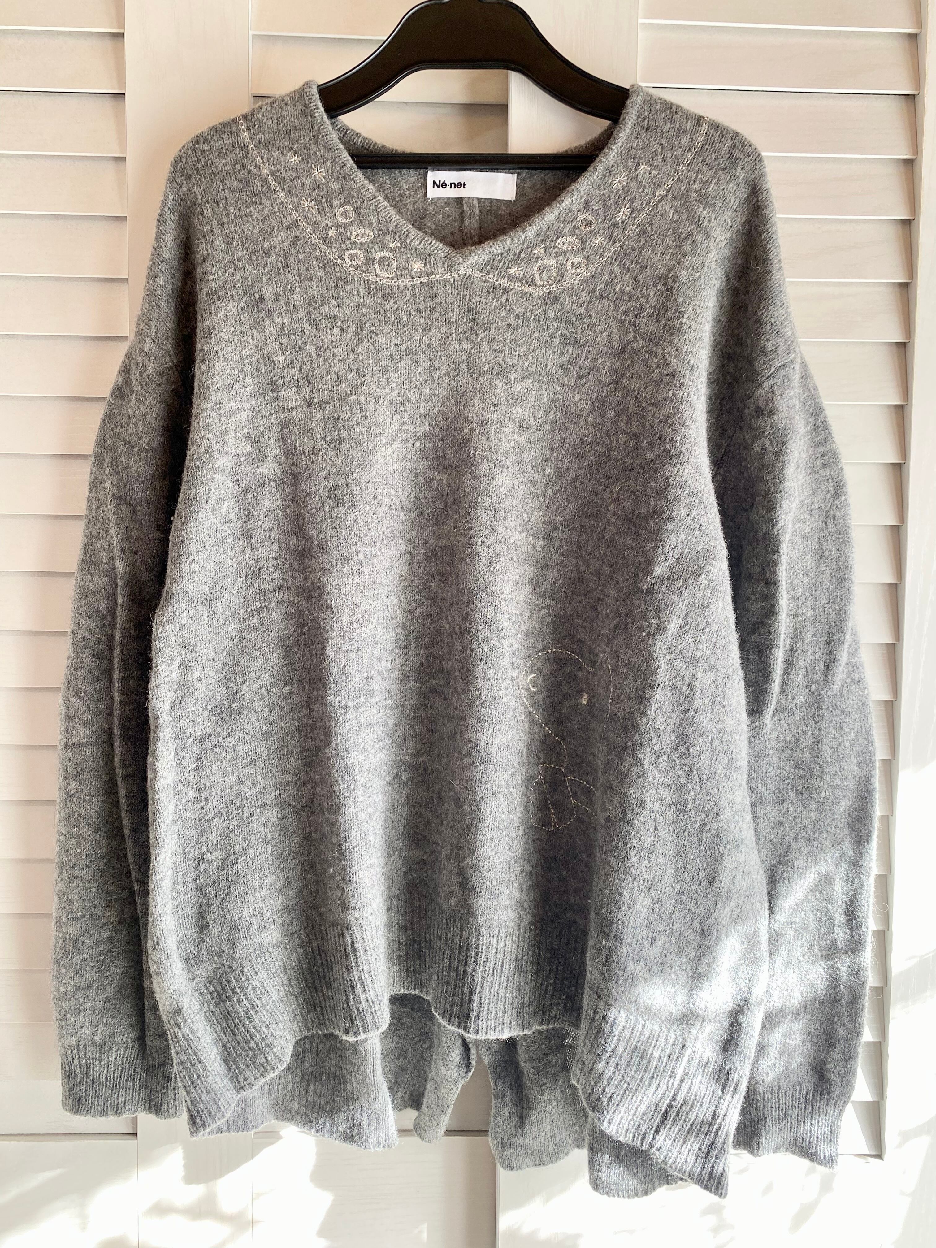 #116 Ne-net カラー&ヤギ シルバー刺繍 デザインウールニット グレー | お洋服屋さん 『GOKKO』