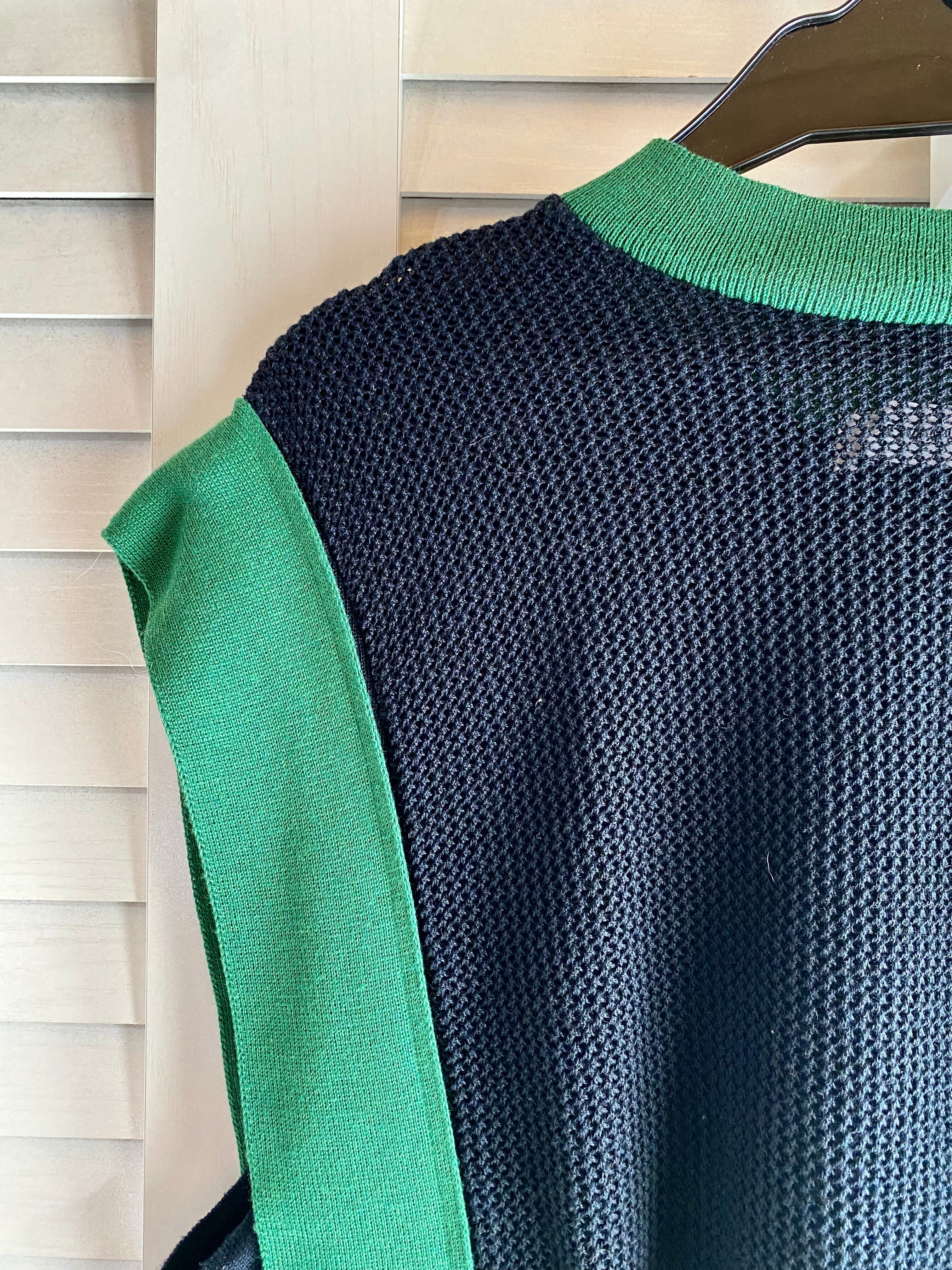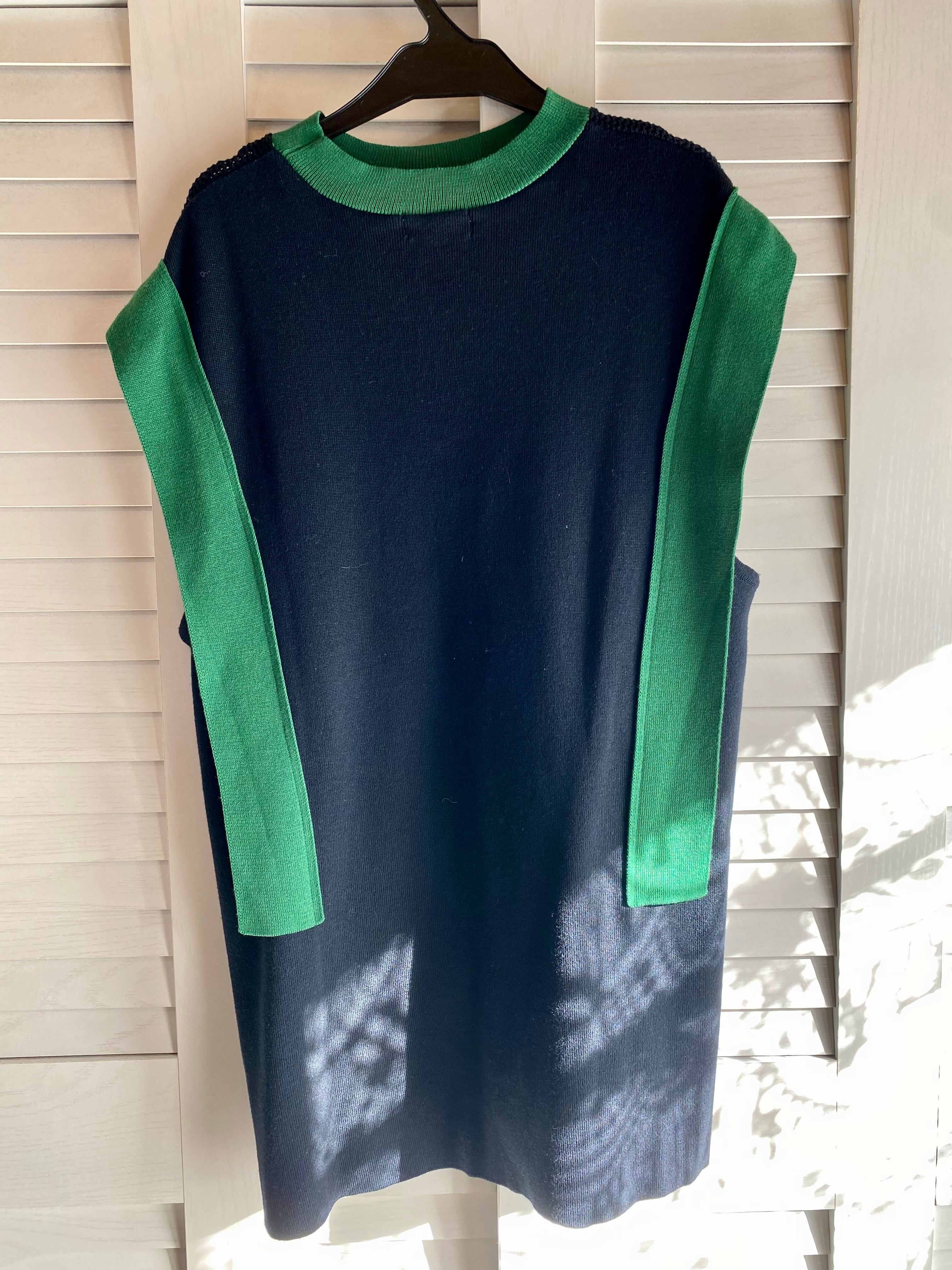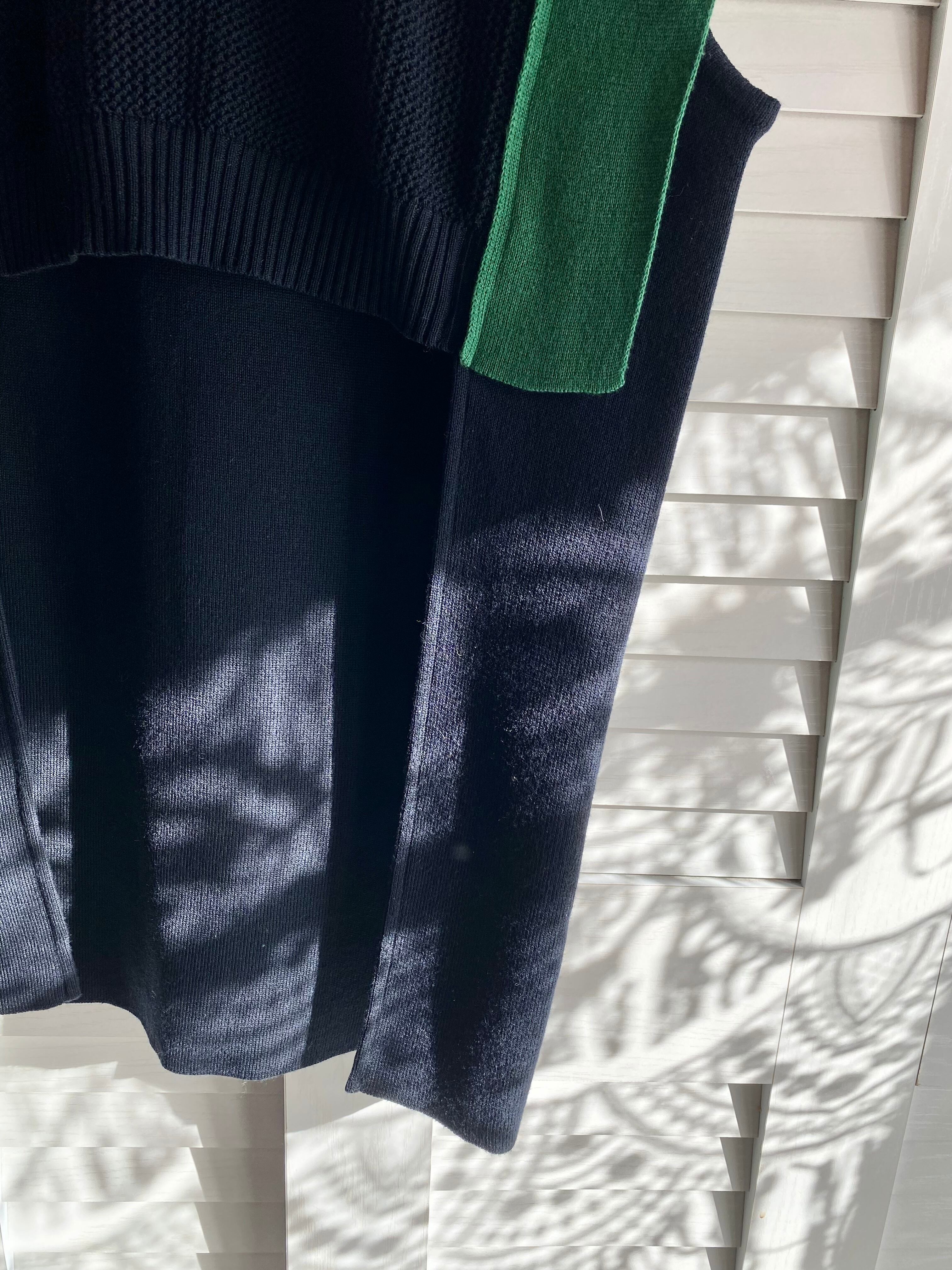 #116 TEVALT バイカラー デザインニットベスト ネイビー×グリーン