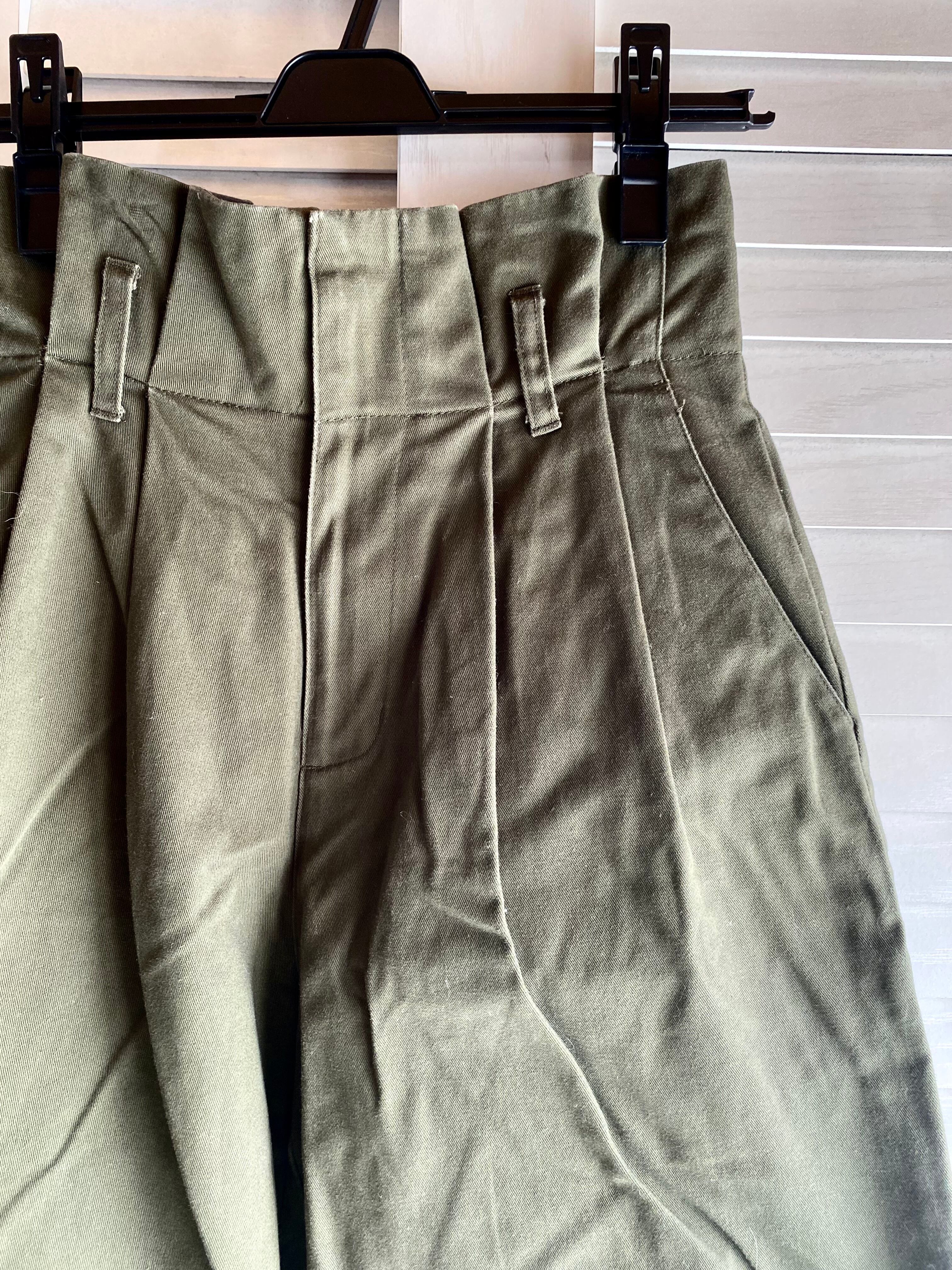 #116 TRUNO ハイウエスト ツータック チノクロスワイドパンツ カーキグリーン