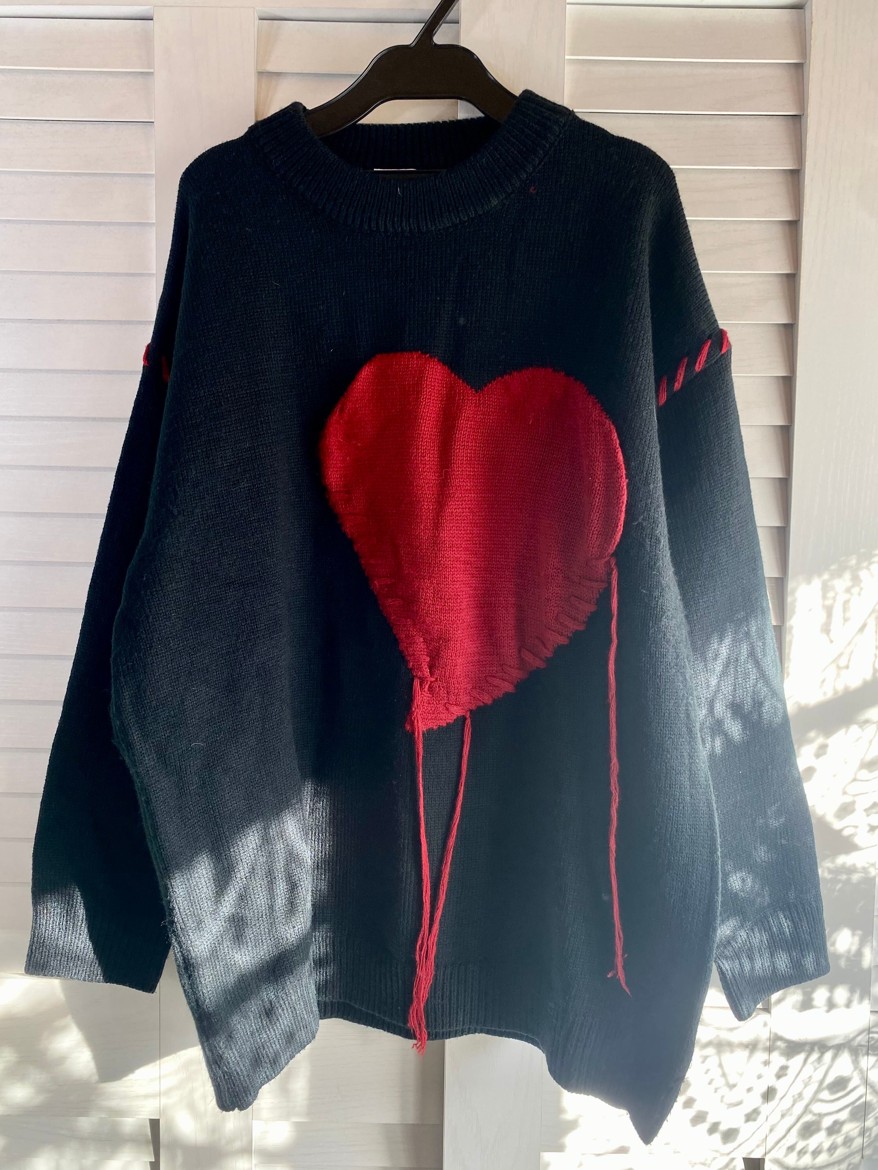 #118 HOOK パッチドハート オーバーサイズアクリルニットセーター ブラック | お洋服屋さん 『GOKKO』