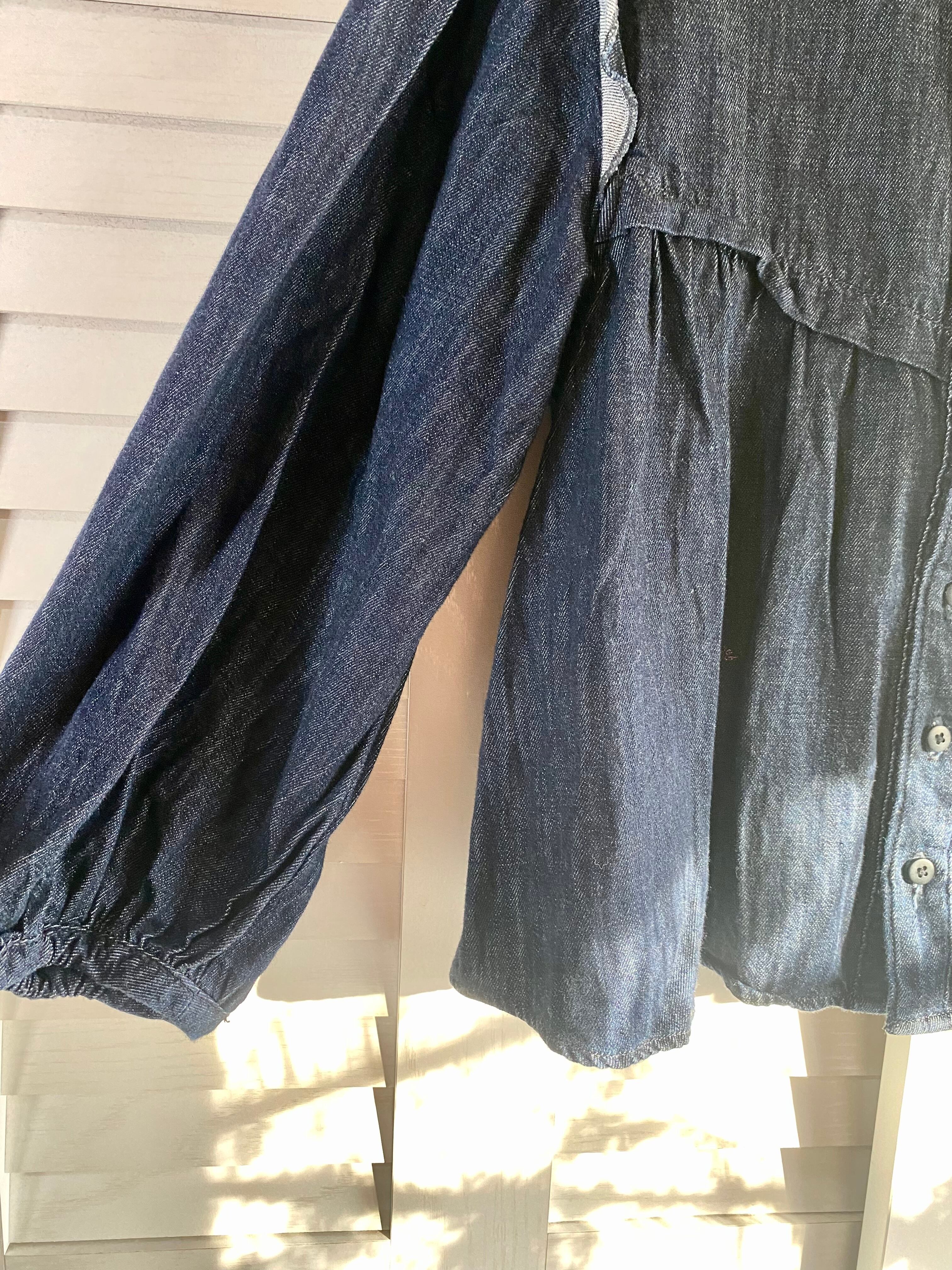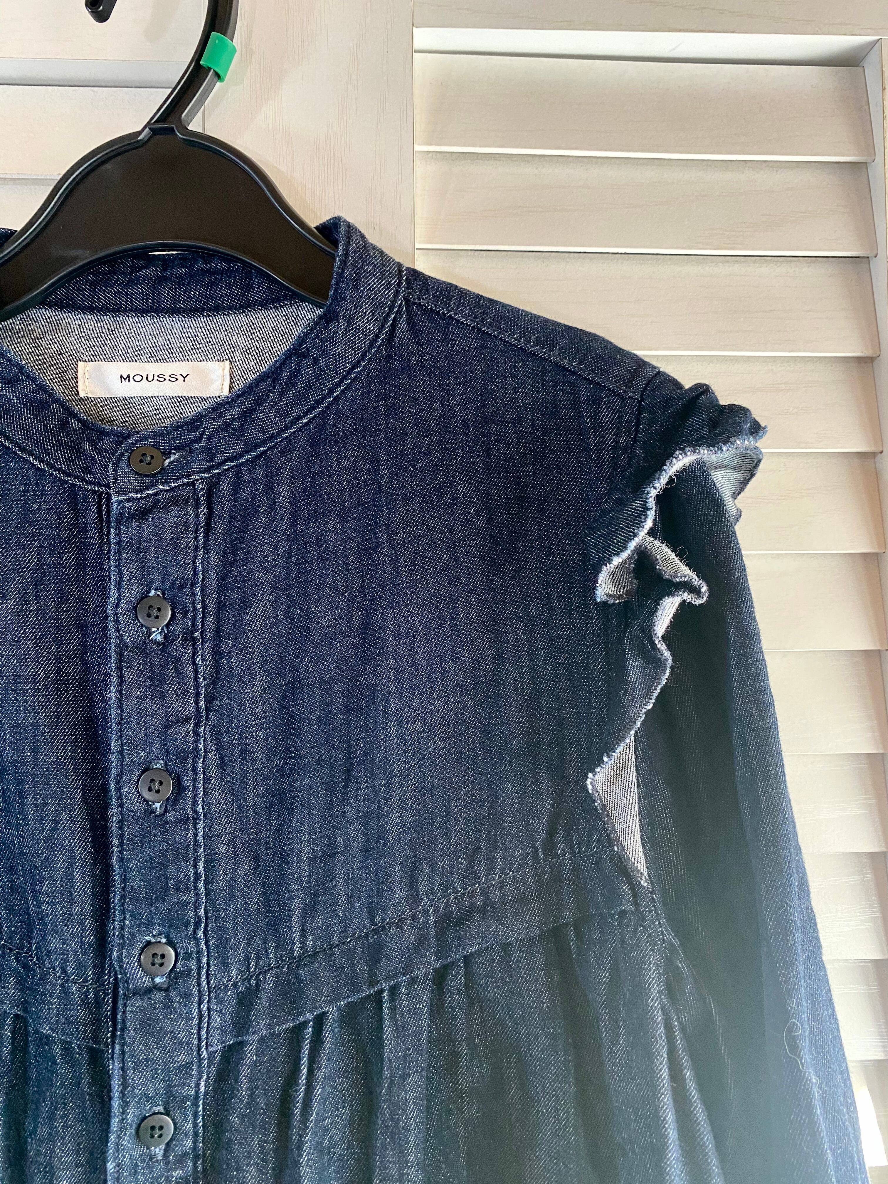 #119 moussy フリル切り替え ショート丈 デニムボリュームブラウス インディゴ