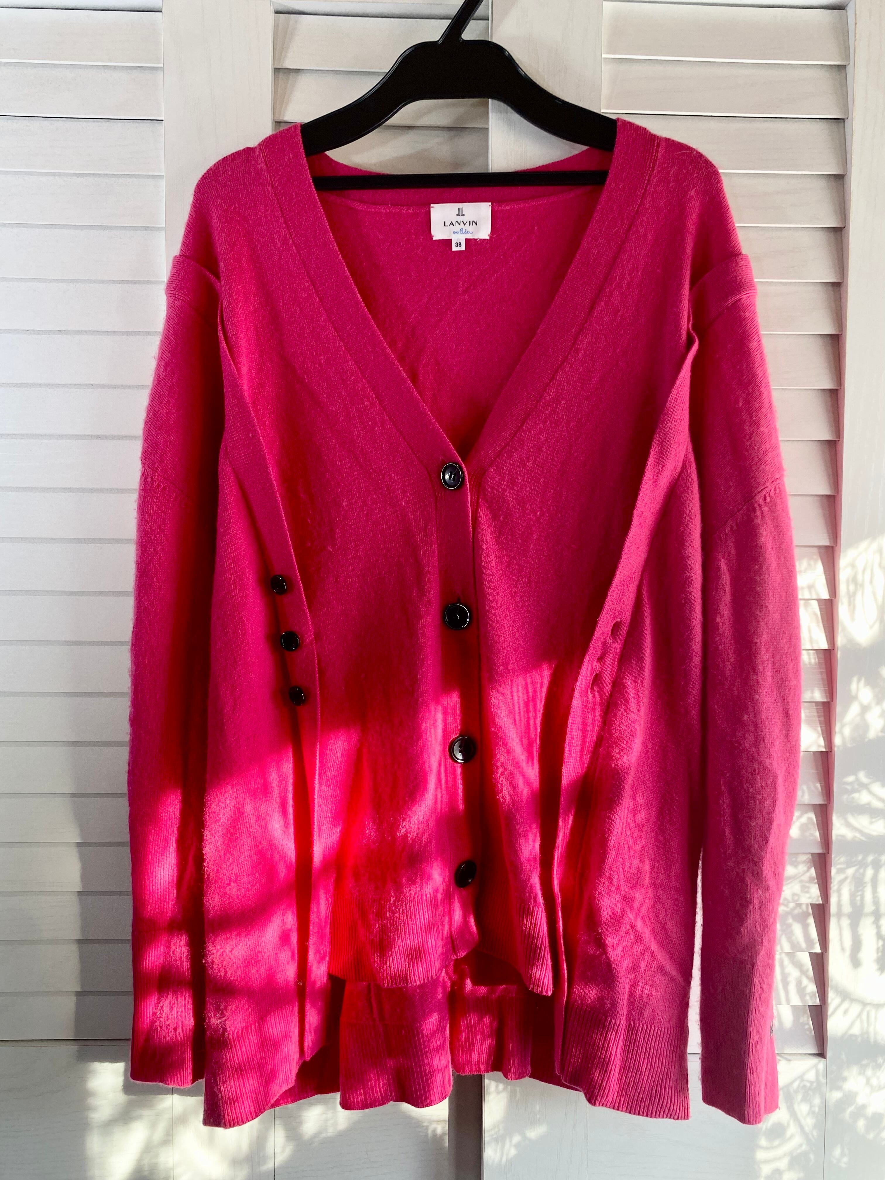 #119 LANVIN デザインボタン イレギュラーカシミヤウールニットダブルカーデ ピンク