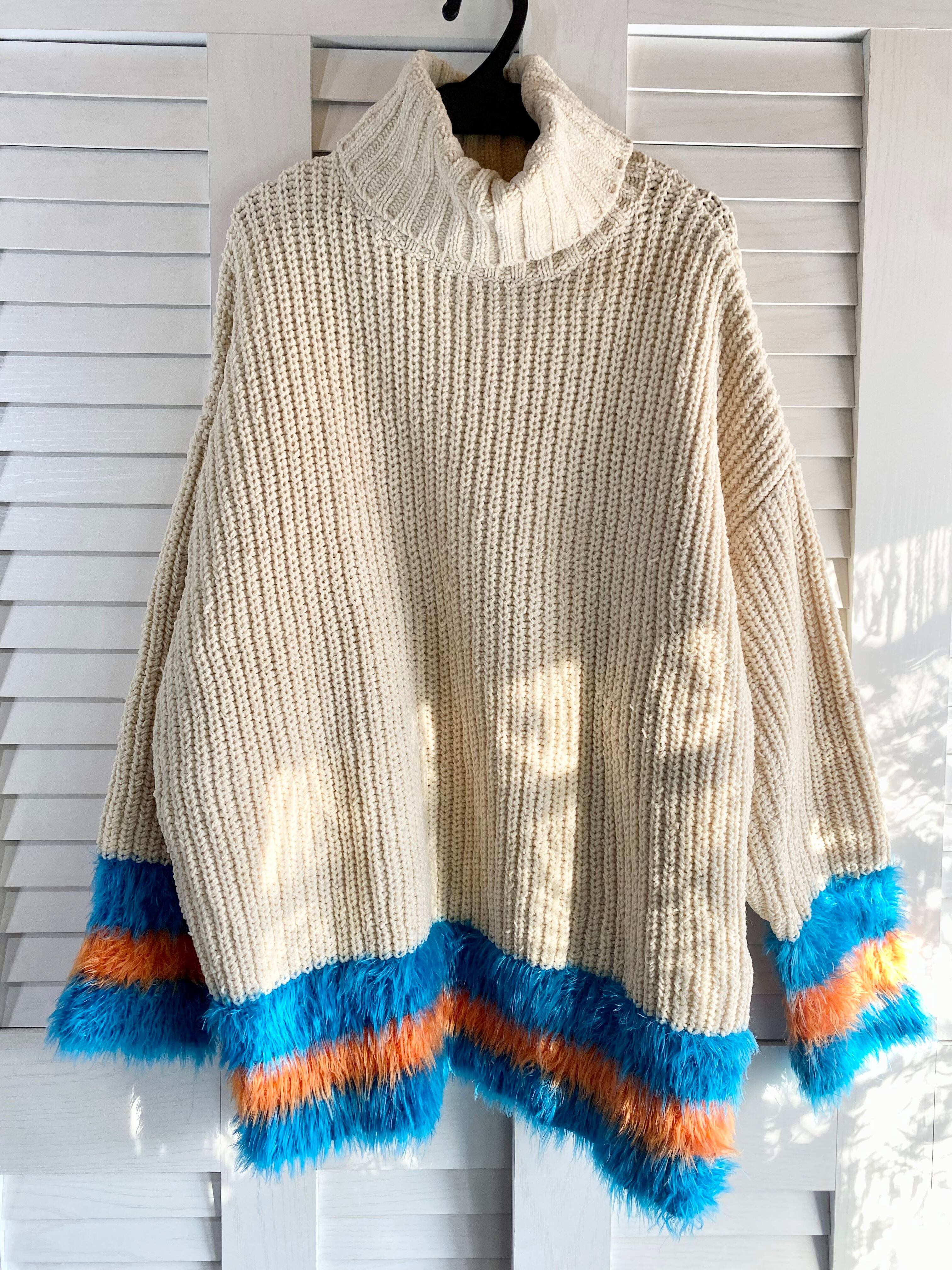 #120 jouetie シャギーニットライン オーバーサイズアクリルハイネックニット アイボリー